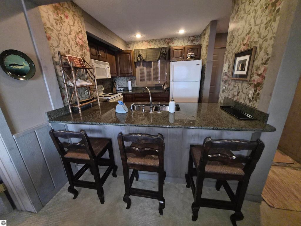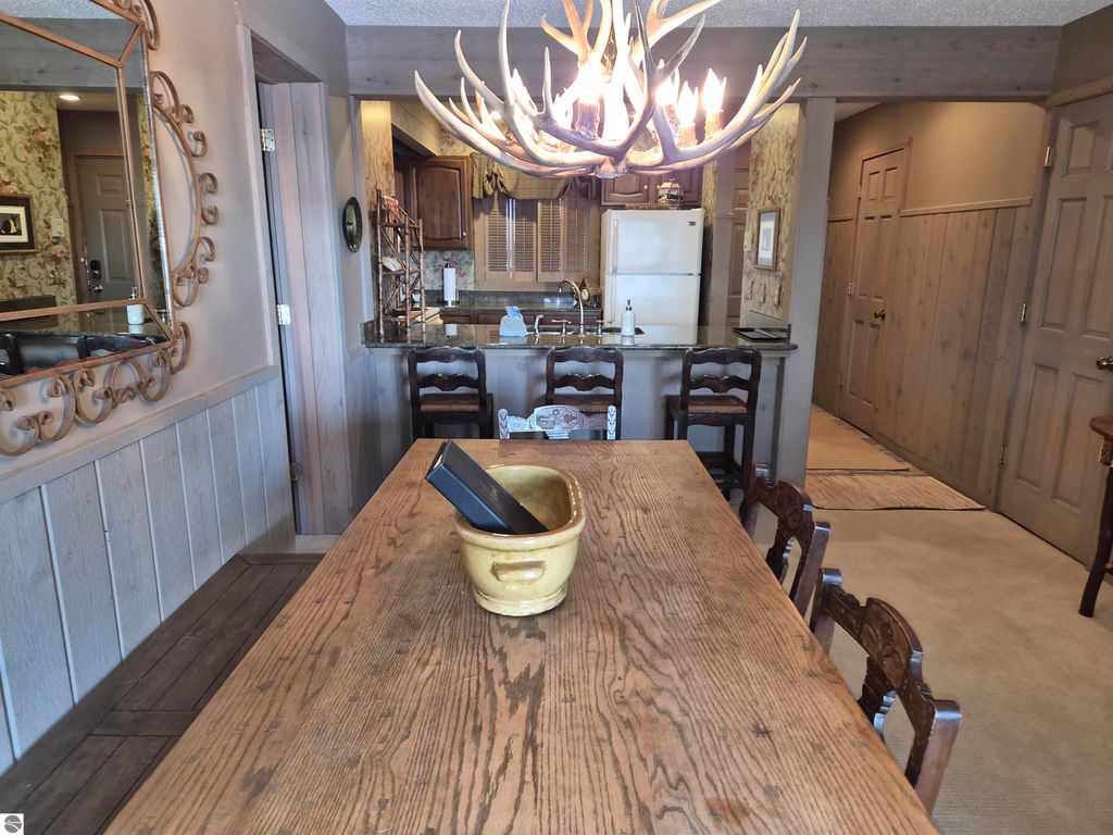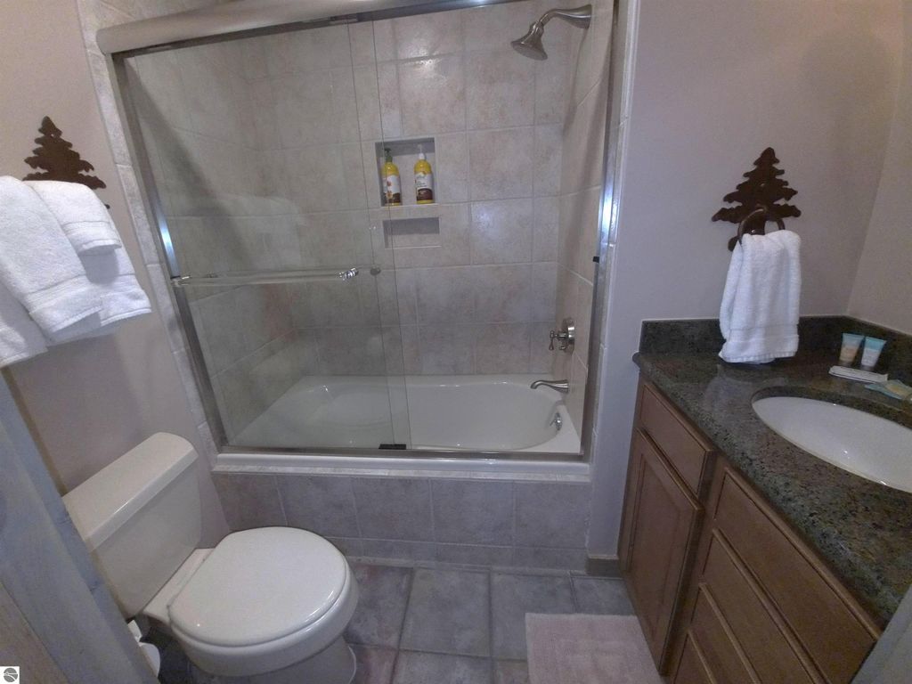 Welcome to this beautifully updated, Main-Floor Condo perfectly positioned on the former ski hill"”now a popular tubing hill"”offering year-round scenic views and resort-style living. This spacious condo features two large bedrooms, each with its own updated full bath showcasing ceramic tile floors and tile showers. The inviting living room highlights a stunning natural rock, wood-burning fireplace, creating a warm and cozy northern Michigan retreat. An additional full bath adds convenience for guests. The awesome kitchen is finished with granite countertops and tile flooring, flowing seamlessly into the dining/living room area"”ideal for entertaining after a day on the slopes, Lake Bellaire, or the golf course. Step outside to enjoy private balconies off both bedrooms and the living room, all overlooking the tubing hill for a front-row seat to seasonal fun and beautiful views. Owners and their guests can enjoy the indoor pool during the winter months, and you'll love the walkable access to world-class golf, the main lodge, fine dining, and resort shops. Ownership also includes use of the Lake Bellaire Beach Club. Whether you're looking for a vacation getaway, investment property, or year-round resort living, this Sawtooth condo delivers comfort, convenience, and classic Shanty Creek charm. This unit could be rented altogether, or lock off each side and rent all three units separately. Many options are available.