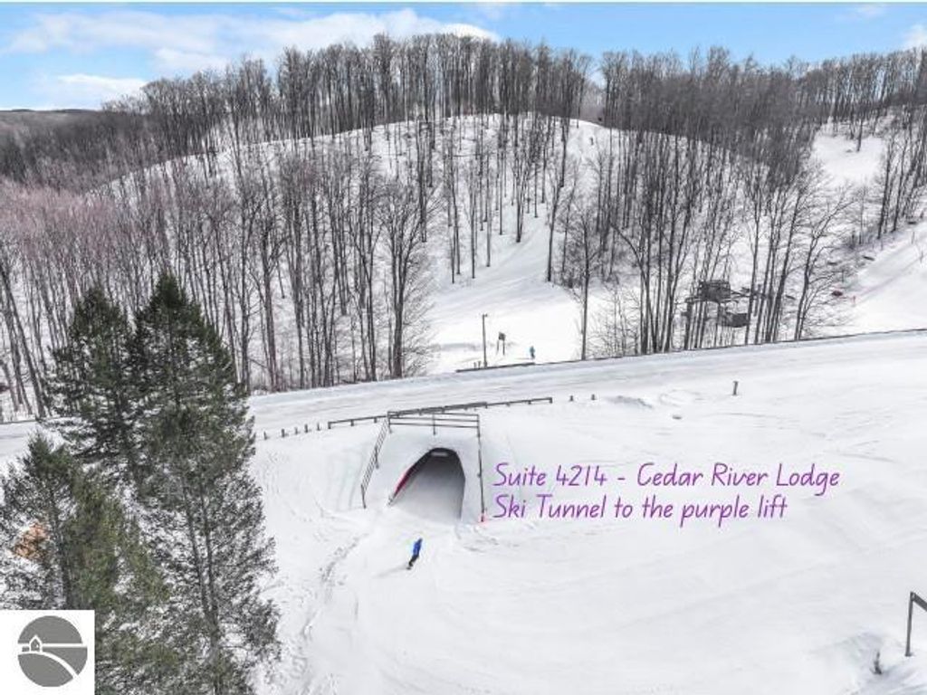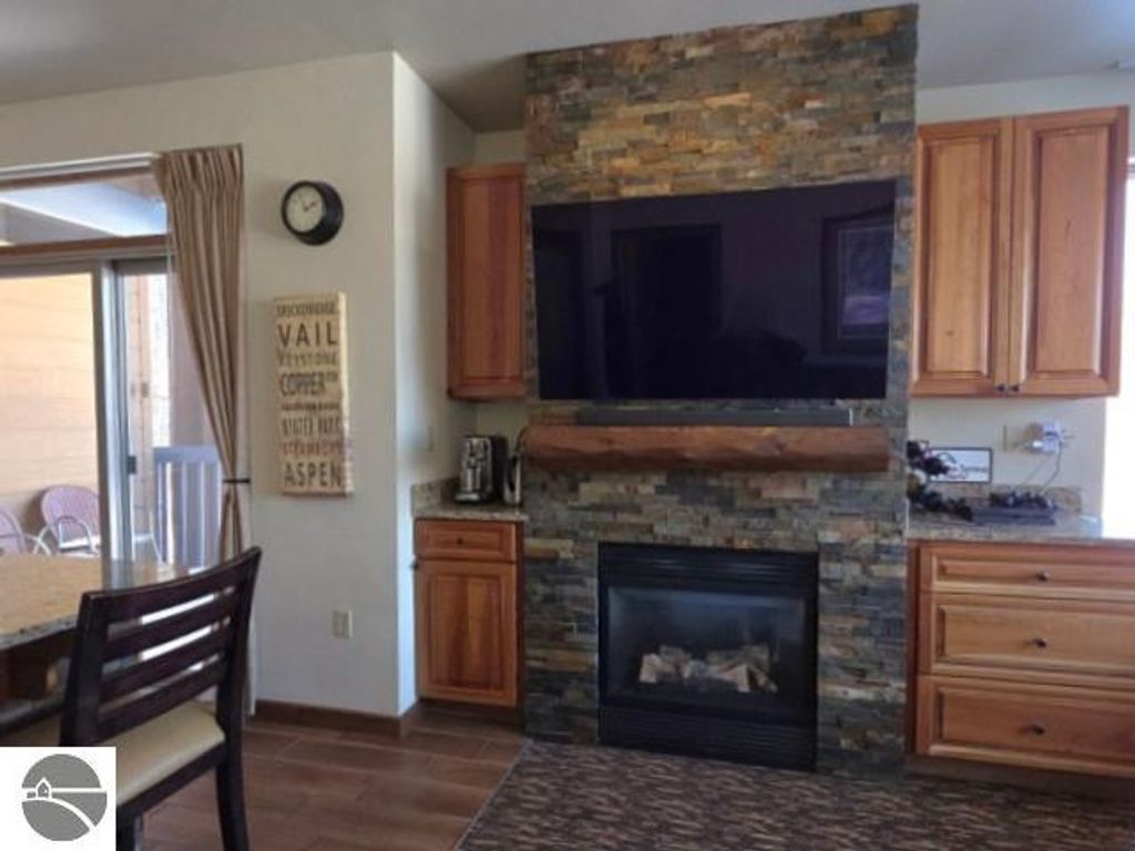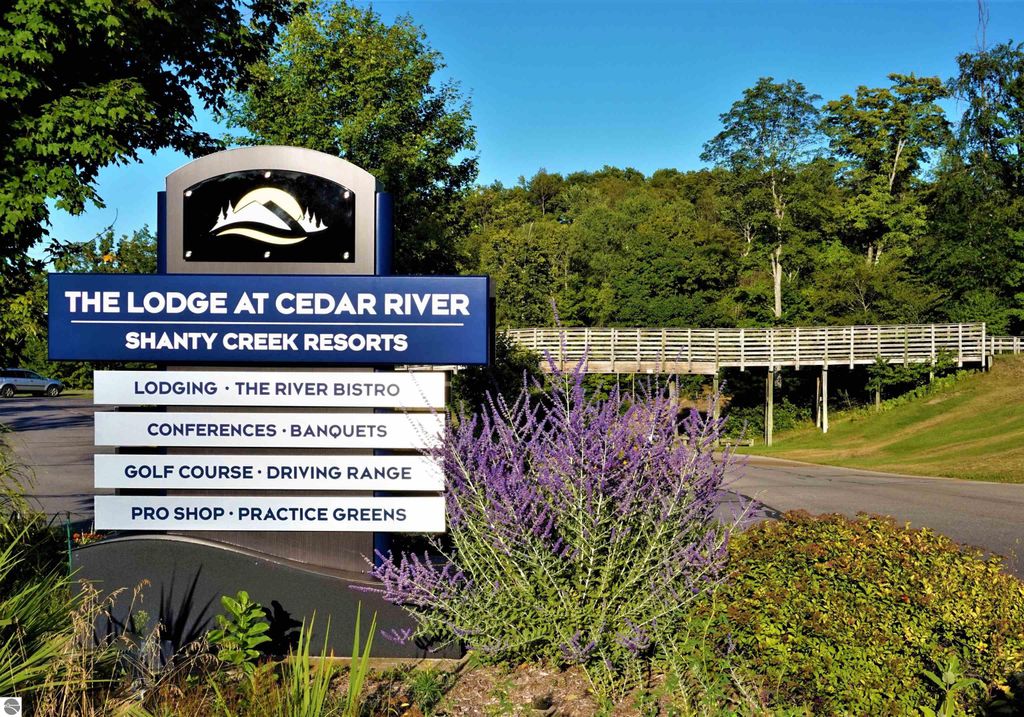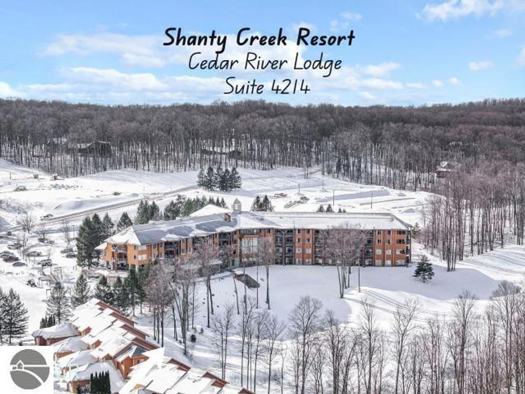 Suite 3214 at Shanty Creek Resort is a private corner unit offering 655 square feet of living space. This remodeled suite features a vacationers kitchen with deck access, granite island with seating, storage, and an ideal spot for remote work or planning adventures. The ceramic wood-look floor tile flows into the living area, where commercial-grade carpet provides durability and timeless style. A gas-burning stacked stone fireplace, framed by built-ins and topped with a cedar beam mantel, enhances the expansive windows and breathtaking second-floor views. The large bedroom hosts two queen beds, a closet, and built in storage bench. The bathroom was redesigned with a gorgeous large walk-in shower, dual granite sinks, and private owners closet. The Lodge at Cedar River offers amenities such as The River Bistro for quick meals, TopGolf, year-round heated hot tubs and outdoor pool, Beginner area with Magic Carpet, out-the-door access to Schuss Mountain's Purple Chairlift, snowshoeing, summer hiking, golf and much more. Located less than 3 miles to iconic Summit Village with the Lakeview Hotel overlooking Lake Bellaire, coffee bar, exercise center, and more. Monthly maintenance fee covers all owner expenses except tax and personal property insurance. The sellers family is growing and after many years of memory making, they are ready for their next adventure so don't miss this opportunity to own your piece of Shanty Creek. On site rental management offers free resort shuttle service, indoor pool pass, and more.