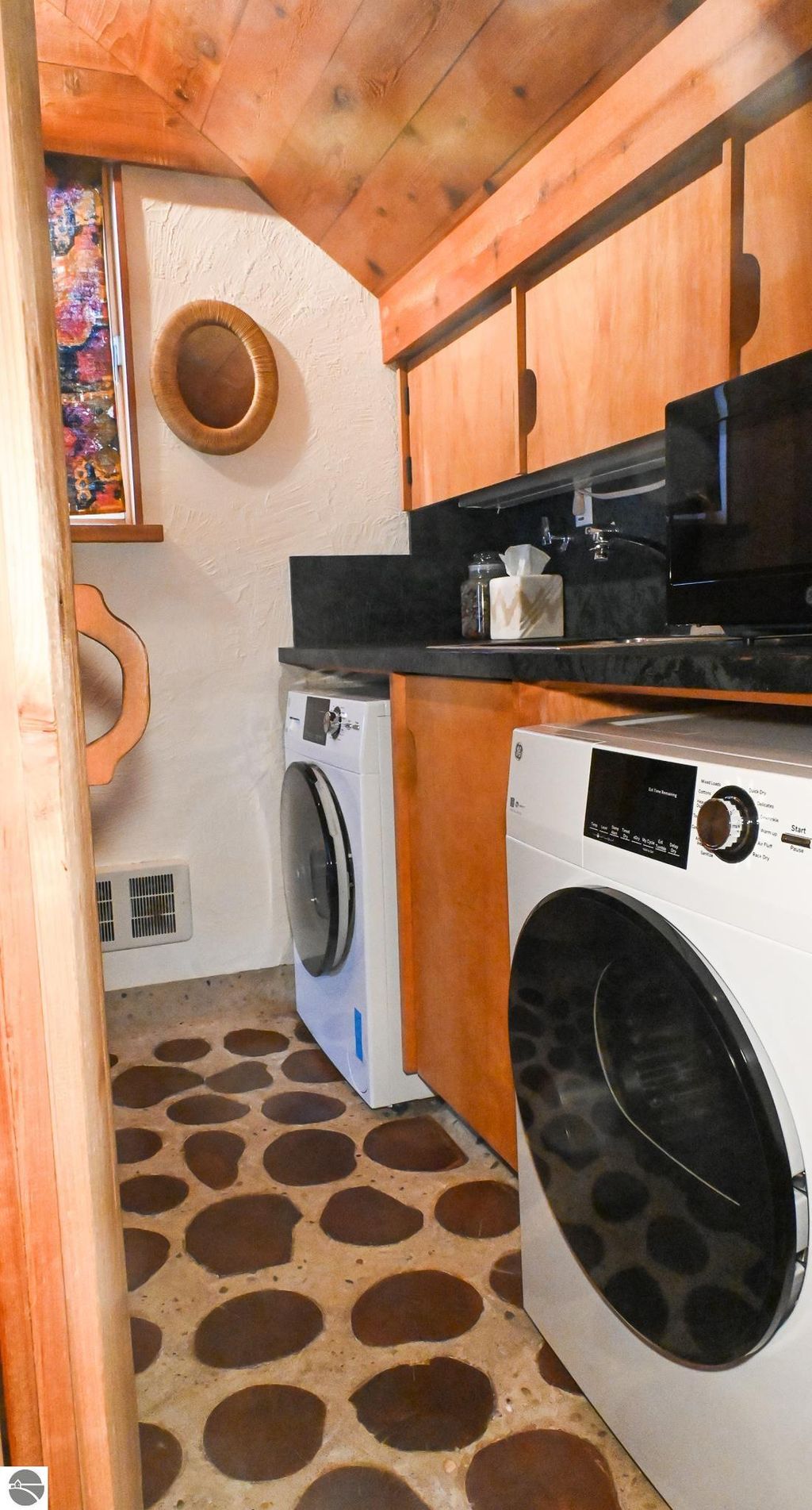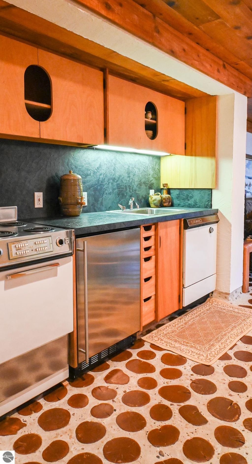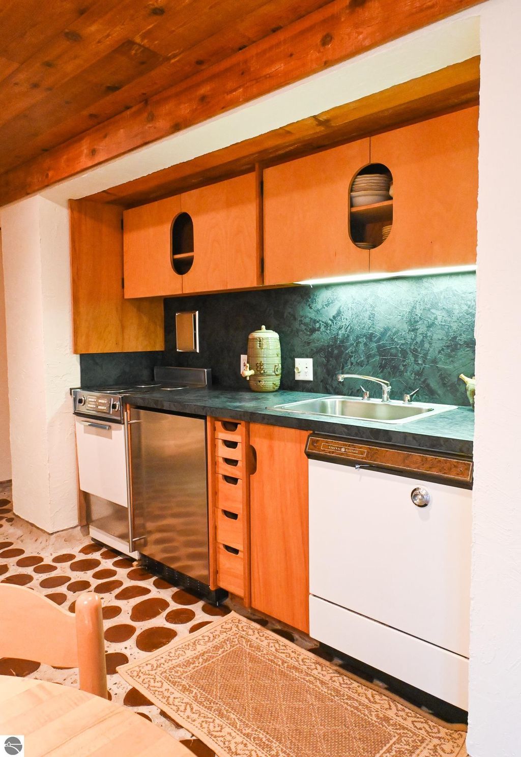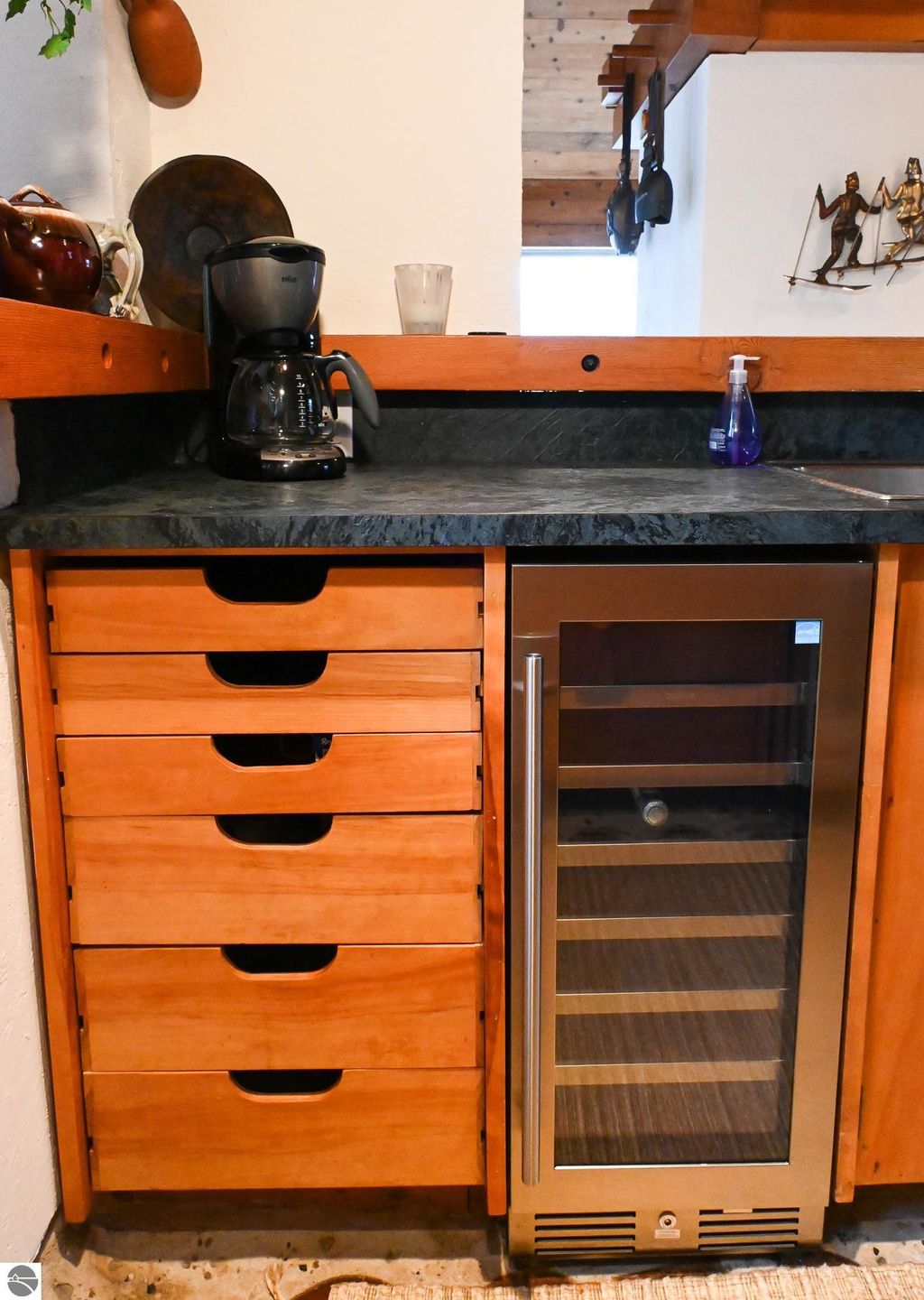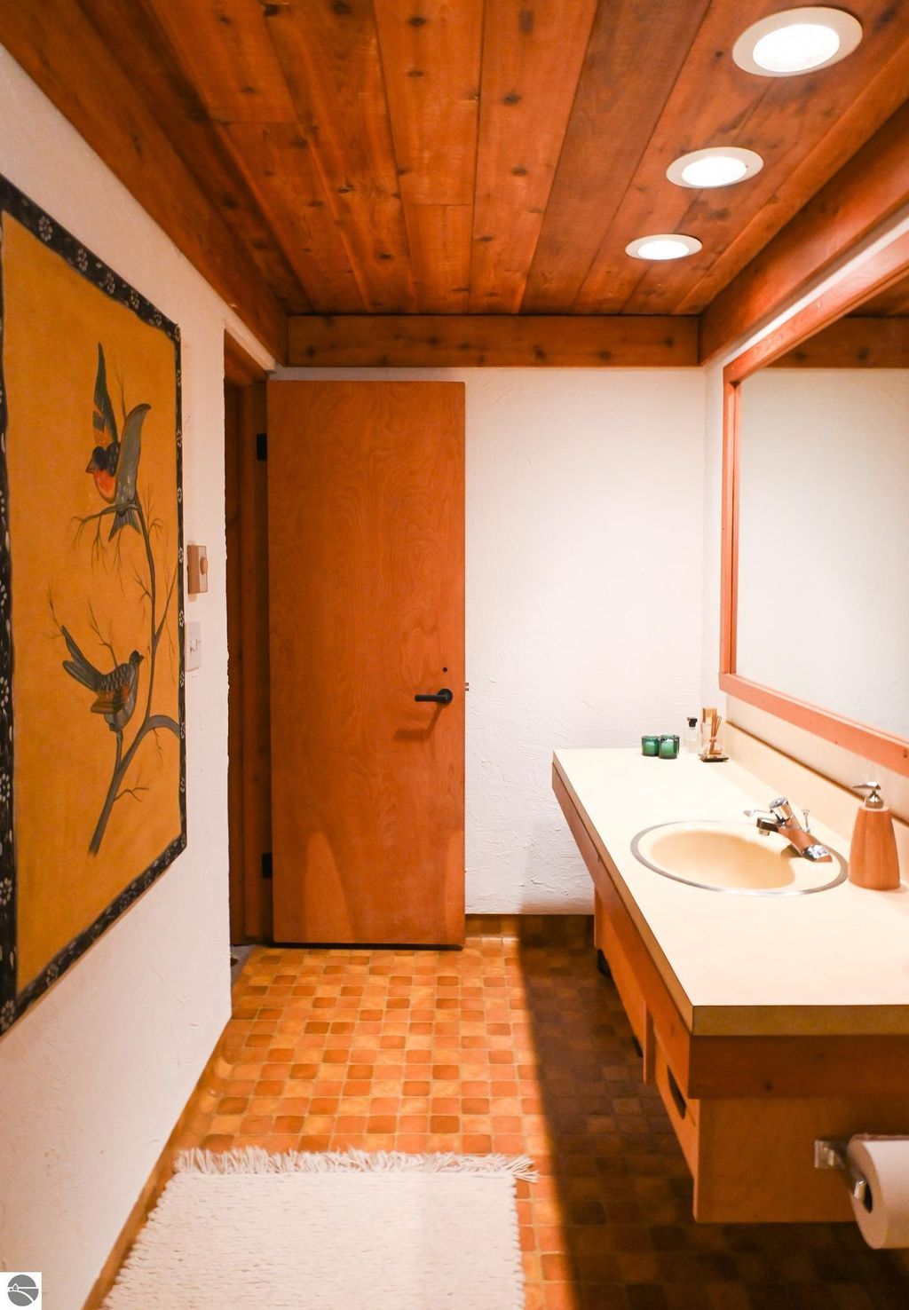 This distinctive hillside home was designed by celebrated Northern Michigan architect Roger Hummel during the formative years of Sugar Loaf, when modern architecture and outdoor recreation converged in a way rarely replicated today. Purpose-built for its setting, the home remains largely original and clearly reflective of its era. The design unfolds vertically, with multiple levels connected by sculptural stairways and intimate moments of discovery, including built-in seating, child-scale details, and unexpected vantage points throughout the home. A centrally located fireplace anchors the main living space, while original finishes and handcrafted elements preserve the character and craftsmanship of the period. The lower level includes a private entrance, kitchenette, full bath, and bedrooms, allowing for guest separation while still functioning as a single residence. A sauna, outdoor terraces, and hillside views further enhance the experience. The property directly abuts the former Sugar Loaf ski resort lands, now permanently protected and under active revitalization by the Leelanau Conservancy. The Conservancy has secured full funding to transform the 285-acre site into a year-round public natural area featuring extensive trail networks for hiking, biking, snowshoeing, and cross-country skiing, along with summit access, gathering pavilions, sledding areas, nature play spaces, and ecological restoration initiatives. This protected landscape ensures long-term continuity of open space, recreation, and viewshed immediately adjacent to the home. Short-term rental use has occurred in the surrounding area; buyers should independently verify current regulations and eligibility. This home was never intended to be generic. It offers a strong architectural foundation for thoughtful evolution while preserving an important chapter of Northern Michigan's architectural and recreational history.