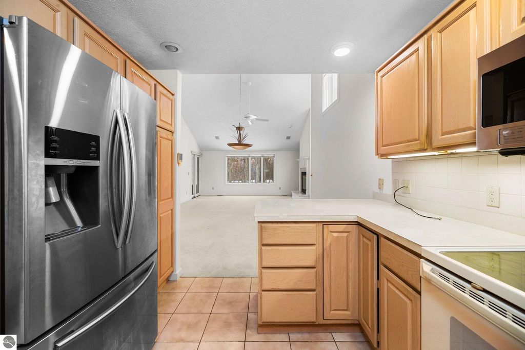 Well maintained 3 bedroom, 2.5 bathroom condo located in the desirable Port of Old Mission, offering a fourth non conforming bedroom ideal for additional sleeping space, a home office, or flex room. This thoughtfully cared for home features two cozy fireplaces, a functional and comfortable layout, and is truly move in ready. Enjoy the added convenience of an attached garage plus a second detached garage, providing excellent storage options. A seasonal room off the back overlooks the wooded setting, creating a peaceful retreat to relax and unwind. Ideally suited for full time living or a Northern Michigan getaway, and conveniently located just five minutes from downtown Traverse City with easy access to dining, shopping, and the waterfront.