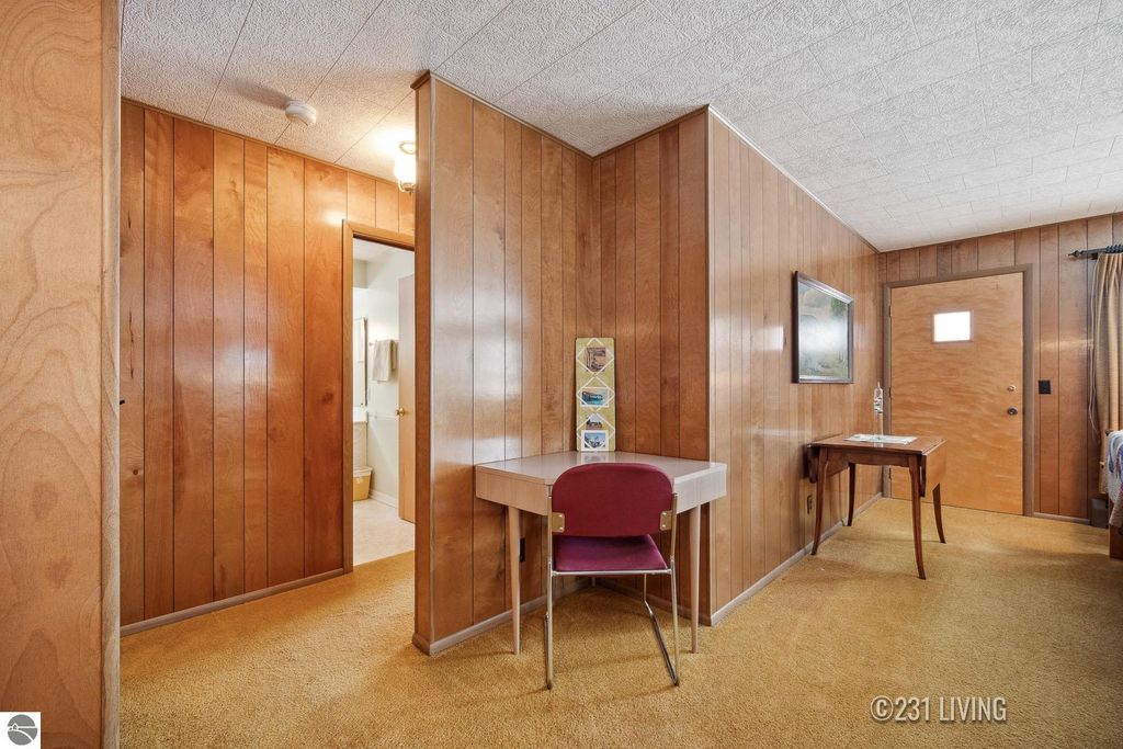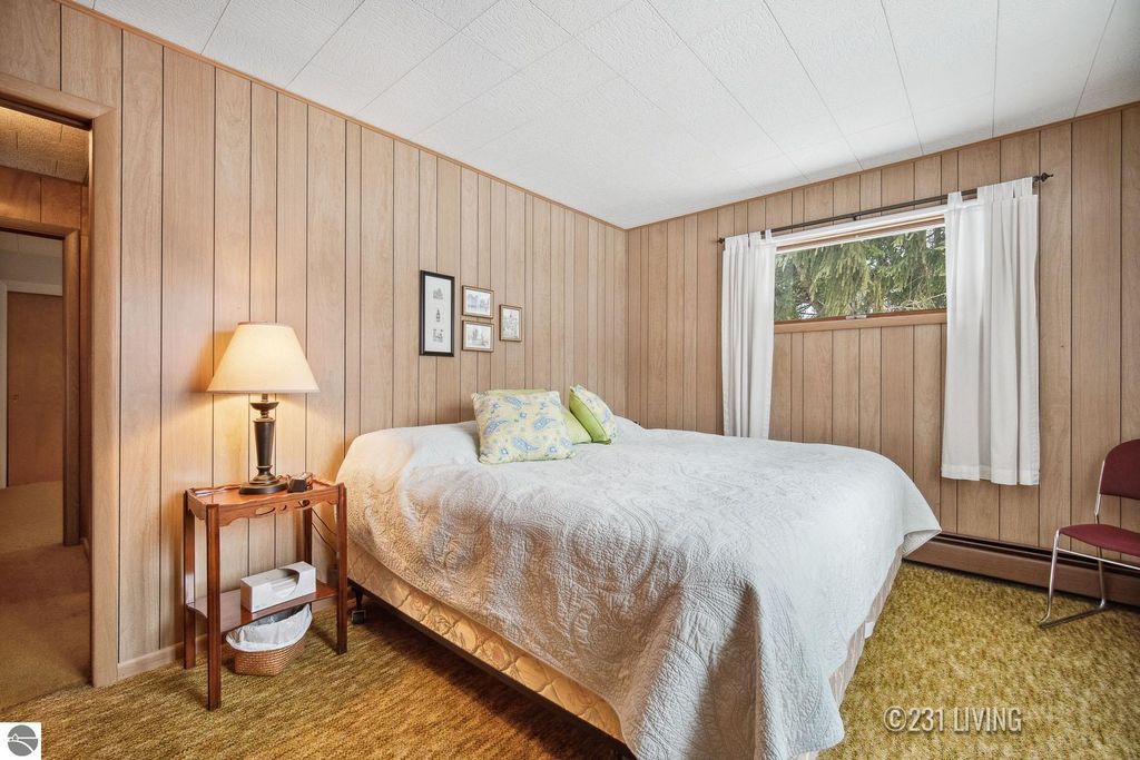 Step back in time with this inviting three-bedroom, two-bath home just two miles north of the Torch Lake Sandbar. With meticulously preserved 1970's finishes, the home offers a true retro charm"”like opening the door to a time capsule. The open floor plan is oriented to the outdoors, with picture windows and a deck that capture seasonal, peek-a-boo views of Torch Lake. A spacious deck with electric awning makes summer days more comfortable, while the large two-car garage provides excellent storage for cars, boats, or recreational vehicles. Whether you lean into the vintage aesthetic or plan to update, this property offers a fun blend of nostalgia and potential. Furnishings negotiable.