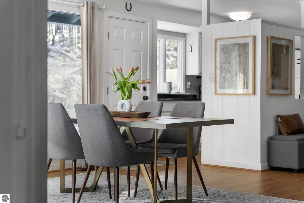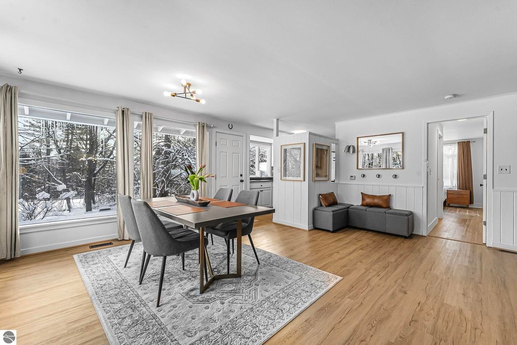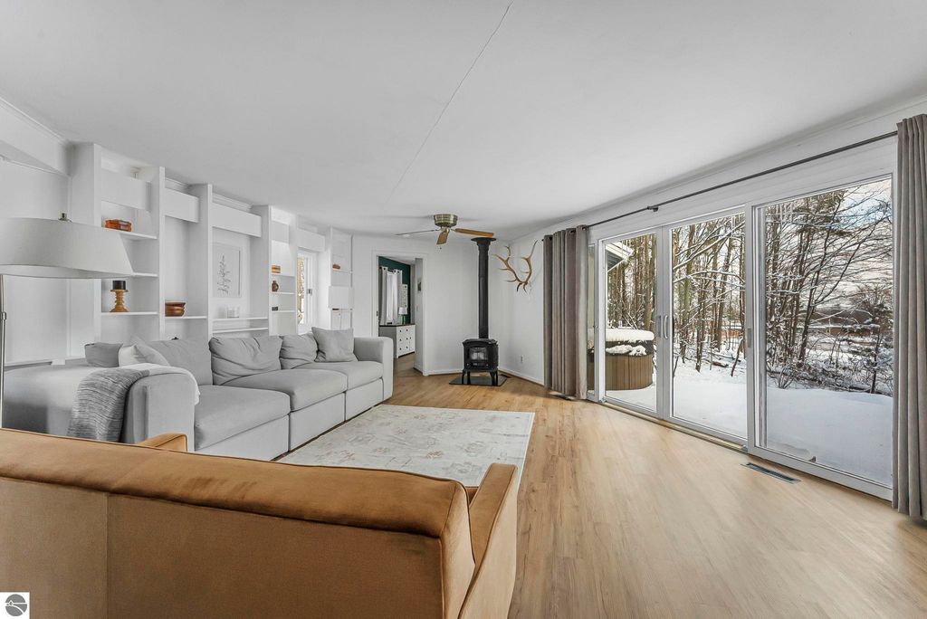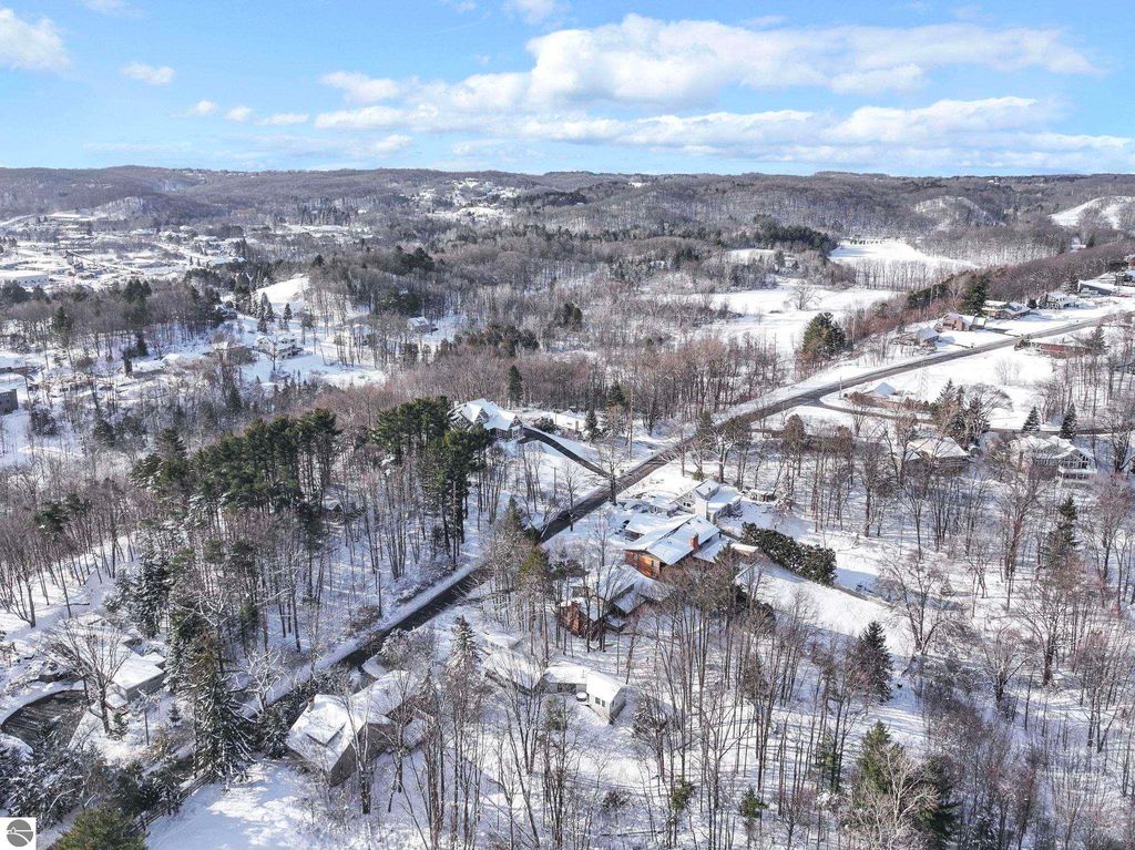 Dream location! Wayne Hill is perched above the city, offering peaceful surroundings just moments from Traverse City amenities. Enjoy easy access to restaurants, boutiques, Munson Medical Center, beaches, trails, the farmers market, and more. This beautiful mid-century modern features oversized windows that effortlessly infuse the open-concept living, dining, and family rooms with natural light. Enjoy how this sprawling ranch blends contemporary modern lines with organic warmth, highlighted by natural stone and wood accents, and a palette of nature-inspired colors for paint and window treatments.The primary bedroom offers an updated private ensuite bath, while the secondary bedroom also includes its own full ensuite. A conveniently located powder room sits just off the secondary living area"”ideal for a home office, reading lounge, or creative flex space. Main-level living includes a dedicated laundry room, with additional storage available in the lower level and multiple sheds. Just steps from Ashton Park and minutes from coveted Hickory Hills for downhill skiing and cross-country trails. Fun for every season, this property is perfect for a year-round residence.
