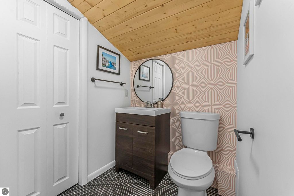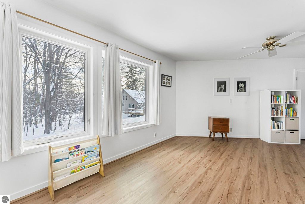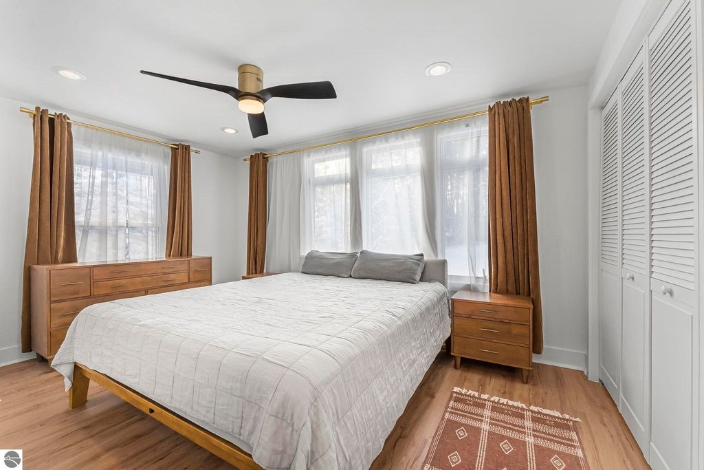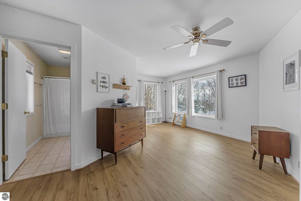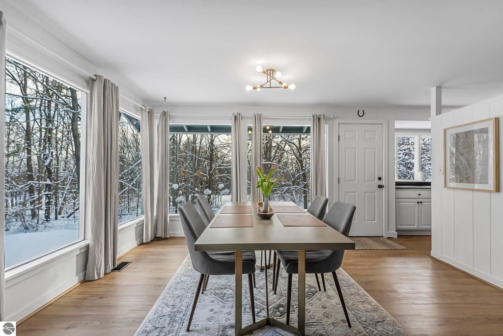 Dream location! Wayne Hill is perched above the city, offering peaceful surroundings just moments from Traverse City amenities. Enjoy easy access to restaurants, boutiques, Munson Medical Center, beaches, trails, the farmers market, and more. This beautiful mid-century modern features oversized windows that effortlessly infuse the open-concept living, dining, and family rooms with natural light. Enjoy how this sprawling ranch blends contemporary modern lines with organic warmth, highlighted by natural stone and wood accents, and a palette of nature-inspired colors for paint and window treatments.The primary bedroom offers an updated private ensuite bath, while the secondary bedroom also includes its own full ensuite. A conveniently located powder room sits just off the secondary living area"”ideal for a home office, reading lounge, or creative flex space. Main-level living includes a dedicated laundry room, with additional storage available in the lower level and multiple sheds. Just steps from Ashton Park and minutes from coveted Hickory Hills for downhill skiing and cross-country trails. Fun for every season, this property is perfect for a year-round residence.