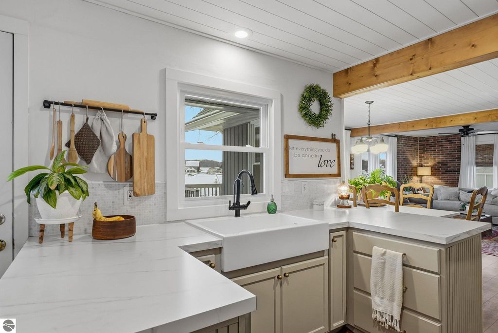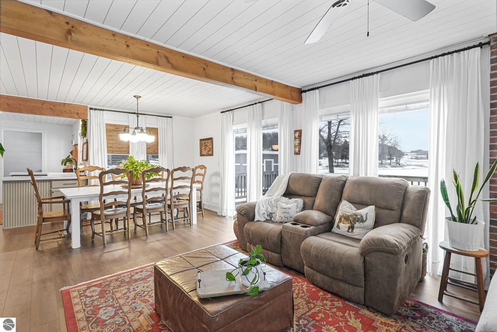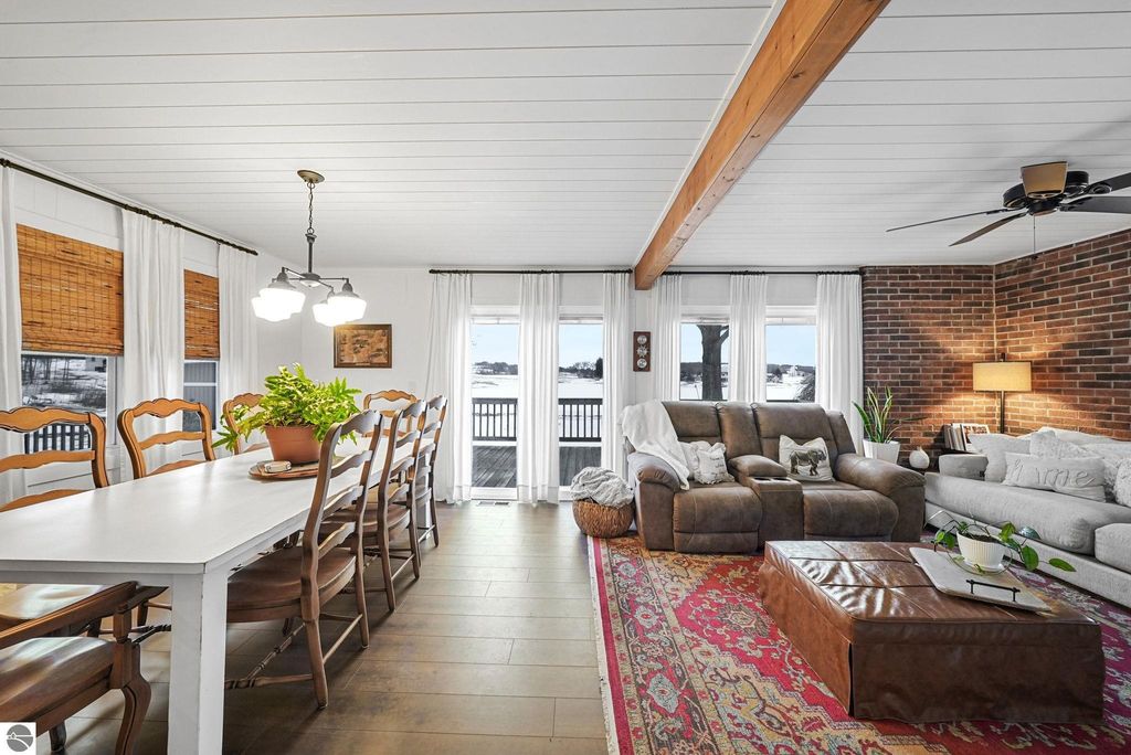 Look no further! This exceptional home truly checks all the boxes. Perfectly suited as a full-time residence, short-term rental, or the ultimate "Up North" getaway, this beautifully finished 5-bedroom, 2-bathroom property has been thoughtfully and extensively updated from top to bottom. The home has undergone a complete transformation, featuring updated electrical throughout the house and garage, a tankless water heater, central air conditioning, a fully remodeled kitchen, updated bathrooms, and all-new vinyl plank flooring. Additional upgrades include double-hung Low-E windows, new sliding doors, a Rain Soft water treatment system, underground dog fence, generator plug, new driveway drain and piping, fresh drywall in the garage, and fresh paint throughout, just to name a few. The open-concept layout creates a welcoming yet cozy atmosphere, perfect for relaxing by the electric fireplace or entertaining guests. Step outside and let the expansive back deck and back yard lead you to the sandy beach and inviting waterfront, your own private retreat. Unlike many lakefront homes, this property offers ample storage closets and generous parking space. The current owners thoughtfully enhanced the shoreline by clearing the beach area and adding additional sand to deliver a true beach experience. With no corner overlooked, this move-in-ready home offers peace of mind and endless enjoyment. A complete list of improvements is available in the associated documents.