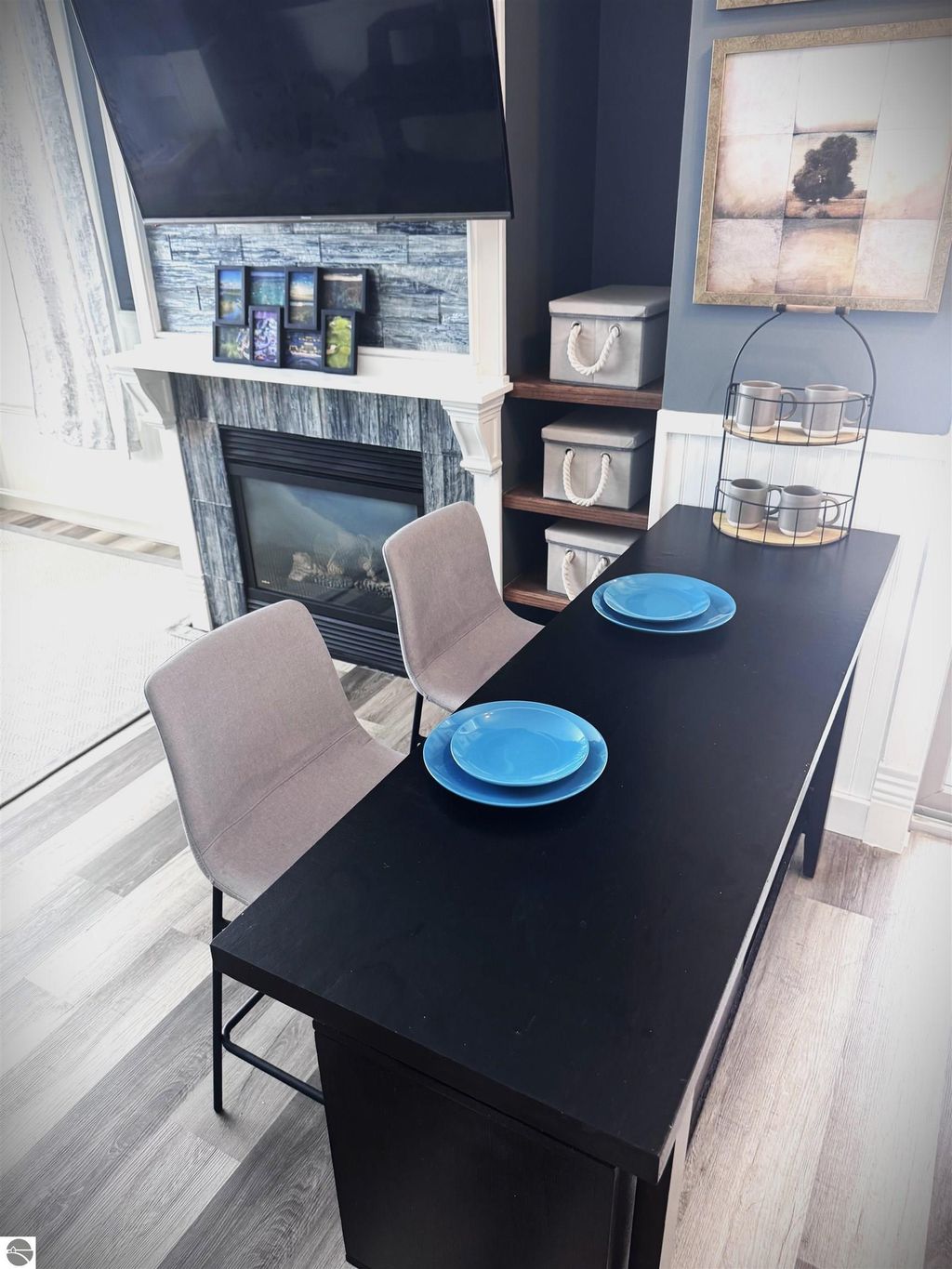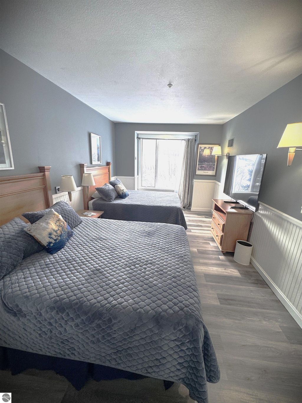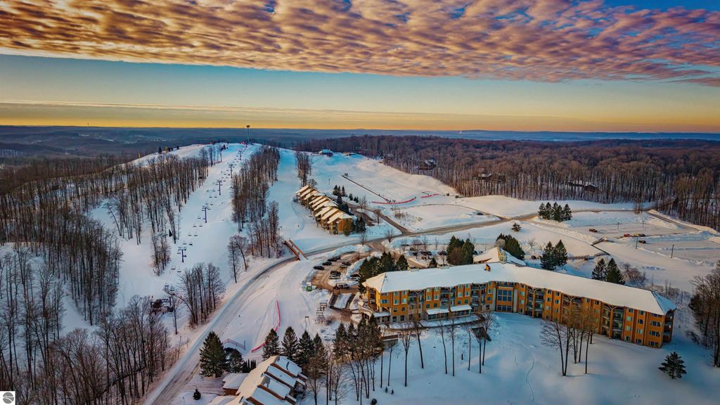 Experience effortless Up North living in this luxury 1-bedroom condotel at Cedar River Lodge within Shanty Creek Resort. This 656 sq ft, 1-bedroom, 1-bath corner unit has been recently updated and freshly painted. Highlights include new luxury vinyl plank flooring, a gas fireplace with striking new glass tile surround, and a well-appointed kitchenette featuring a microwave with air fryer, convection oven & fan, and an abundance of natural light. The spacious bathroom showcases tile flooring, a granite countertop, and a relaxing jacuzzi tub, creating a spa-like atmosphere after a day on the slopes or golf course. The monthly HOA fee covers all expenses except property taxes, making ownership simple and predictable. Whether you're looking for a personal getaway, an income-producing short-term rental, or both, this condotel delivers flexibility and convenience in a premier resort setting. Offered fully furnished and turnkey, this unit is truly move-in ready. The only thing missing is you.
