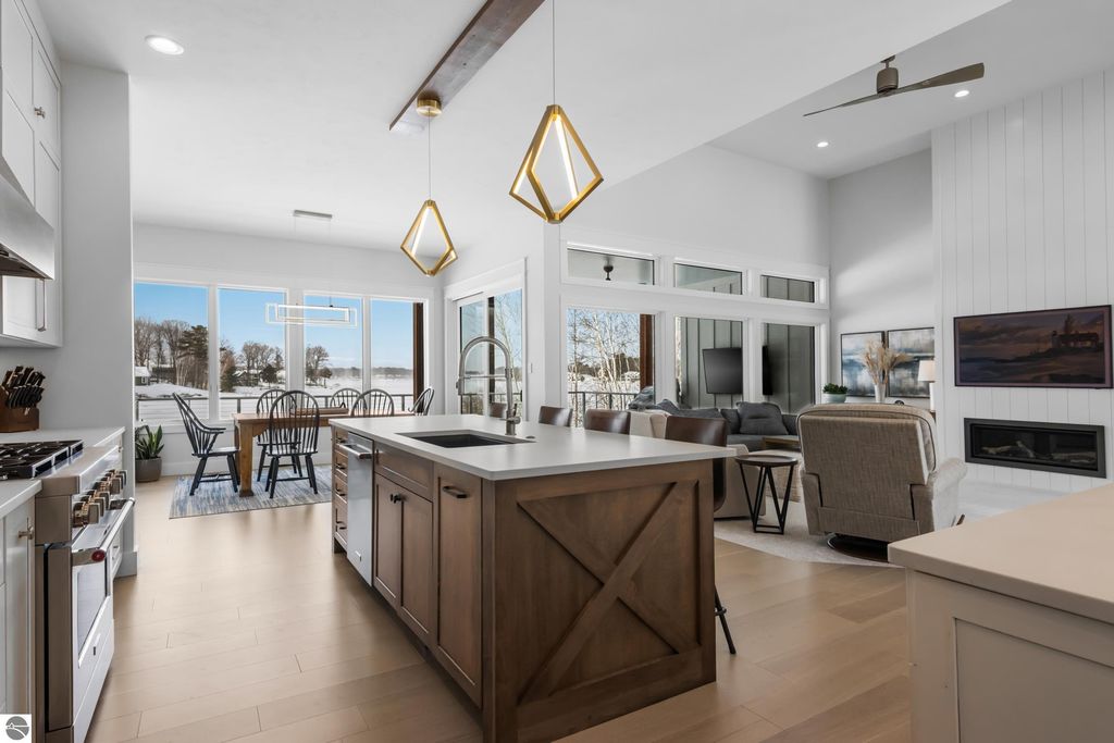 Set on 1.47 acres with 162 feet of private Silver Lake frontage, this Traverse City lake home delivers that rare combo of a true waterfront setting and an easy hop into downtown TC for dinner, shopping, and year-round fun. The large lakefront lawn is the kind of space you actually use, perfect for summer games, big gatherings, and evening bonfires by the water. Silver Lake locals are proud of their little piece of paradise. It is a beautiful 600-acre lake known for wildlife, gorgeous sunsets, and clear, inviting water, with an active preservation association that helps keep it that way. You will also love the way the shoreline breaks up into islands, coves, and inlets, offering plenty to explore for fishing, paddling, and relaxed cruising. Inside, the layout is built for everyday comfort and easy hosting, anchored by an award-winning kitchen recognized as the 2023 Parade of Homes Best Kitchen, plus engineered white oak floors and a bright, open main level that keeps the lake in view. The primary suite and laundry are on the main floor, and the finished walkout lower level adds extra bedrooms and a large living area for guests or game days. When you want the home to work with you, it does. Control4 allows you to adjust lighting, audio, TVs, and more from an easy-to-use app"”whether you're home or away. With whole-home audio and a theater setup, everything feels seamless and dialed in without ever feeling complicated. This is the kind of home that makes weekdays feel like weekends. Take your boat out after work, catch sunset from the deck, then be downtown in minutes for a late dinner or a quick stroll through your favorite spots. It is waterfront living with Traverse City right there when you want it.