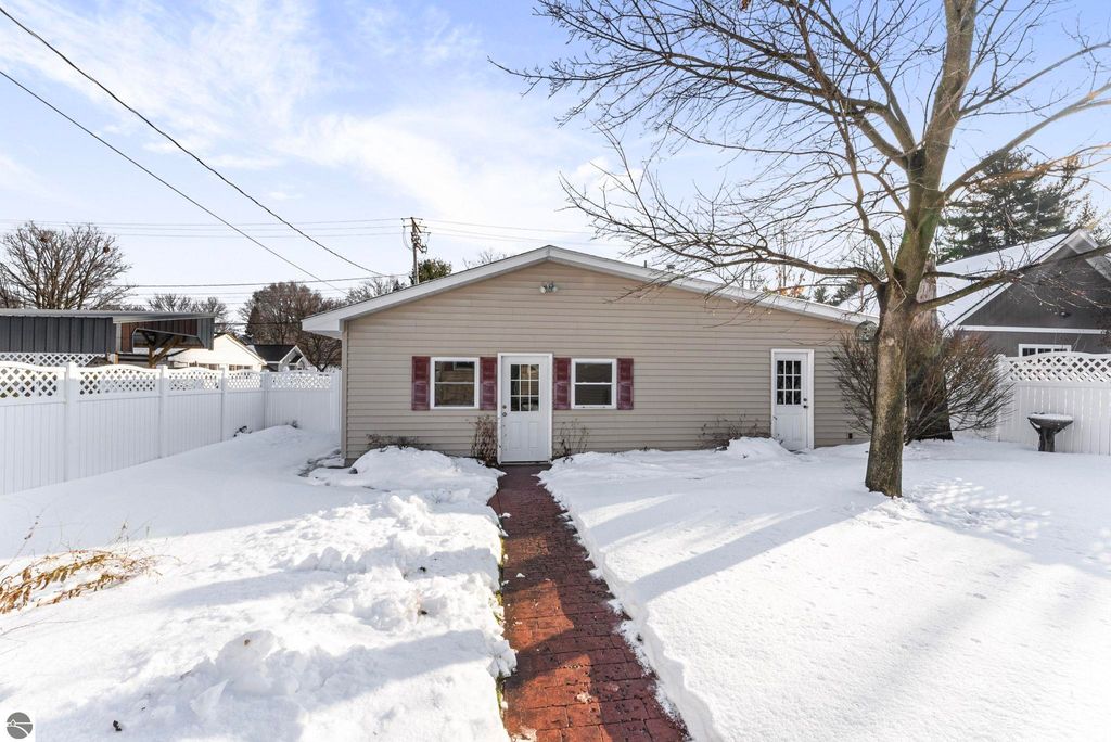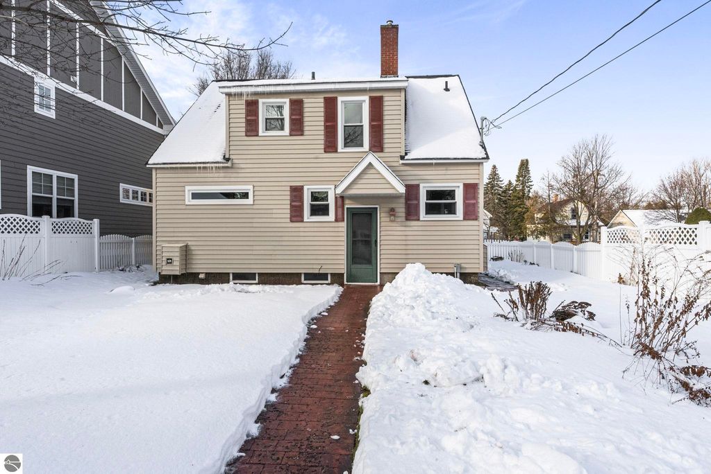In town but out of the busy mix, this 3-bedroom, 2-bath Cape Cod offers a turn-key escape to peaceful living in Traverse City. The home features comfortable main-floor living, abundant natural daylight, and a completely renovated, chef-centric galley kitchen with high-end cabinetry and granite countertops"”ideal for both everyday living and entertaining. Well-maintained hardwood floors add warmth and continuity through the kitchen and upstairs living spaces. The basement provides ample storage and, with a little vision, could easily become a cozy media den. Outside, beneath the winter snow, lies one of the best-kept lawns and landscaped yards in town, highlighted by established flowering perennials and a classic white picket fence. A detached single-car garage includes a spacious rec room with its own furnace"”perfect for a serious home gym or woodworking shop"”and offers the flexibility to be converted back into an additional two-car garage for a total of three garage spaces. A new furnace adds peace of mind, and the location places you just minutes from Traverse City's dining and amenities, or a quick trip up the hill to enjoy Traverse City Country Club"”delivering charm, function, and flexibility in an exceptional setting.
