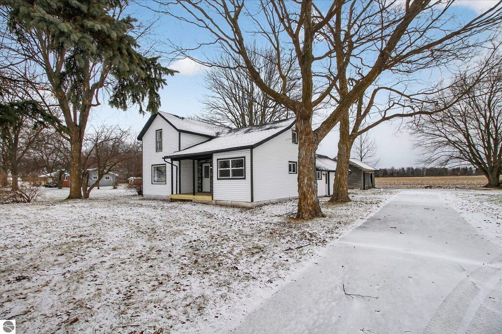 Welcome to this completely renovated home! Situated just outside of town, it has all the charm of a farmhouse, but none of the worry, because this house has been renovated from top to bottom. New roof, new siding, and new flooring and paint throughout. The kitchen and both bathrooms have undergone complete renovations. The large bedroom upstairs enjoys a private bathroom and large walk-in closet. The kitchen boasts a spacious island with seating as well as a separate dining space, making it perfect for entertaining and family meals. Set on one acre, and surrounded by mature trees, the house awaits a new owner who will enjoy the feeling of farmhouse living. Don't hesitate; schedule a showing today!