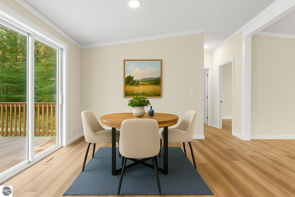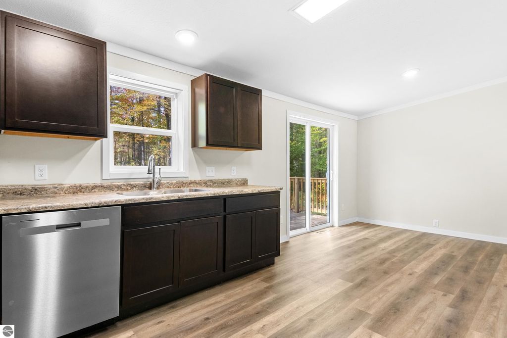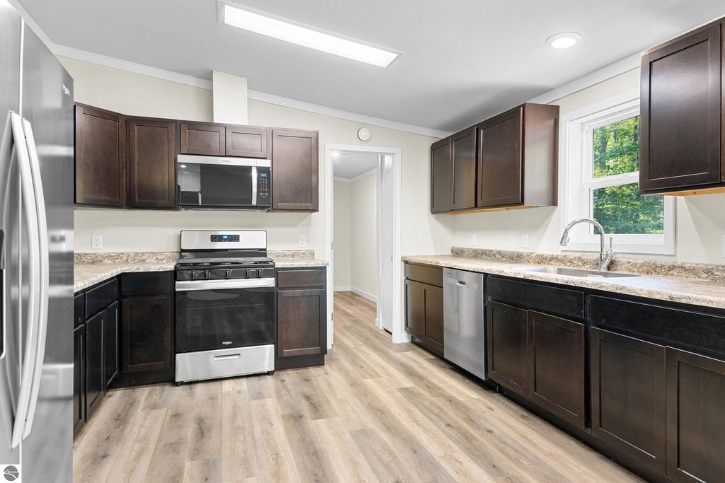 Welcome home to a place that feels both new and familiar. Nestled just far enough off the main road, set back among the trees, this beautifully renovated home offers peace, privacy, and a touch of Up North charm. Step inside and you'll immediately notice the care that's gone into every detail. Nearly everything has been refreshed"”new roof, siding, windowWelcome home to a place that feels effortlessly comfortable from the moment you arrive. Tucked back from the road and surrounded by mature trees, this beautifully renovated home offers the perfect blend of privacy, tranquility, and classic Up North charm. Inside, nearly every detail has been thoughtfs, doors, subfloor, paint, and flooring"”creating a move-in-ready space that feels clean, bright, and inviting. The kitchen is the heart of the home, featuring brand-new cabinets, countertops, Whirlpool stainless steel appliances (including a 5-burner gas stove), and warm, updated lighting. Whether you're cooking dinner or catching up over morning coffee, it's a space made to gather and enjoy. The primary suite offers a quiet retreat with a completely remodeled en-suite bath that includes a double vanity, walk-in shower, and relaxing soaker tub. Both bathrooms have been tastefully updated, and every bedroom has that just-right mix of comfort and freshness. Step outside onto the brand-new deck and enjoy the peaceful, wooded surroundings. It's easy to picture slow weekend mornings, summer barbecues, and crisp fall evenings under the stars. And with practical updates like new central air, updated water lines, and a new well pump, you can enjoy the charm without the worry. For added flexibility, the seller is open to discussing land contract terms, making this property even more accessible. The seller is also willing to build a garage for an additional cost, offering the opportunity to further customize the home to your needs. Modern comfort meets laid-back Northern Michigan living"”simple, warm, and ready to welcome you home.
