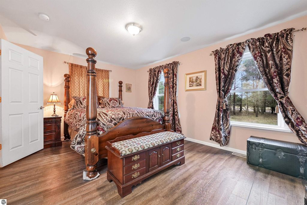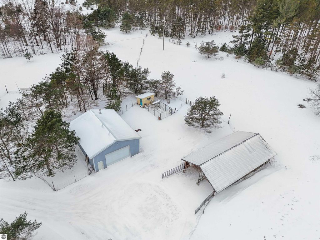 This high-quality, well-built and well-maintained ranch style home is tucked away in a peaceful, private setting on 12 acres completely fenced with woven wire and a solar powered entry gate. The 4-bedroom, 3-bath home was built in 2006 with energy-efficient 2x6 construction, R-24 wall insulation, and R-50 attic insulation, plus large energy-efficient windows all around to enjoy the breathtaking beauty of northern Michigan. The main level offers a primary suite with a private bath and dual walk-in closets, a spacious living room with a beautiful gas fireplace, formal dining, large pantry, and main floor laundry. The finished basement adds three bedrooms"”including a second large suite with two walk-in closets"”a family room with a freestanding gas fireplace, and a third bath. Ideal for hobby farming, the property includes a 30'x40' pole barn with wood stove, 30'x60' hay barn, chicken coop with solar door, 2 goat barns,12 acres with fenced pastures, woods, apple trees, and a large fenced garden. Excellent location only minutes away from Crystal Lake, Crystal Mountain, Betsie River, Platte River, and Benzie Central Schools!
