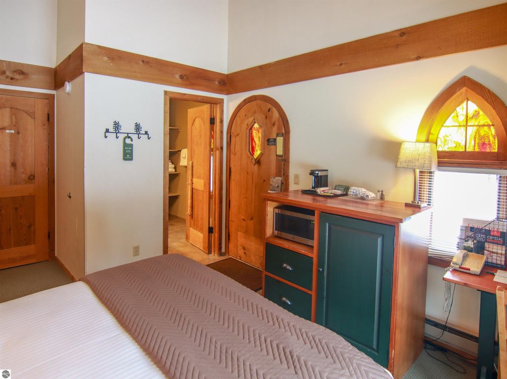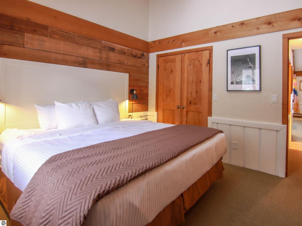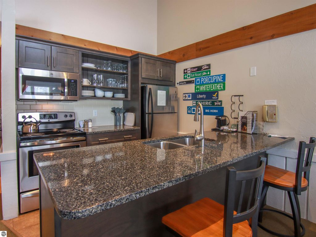 This spacious 2-bedroom, 2-bath whole-ownership condominium residence is a first floor end unit with vaulted ceilings near the 9th green of the Betsie Valley Golf Course. And talk about convenient, this Pinehurst is located just across from the Buck lift & slope complex, the Thistle Pub & Grille, and the Kinlochen golf pro shop. The indoor & outdoor pools, Peak Fitness Center and the nationally acclaimed Crystal Spa are just steps away. Cedar trim details and neutral paint colors are complemented by the field stone fireplace and carpeted flooring in the living area. A newly renovated kitchen, bathrooms and updated paint throughout means you'll be able to move in and enjoy without a list of projects before you get started. Soak up the sun or relax at day's end on one of two sun decks - one off the living room in the main unit and the other connected to the lock-off bedroom. The 2nd bedroom is a separately keyed unit that can be rented independently or used as part of the 2-bedroom condo. Professional rental management program available. Crystal Mountain FOUR SEASONS CLUB membership options available.