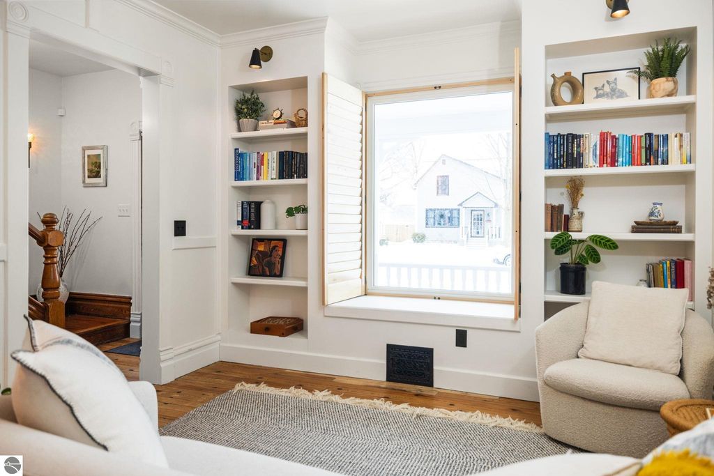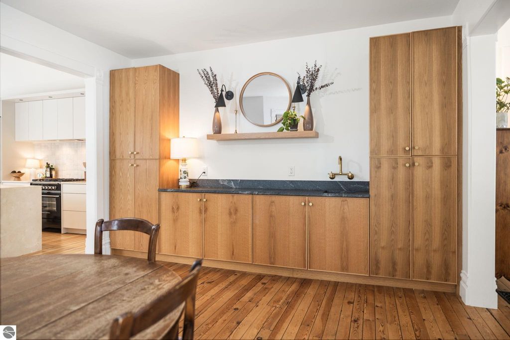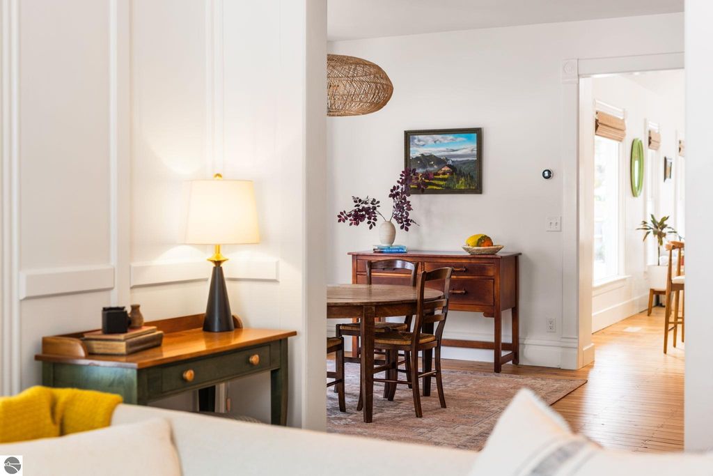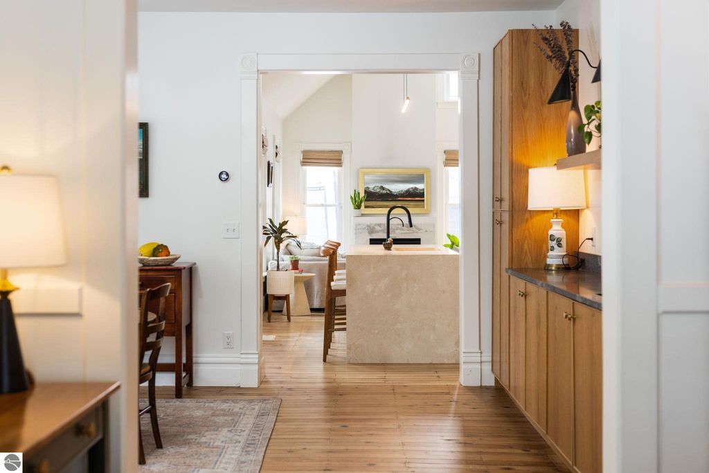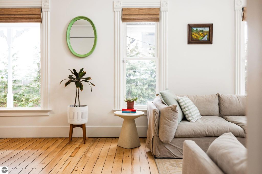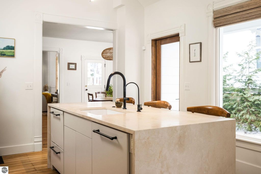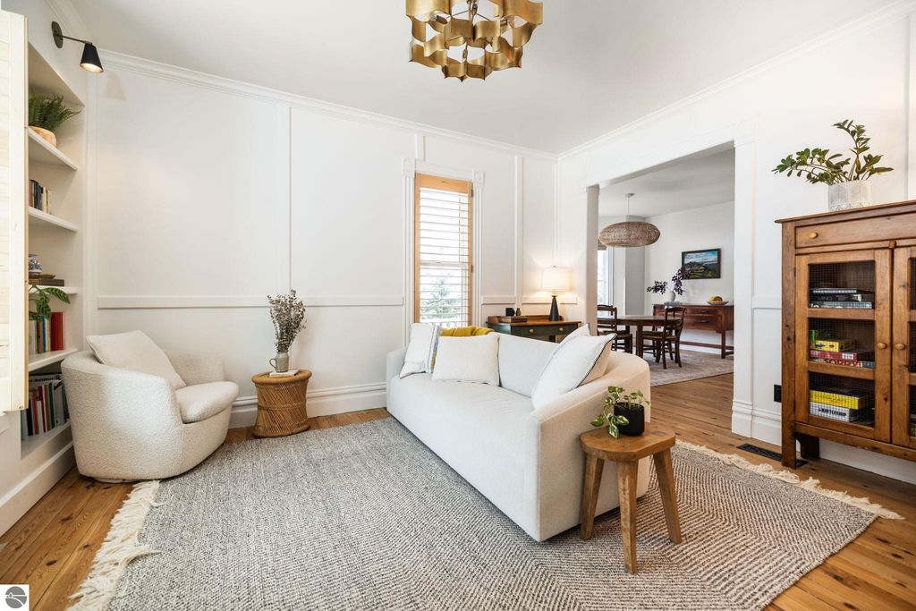 A rare offering in the Central Neighborhood, 507 Fifth Street combines period character with the confidence of a full, down-to-the-studs renovation completed in 2021. Set on a tree-lined block in one of Traverse City's most walkable and architecturally rich areas, this 4-bedroom, 2.5-bath Modern Victorian delivers historic charm alongside modern amenities. Originally configured as a duplex, the home was thoughtfully restructured to restore true single-family flow, including a main-floor primary suite and a vaulted, open kitchen and living area filled with natural light and a gas fireplace. Original wide-plank pine floors were restored, historic millwork and hardware preserved, and high-end finishes selected throughout, including designer light fixtures, marble counter tops, Fisher & Paykel appliances, and custom built-ins. The exterior has also been fully reimagined with redesigned hardscape and landscaping, featuring a herringbone paver patio, cedar fencing, copper gutters, mature arborvitae plantings for privacy, and built-in gas lines supplying an outdoor fireplace and grill area. A recently replaced roof enhances both curb appeal and durability, offering added value for years to come. Significant investment has also been made in the home's long-term health and reliability. Updates include modern mechanical systems such as a new furnace, A/C, whole-house water filtration with reverse osmosis, and a proactive maintenance approach with regularly cleaned HVAC vents and routine sewer lateral servicing. With flexible living areas, including a bonus playroom, and a location just blocks from downtown, West End Beach, local schools, parks, and the Boardman Lake Trail, 507 Fifth Street offers a rare opportunity to own a truly turn-key home in one of Traverse City's most established neighborhoods.