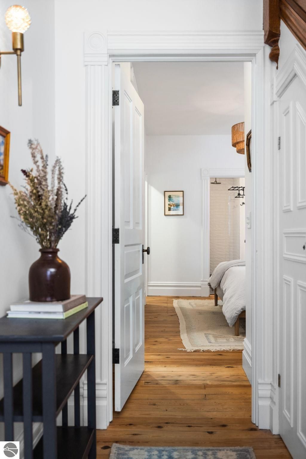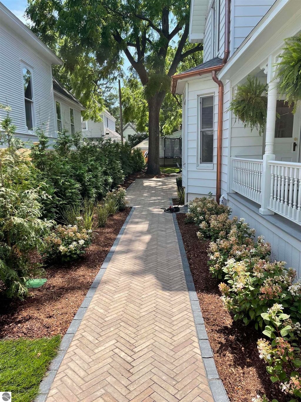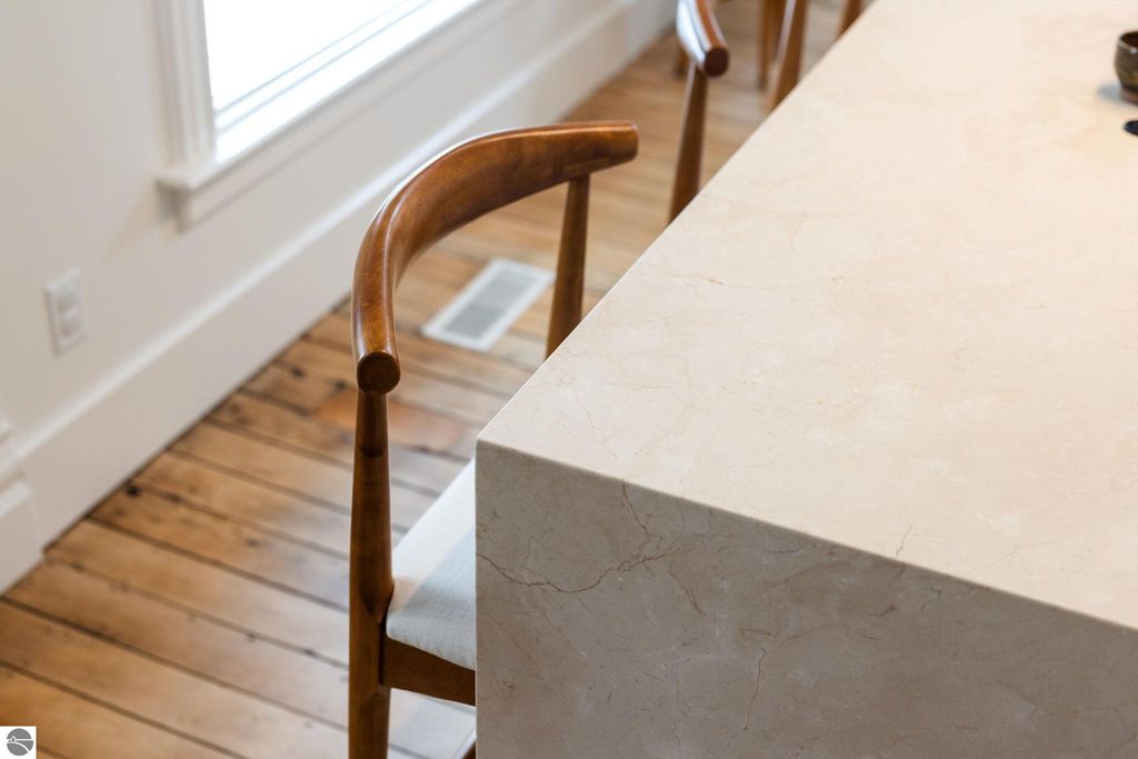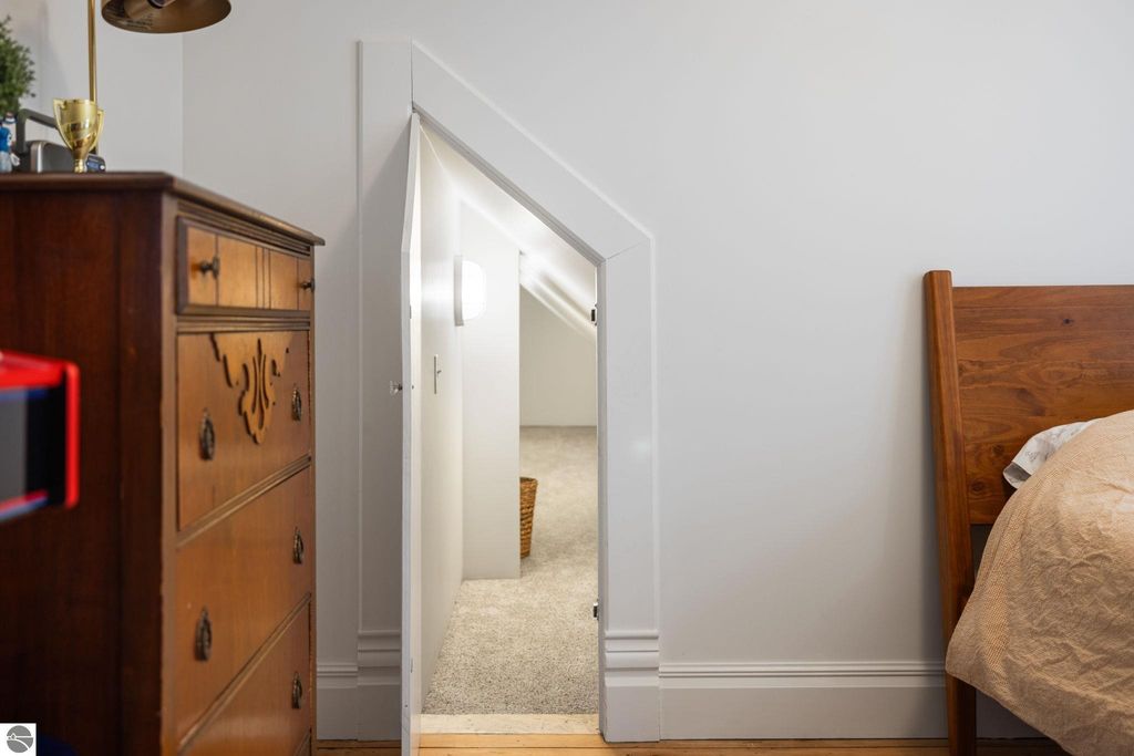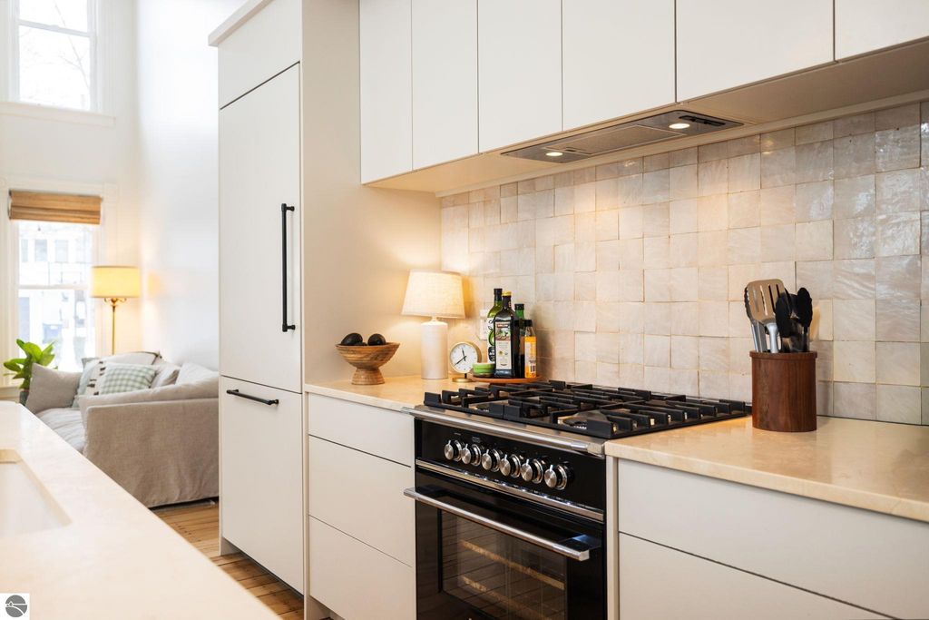 A rare offering in the Central Neighborhood, 507 Fifth Street combines period character with the confidence of a full, down-to-the-studs renovation completed in 2021. Set on a tree-lined block in one of Traverse City's most walkable and architecturally rich areas, this 4-bedroom, 2.5-bath Modern Victorian delivers historic charm alongside modern amenities. Originally configured as a duplex, the home was thoughtfully restructured to restore true single-family flow, including a main-floor primary suite and a vaulted, open kitchen and living area filled with natural light and a gas fireplace. Original wide-plank pine floors were restored, historic millwork and hardware preserved, and high-end finishes selected throughout, including designer light fixtures, marble counter tops, Fisher & Paykel appliances, and custom built-ins. The exterior has also been fully reimagined with redesigned hardscape and landscaping, featuring a herringbone paver patio, cedar fencing, copper gutters, mature arborvitae plantings for privacy, and built-in gas lines supplying an outdoor fireplace and grill area. A recently replaced roof enhances both curb appeal and durability, offering added value for years to come. Significant investment has also been made in the home's long-term health and reliability. Updates include modern mechanical systems such as a new furnace, A/C, whole-house water filtration with reverse osmosis, and a proactive maintenance approach with regularly cleaned HVAC vents and routine sewer lateral servicing. With flexible living areas, including a bonus playroom, and a location just blocks from downtown, West End Beach, local schools, parks, and the Boardman Lake Trail, 507 Fifth Street offers a rare opportunity to own a truly turn-key home in one of Traverse City's most established neighborhoods.