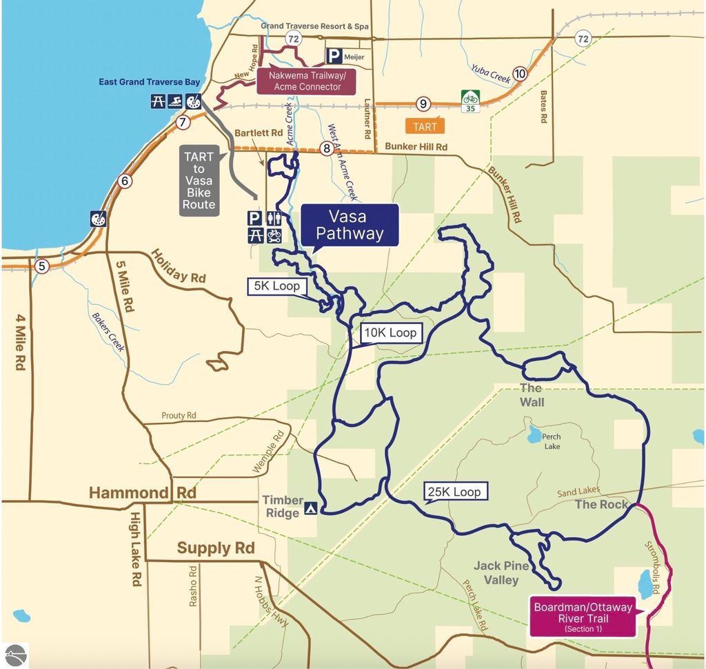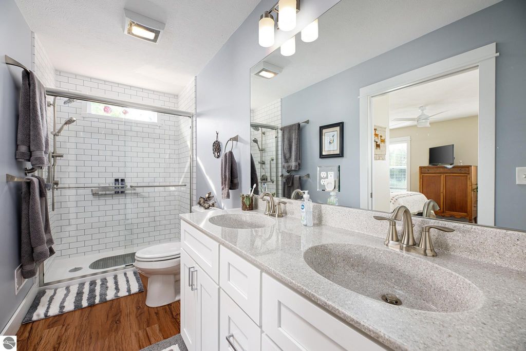 Ideally located near the VASA Pathway and TART Trail, this 2019-built home offers the perfect blend of comfort, nature, and convenience. The backyard is truly a dream-lush, manicured lawn with underground irrigation and expansive nature views that stretch for miles. Enjoy sunrise mornings from the extra-large, high-rise deck overlooking the trees and peaceful surroundings. The kitchen features updated appliances throughout, Quartz Countertops and beautiful views of birds and nature while cooking or dining. The spacious primary bedroom includes a ne 5' step-in shower, double-sink vanity, and ample closet space. Two additional bedrooms are conveniently located on the main level. The unfinished basement is plumbed for a bathroom and ready for your finishing touches. The HVAC system has been regulary maintained by a licensed professional. Though built in 2019, the home feels fresh, clean, and move-in ready. An unbeatable loaction close to shopping, dining, Gorgeous East Bay, Horse show by the bay, golfing, fishing, and miles of trails-making everyday life both easy and enjoyable.