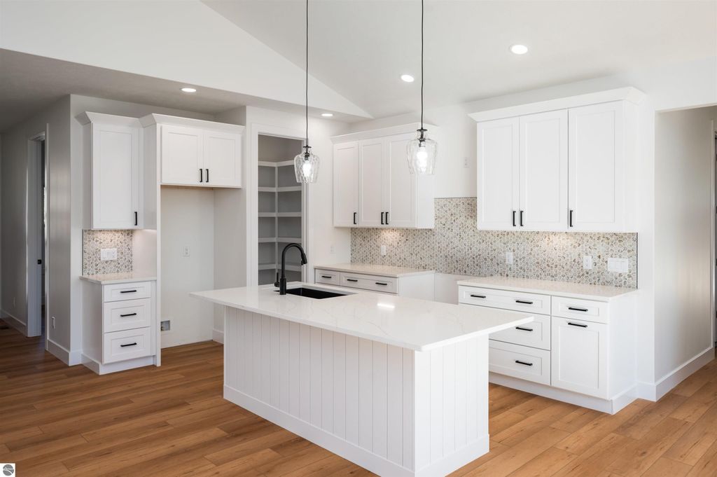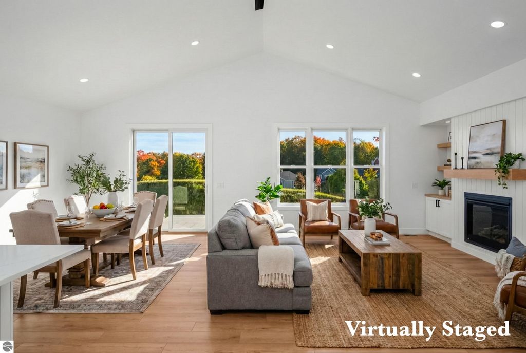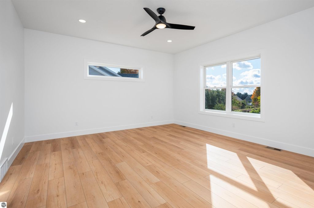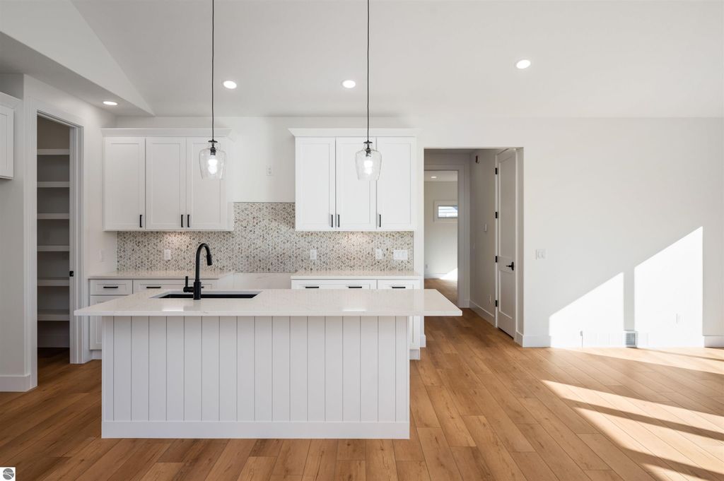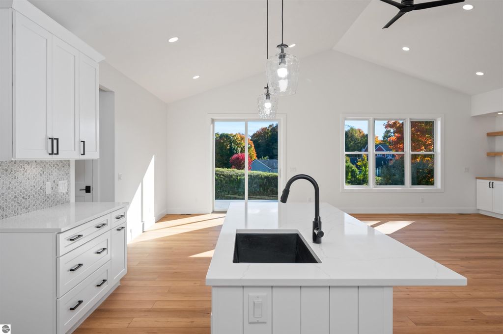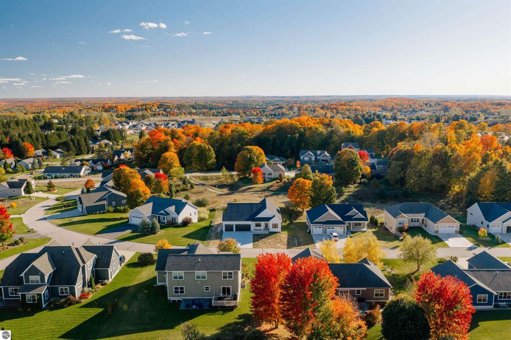 Introducing a brand new modern luxury home on the vibrant west side of Traverse City! The builder just completed this stunning 5-bedroom, 3-bathroom home, complete with a finished 3-car garage and is offering a $10,000 appliance allowance! Meticulous attention has been paid to every detail, and the curb appeal is impressive. The home features quartz counters, luxury vinyl plank floors, a shiplap fireplace and island, built-in bookcases, 8-foot doors, LP Smartside trim and siding, central air, a covered concrete front porch, and a maintenance-free composite wood deck. The main floor includes a primary ensuite with tiled floors and a tiled floor-to-ceiling shower, as well as two additional bedrooms and bath. The finished walkout lower level showcases two additional bedrooms, a spacious family room, and a full bath. Municipal water and sewer. Residents can enjoy the walking trails within the Lone Tree community, which even connect to TC West High School. You'll love this close-to-everything location that's just a few miles from downtown!