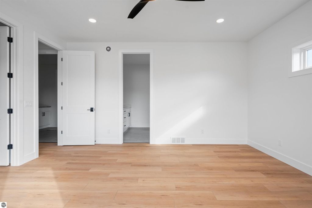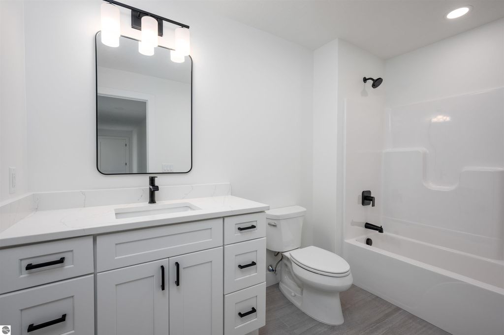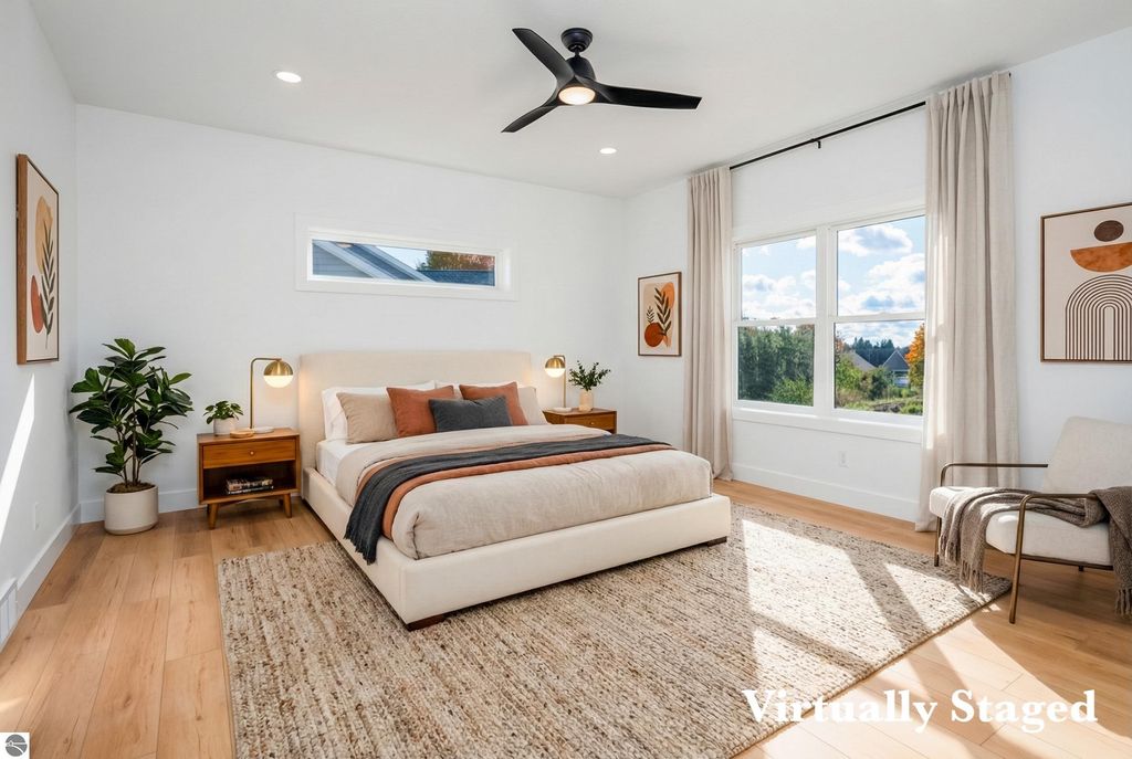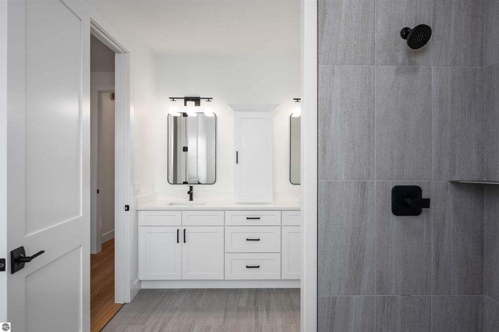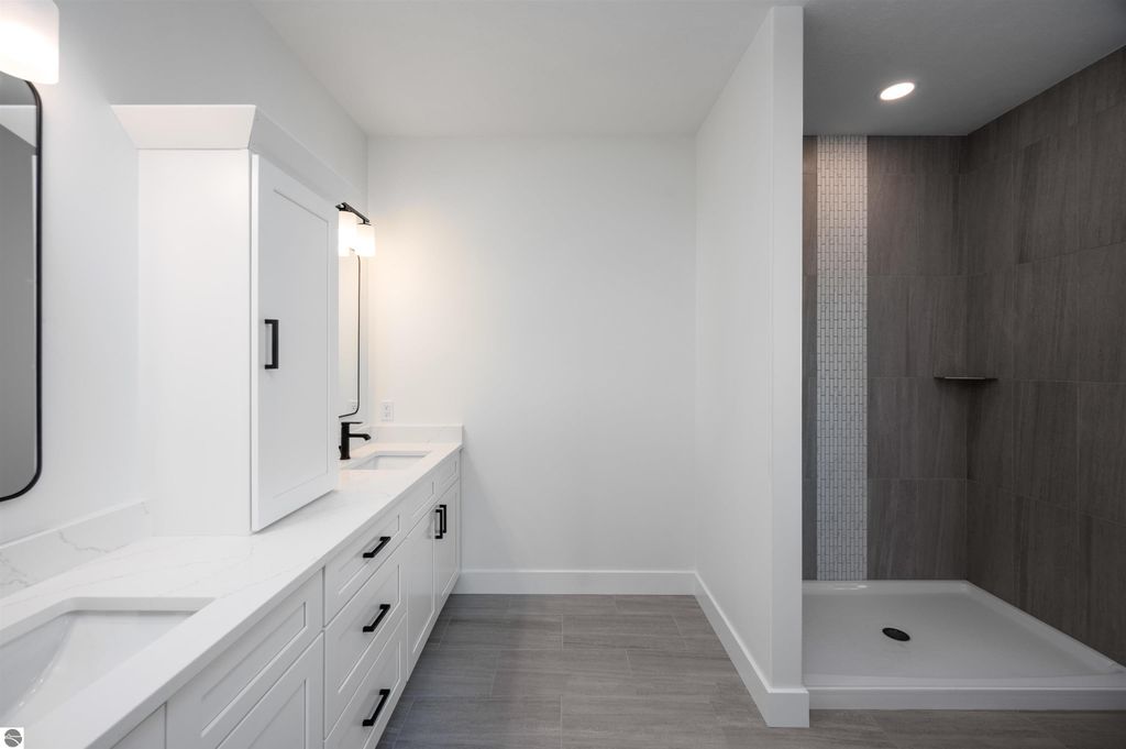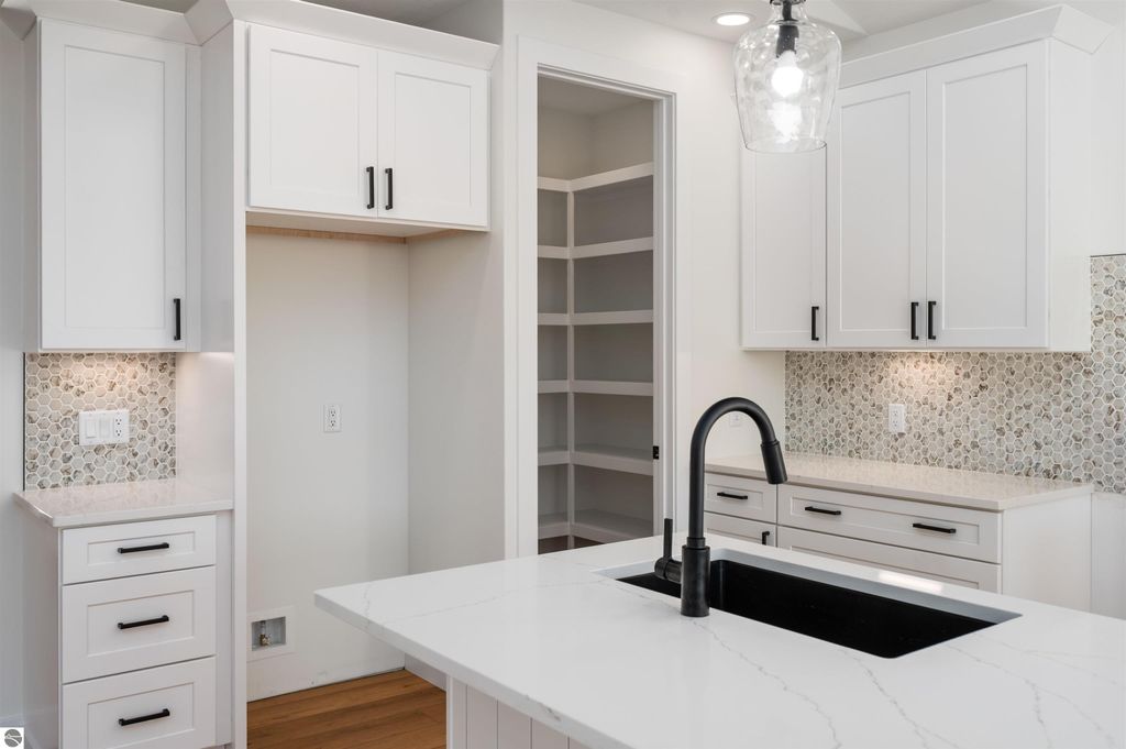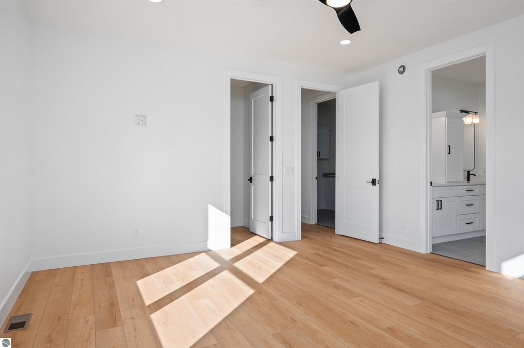 Introducing a brand new modern luxury home on the vibrant west side of Traverse City! The builder just completed this stunning 5-bedroom, 3-bathroom home, complete with a finished 3-car garage and is offering a $10,000 appliance allowance! Meticulous attention has been paid to every detail, and the curb appeal is impressive. The home features quartz counters, luxury vinyl plank floors, a shiplap fireplace and island, built-in bookcases, 8-foot doors, LP Smartside trim and siding, central air, a covered concrete front porch, and a maintenance-free composite wood deck. The main floor includes a primary ensuite with tiled floors and a tiled floor-to-ceiling shower, as well as two additional bedrooms and bath. The finished walkout lower level showcases two additional bedrooms, a spacious family room, and a full bath. Municipal water and sewer. Residents can enjoy the walking trails within the Lone Tree community, which even connect to TC West High School. You'll love this close-to-everything location that's just a few miles from downtown!