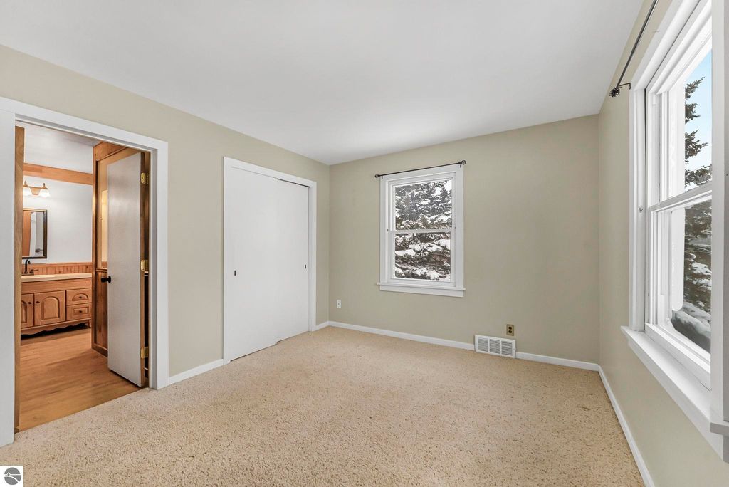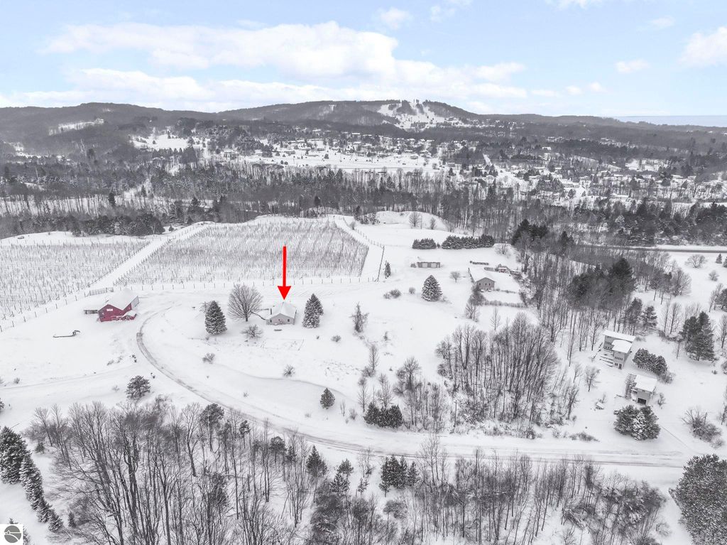 Charming main floor living ranch style home located in Desirable Elmwood Township in Leelanau County. Well maintained home features semi-open floor plan. Spacious kitchen and dining area. Bright and open living room with maple hardwood floors. Primary suite with large bath, including claw foot soaking tub and shower. Home offers inviting foyer and finished breezeway off of 1 car attached garage with access to rear deck. Covered front porch offers country side views. Home includes full basement, Central a/c, situated on over 3 acres. Short drive to all of Traverse City and Leelanau County amenities including access to Tart Trail and near S Lake Leelanau boat launch. Great for year around living or vacation getaway.