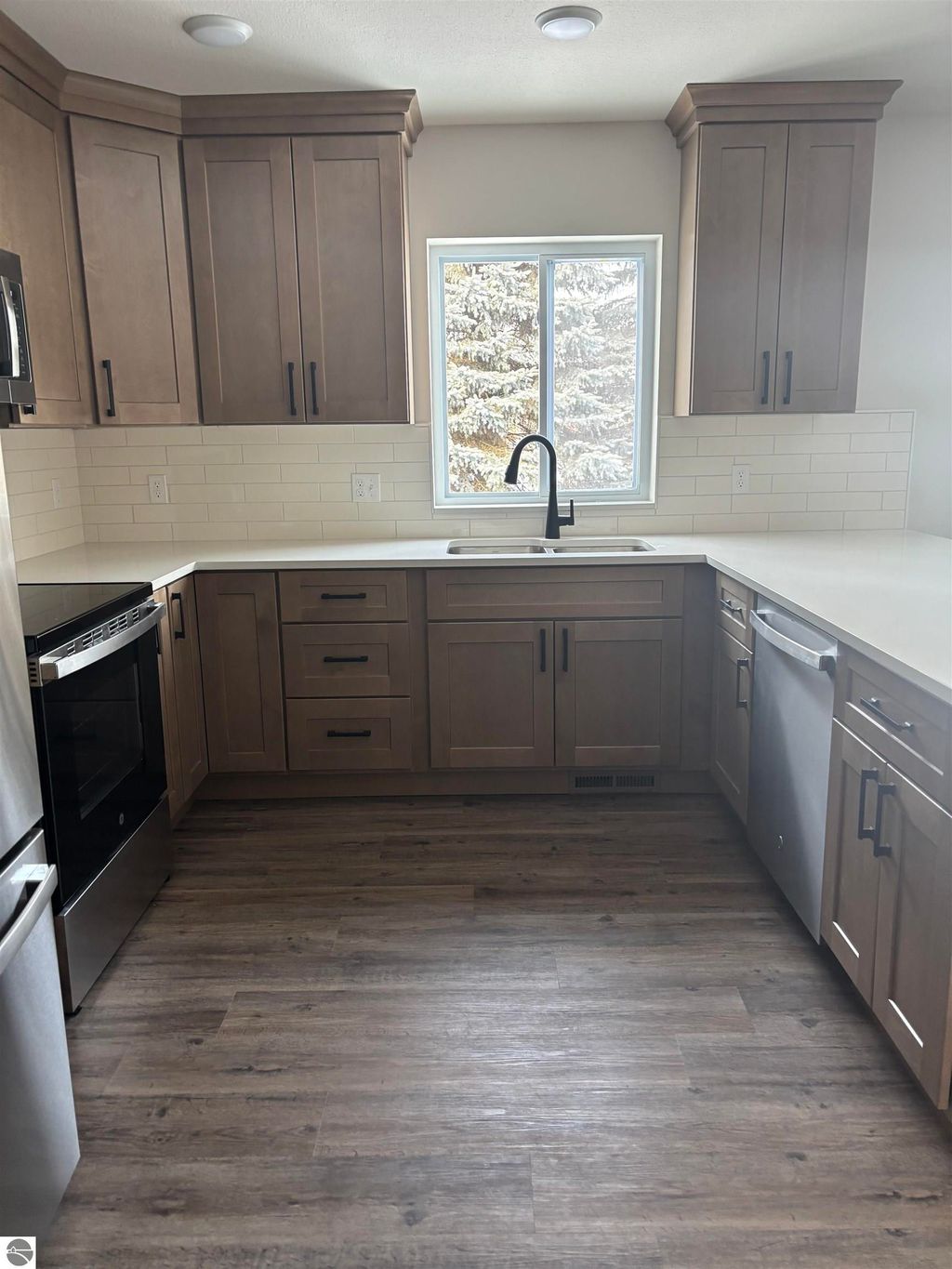 New Construction: This charming home is not only easy on the eyes but also highly functional. This spacious ranch-style home features an open floor plan with 3 bedrooms, 2 full baths and main floor laundry. The kitchen boasts quartz countertops, stainless steel appliances and ceiling height cabinets for plenty of storage. Master en-suite equipped with walk in closet and master bath. From the patio window, step out onto a 14 x 16 deck surrounded by mature pine trees, offering privacy while you enjoy the outdoors. The unfinished basement has an egress window and is ready for you to design your own dream space. The finished attached garage adds convenience, especially during cold weather. Perfectly located in a desirable neighborhood, near shopping, CMU, restaurants, and schools. municipal water and sewer. Be the first to tour this gem!! Measurements approximate to be verify by buyer