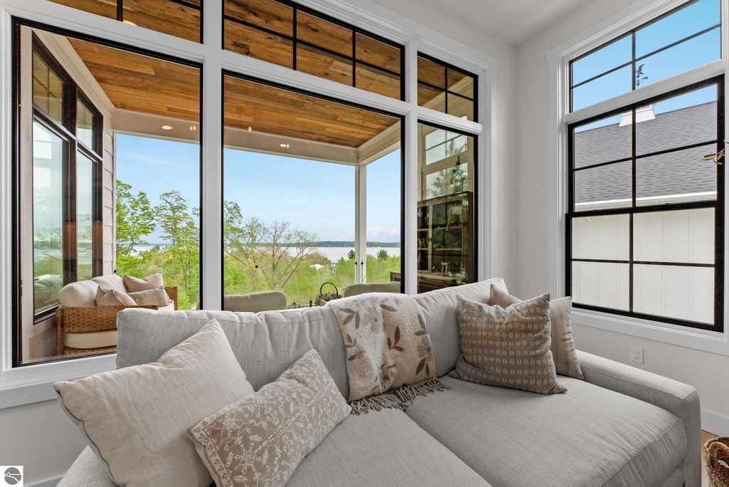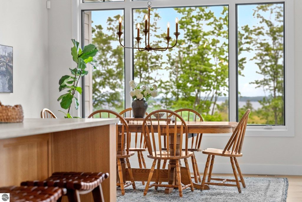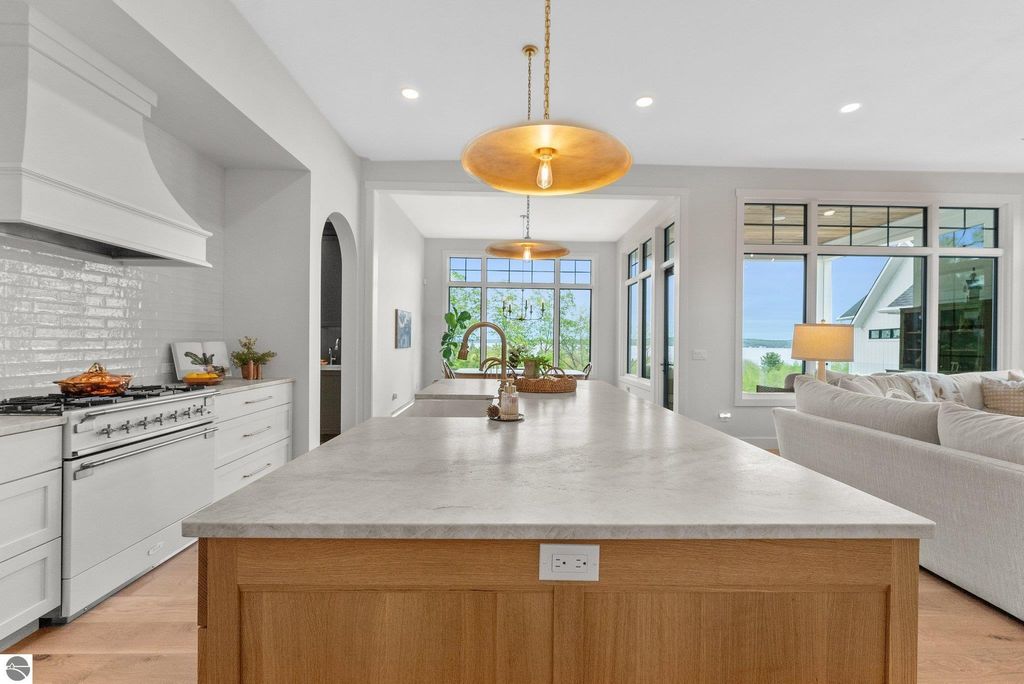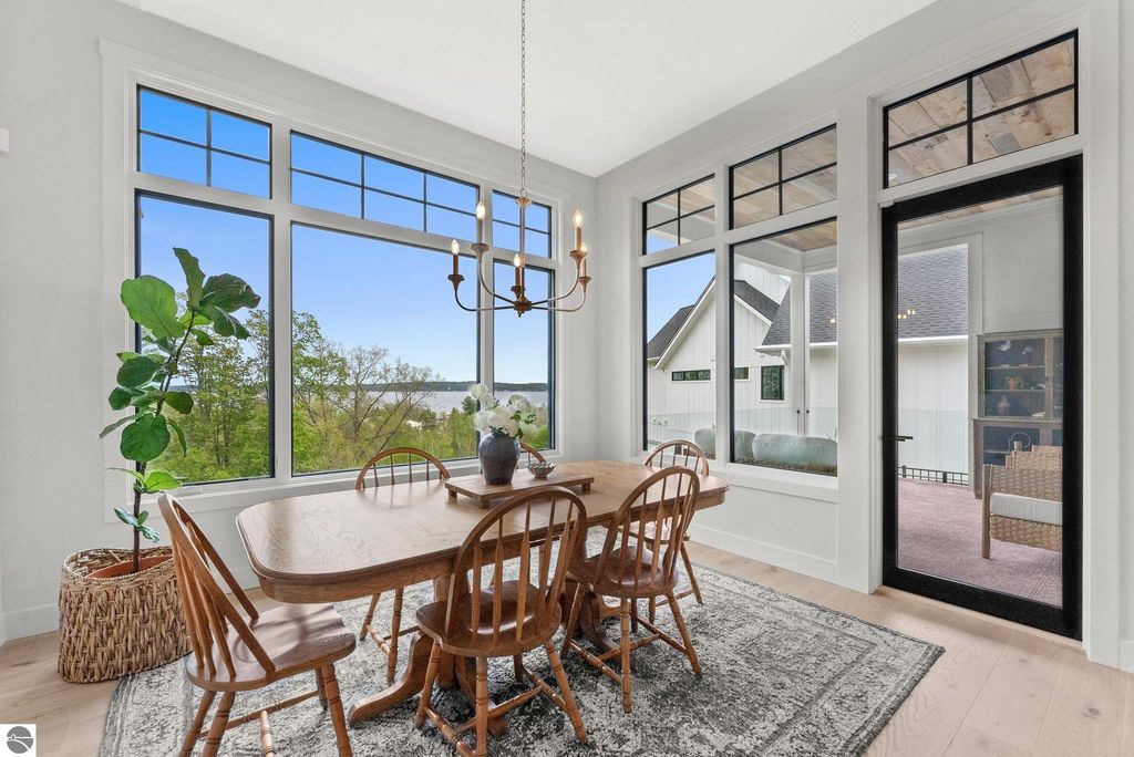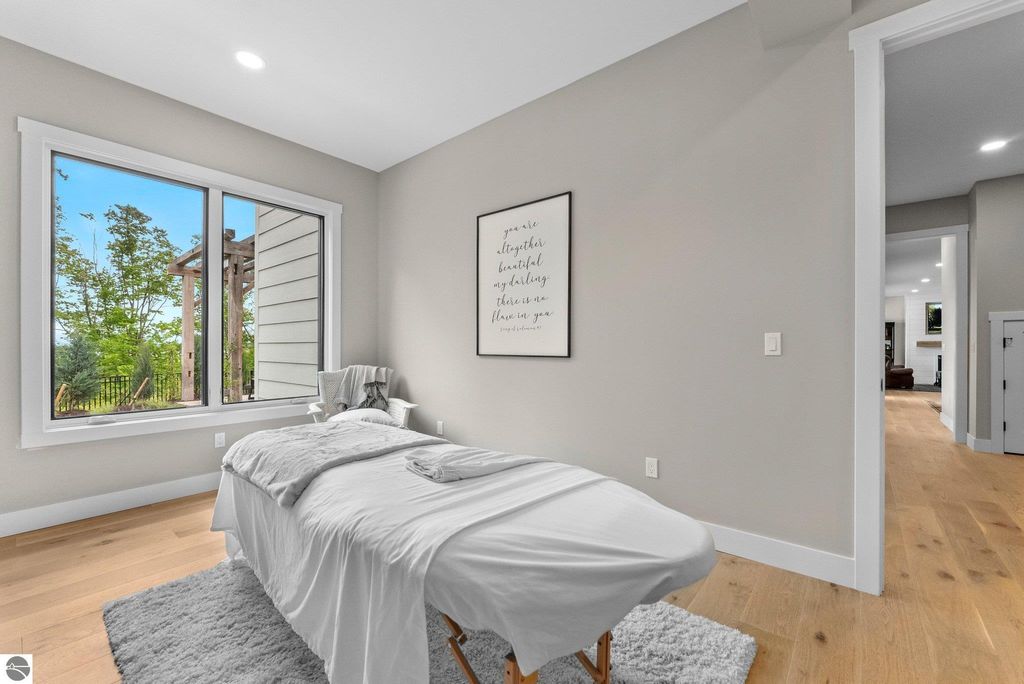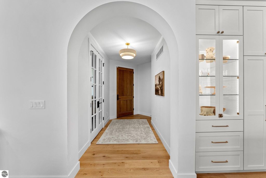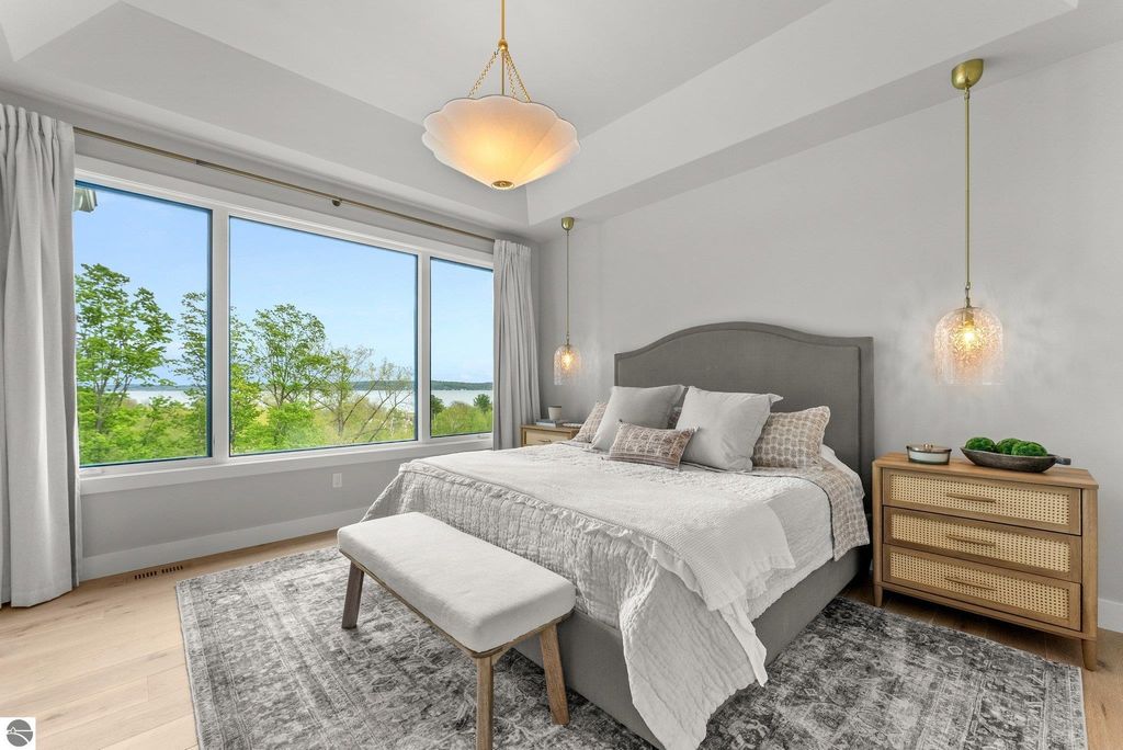 Welcome to this exquisite custom-built home in the heart of Traverse City, where exceptional craftsmanship meets breathtaking beauty. Spanning over 4700 square feet, this 5-bedroom, 4-bathroom home is a masterpiece of incredible design and detail. Every area that could be unique and custom has been touched with this custom build. From the moment you enter, you will be captivated by the attention to detail with arched entryways and hallways, rich solid wood floors, and thoughtfully designed living spaces. The sitting room off of the front foyer with a magical fireplace and sitting area are sure to be a favorite for a new family. Enjoy the ease of elegance with 2 full kitchens-one on the main level and another one on the lower level-ideal and specifically designed for entertaining or multigenerational living space. The custom cabinetry, coffee bar, and butlers pantry provide both style and function. High ceilings and designer plumbing fixtures elevate the home's luxurious feel, while three fireplaces add to the warmth and charm. Step outside to take in the sweeping views of West Bay-from the Wednesday night sailboat races to the air shows and fireworks, every season offers a spectacular show. Relax on the covered deck, gather around the fire-pit or the lower level patio and simply enjoy the serene location. The path to the TART trail is steps away and makes getting to the water easy from this home. This is truly a rare find-beautiful, functional, and crafted with meticulous attention to detail. Experience the magic of Northern Michigan living in a home that's nothing short of extraordinary.