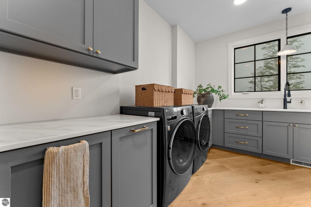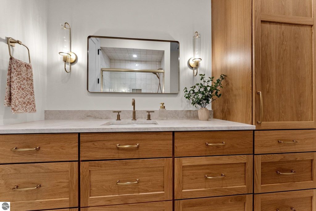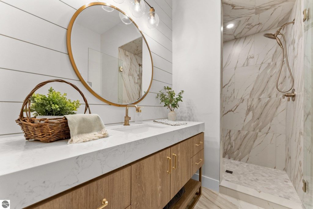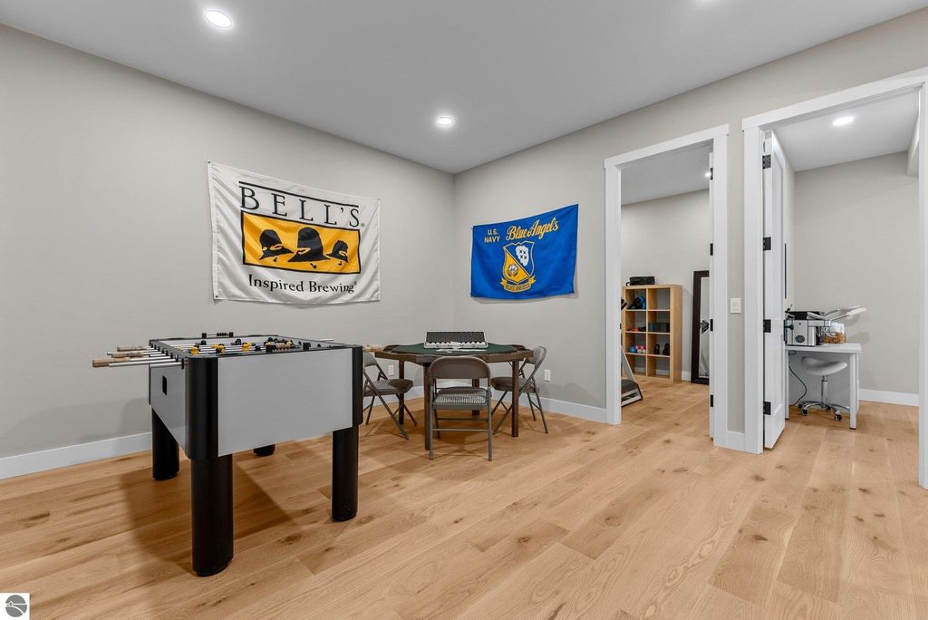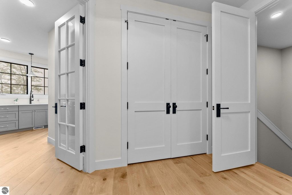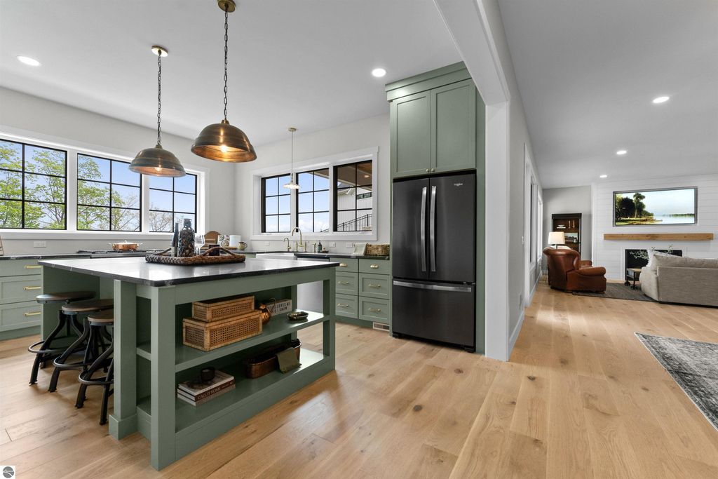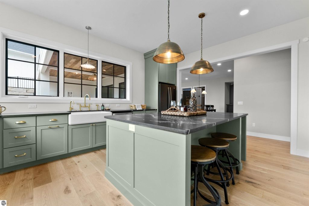 Welcome to this exquisite custom-built home in the heart of Traverse City, where exceptional craftsmanship meets breathtaking beauty. Spanning over 4700 square feet, this 5-bedroom, 4-bathroom home is a masterpiece of incredible design and detail. Every area that could be unique and custom has been touched with this custom build. From the moment you enter, you will be captivated by the attention to detail with arched entryways and hallways, rich solid wood floors, and thoughtfully designed living spaces. The sitting room off of the front foyer with a magical fireplace and sitting area are sure to be a favorite for a new family. Enjoy the ease of elegance with 2 full kitchens-one on the main level and another one on the lower level-ideal and specifically designed for entertaining or multigenerational living space. The custom cabinetry, coffee bar, and butlers pantry provide both style and function. High ceilings and designer plumbing fixtures elevate the home's luxurious feel, while three fireplaces add to the warmth and charm. Step outside to take in the sweeping views of West Bay-from the Wednesday night sailboat races to the air shows and fireworks, every season offers a spectacular show. Relax on the covered deck, gather around the fire-pit or the lower level patio and simply enjoy the serene location. The path to the TART trail is steps away and makes getting to the water easy from this home. This is truly a rare find-beautiful, functional, and crafted with meticulous attention to detail. Experience the magic of Northern Michigan living in a home that's nothing short of extraordinary.