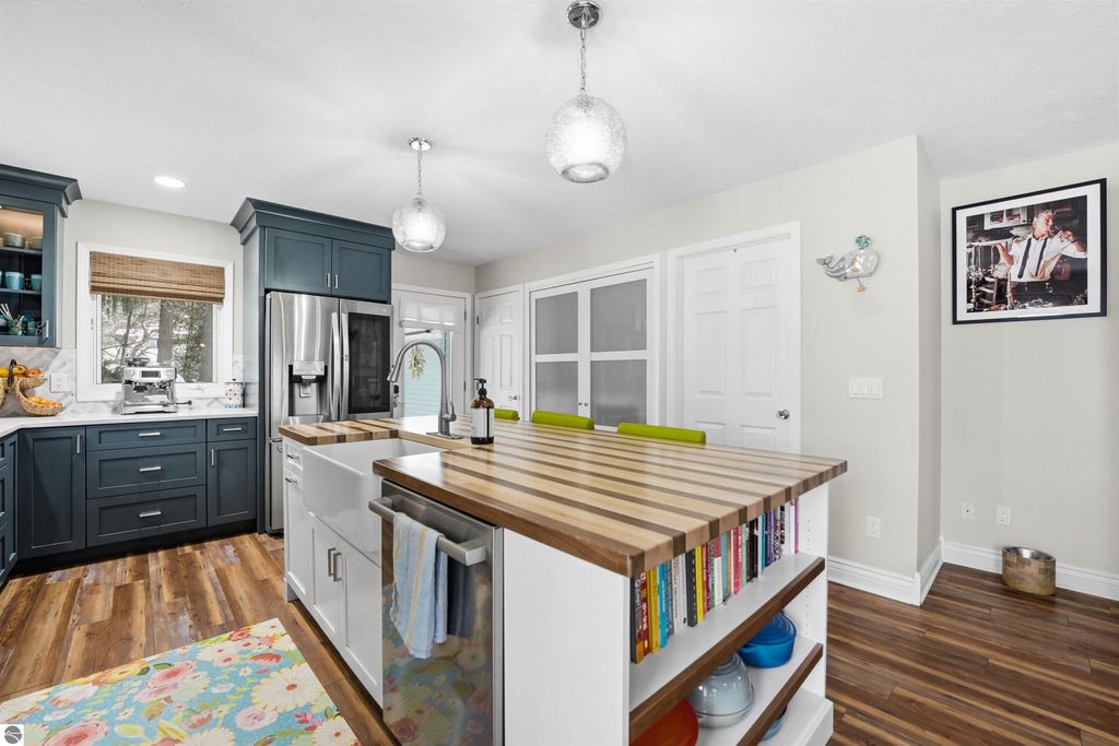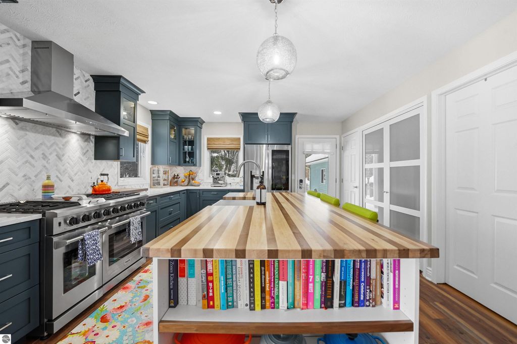 Live in nature, in history, and in the center of it all in one of Traverse City's original neighborhoods - the beloved Slabtown district. Just moments from award-winning restaurants, boutique shops, fresh water beaches, and recreational trail systems, this address places you in one of the most sought-after pockets of a city consistently recognized among the top places to live in the United States. This 3-bedroom, 3-bathroom ranch embraces main-level living with a layout that feels both open and intimate and is perfectly complemented by a fully finished lower level that offers additional living space ideal for guests, recreation, or a private retreat. At the center of the home, a fully renovated gourmet chef's kitchen sets the tone, featuring a 48" Thor gas range and a striking butcher block island made of walnut, maple and oak...designed for both everyday cooking and elevated hosting. Enjoy morning coffee, entertaining or a yoga session outside on the expansive, multi-tiered deck where the backdrop is the gentle movement and sounds of Kids Creek. Mature trees line the property creating privacy and charm that feels worlds away "” yet you remain just minutes from the energy of downtown. Life feels easier here thanks to the numerous updates including brand new 40-year roof, fresh paint throughout the home as well as the entire outside. Built in 1994, this young downtown home has had many other updates in the last 2 years including, mechanicals, appliances, flooring and more. Immaculate Conception and Willow Hill Elementary schools are within a few blocks as well as Munson Hospital, Hickory Hills Ski Hill and West Grand Traverse Bay. Here, you're not just buying a home "” you're stepping into the rhythm of the Traverse City lifestyle.