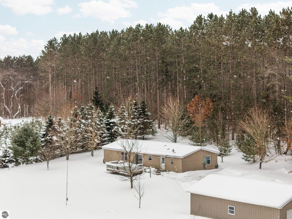 Discover space, privacy, and convenience with this 4-bedroom, 2-bath home offering 1,647 sq ft of comfortable living on 2.5 acres in desirable Kingsley, Grand Traverse County. The large primary bedroom features private access to a full bath, creating a relaxing retreat at the end of the day. Step outside to enjoy the expansive deck overlooking a mix of open and wooded land--perfect for entertaining, gardening, recreation, or future customization. The property provides both usable yard space and natural privacy. A standout feature is the 24'x40' detached garage with cement floor, electric, powered overhead door, and a second drive-through rear overhead door, ideal for storage, hobbies, or a workshop setup. Located in a beautiful rural setting while still just 20 minutes from Traverse City, this home offers the best of Northern Michigan living with room to grow and enjoy the outdoors.