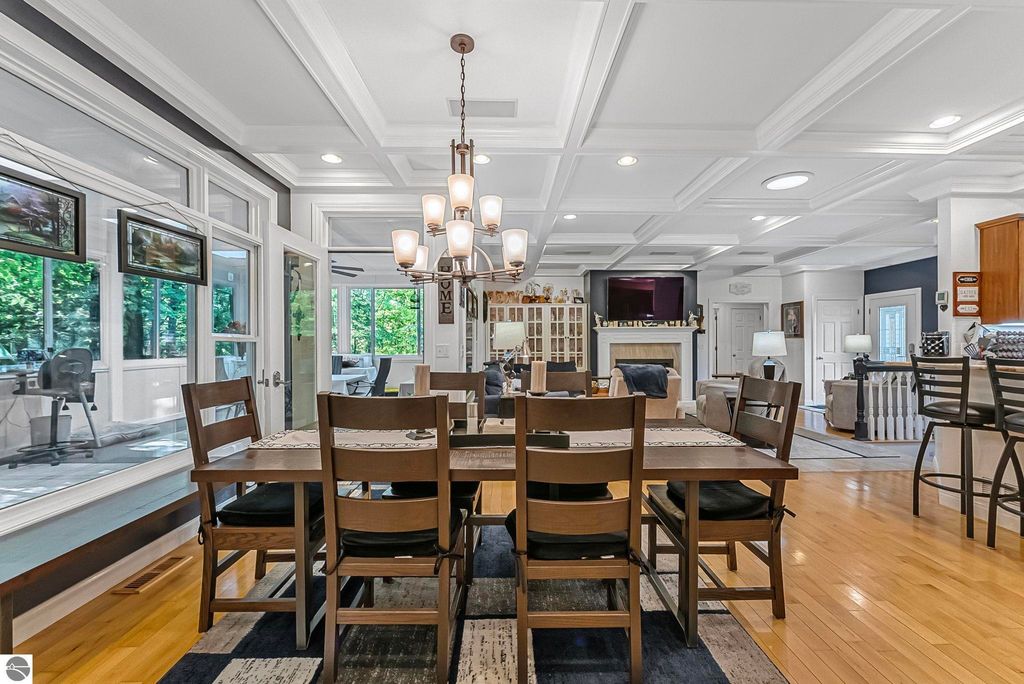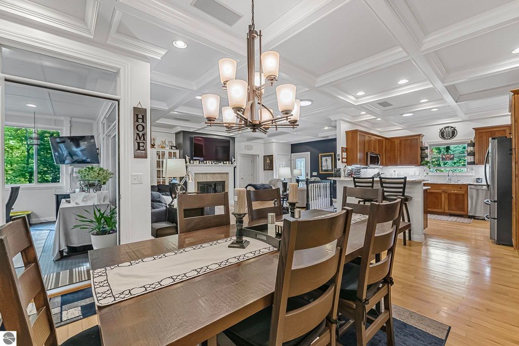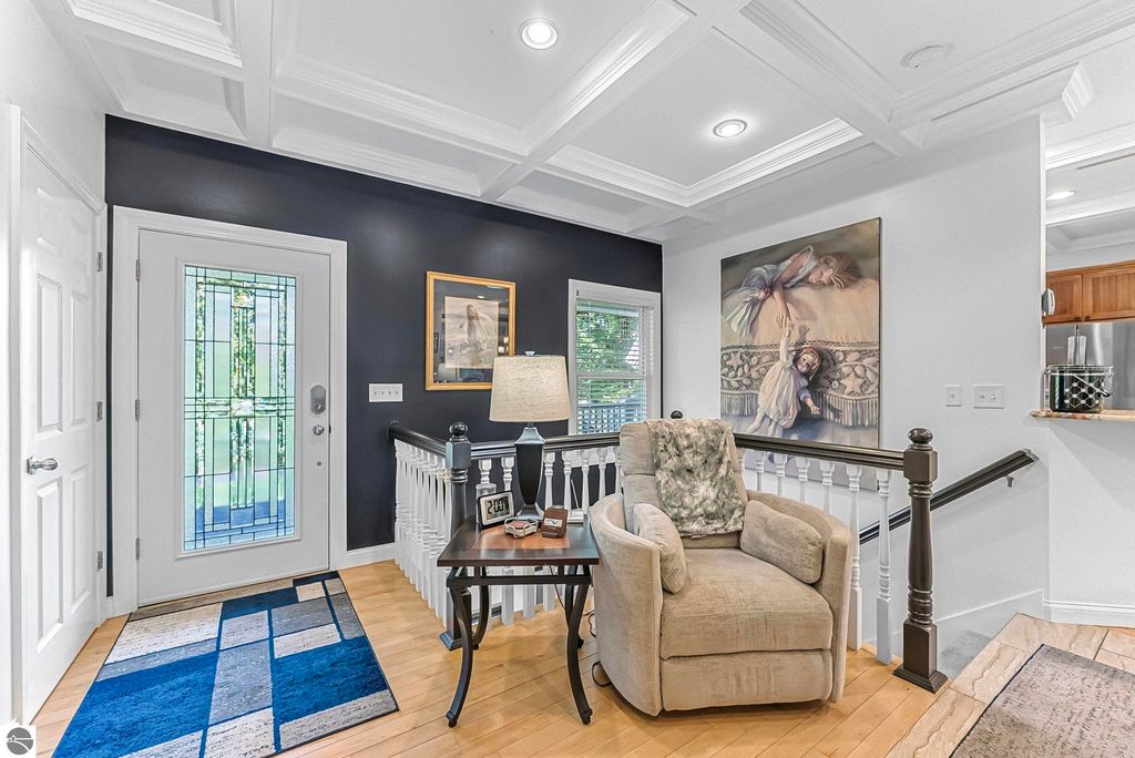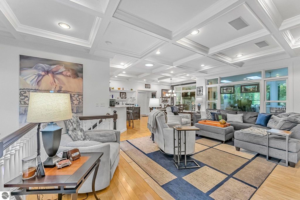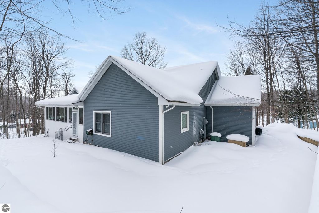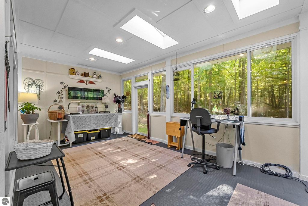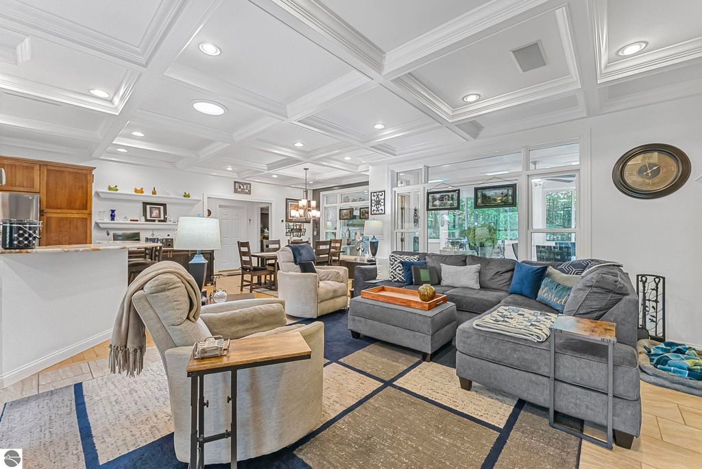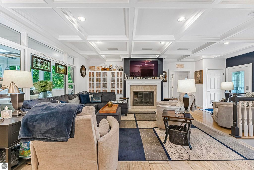 VA assumable mortgage - only assumable for a qualified VA eligible buyer in order to restore seller's VA entitlement. Step into elegance with this 4 bedroom, 3 bath home in Petoskey, set on 2.5 acres of natural beauty and surrounded by a private nature preserve on three sides. The open floor plan flows effortlessly beneath stunning coffered ceilings, while the gourmet kitchen boasts granite countertops and main-floor laundry for convenience. Retreat to the luxurious primary suite featuring a walk-in closet and a spa-like double shower. A bright 3 season room filled with natural light is the perfect spot to relax and take in the views. The finished walkout basement expands your living space, while the 3 car garage with epoxy floors and built-in storage keeps everything organized. A 12x24 shed offers even more space for tools, toys, or hobbies. With countless updates and serene surroundings, this property blends comfort, style, and nature into one perfect package.