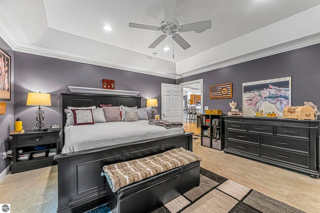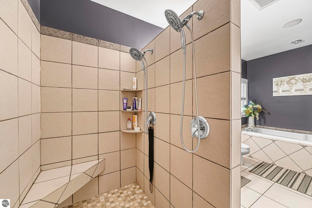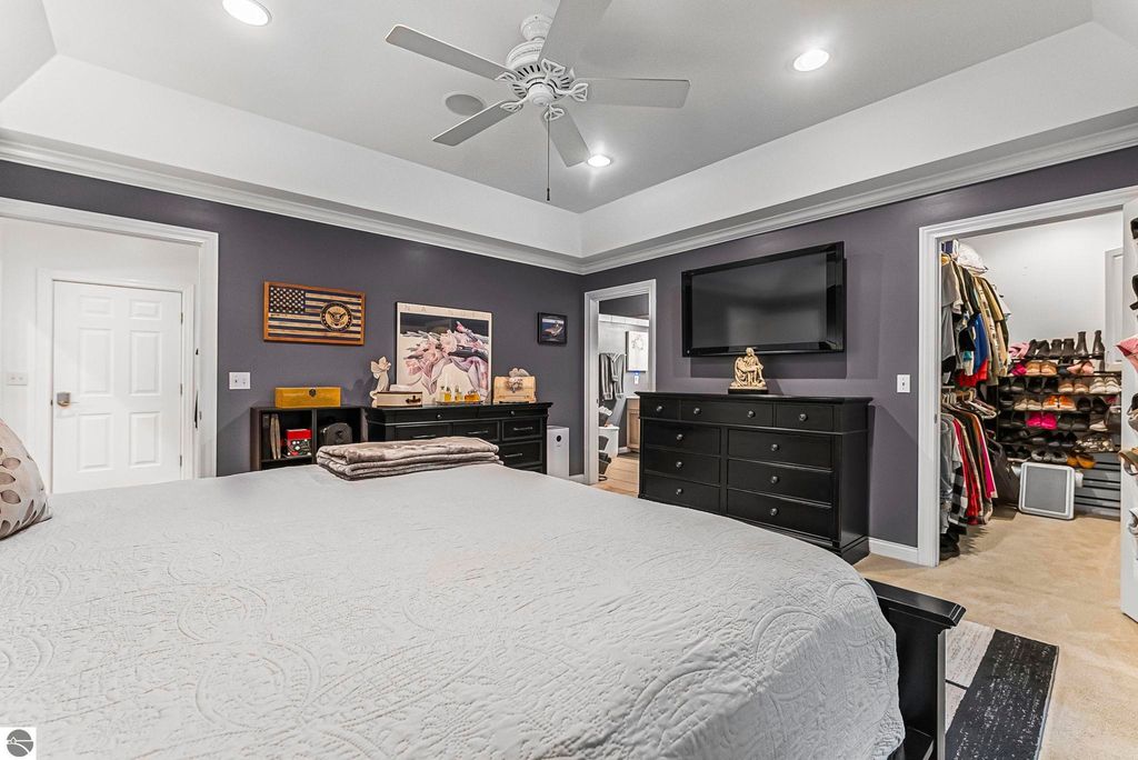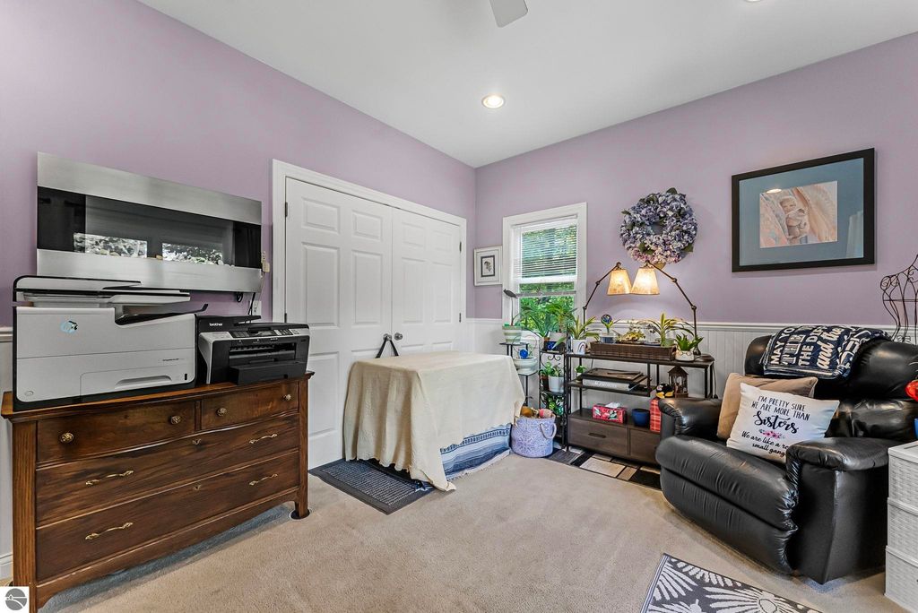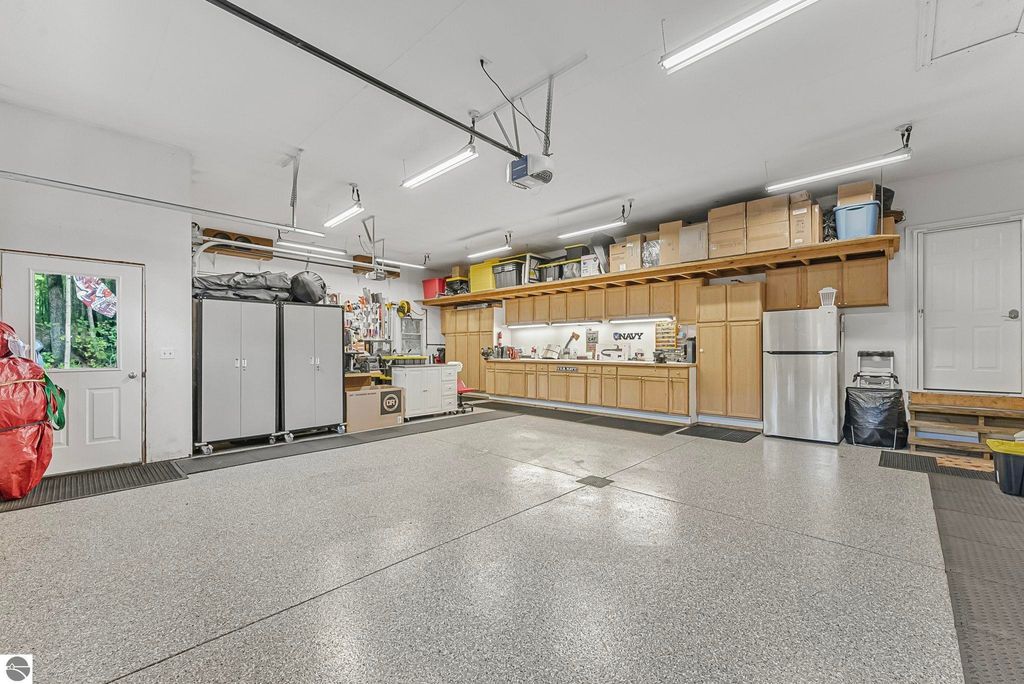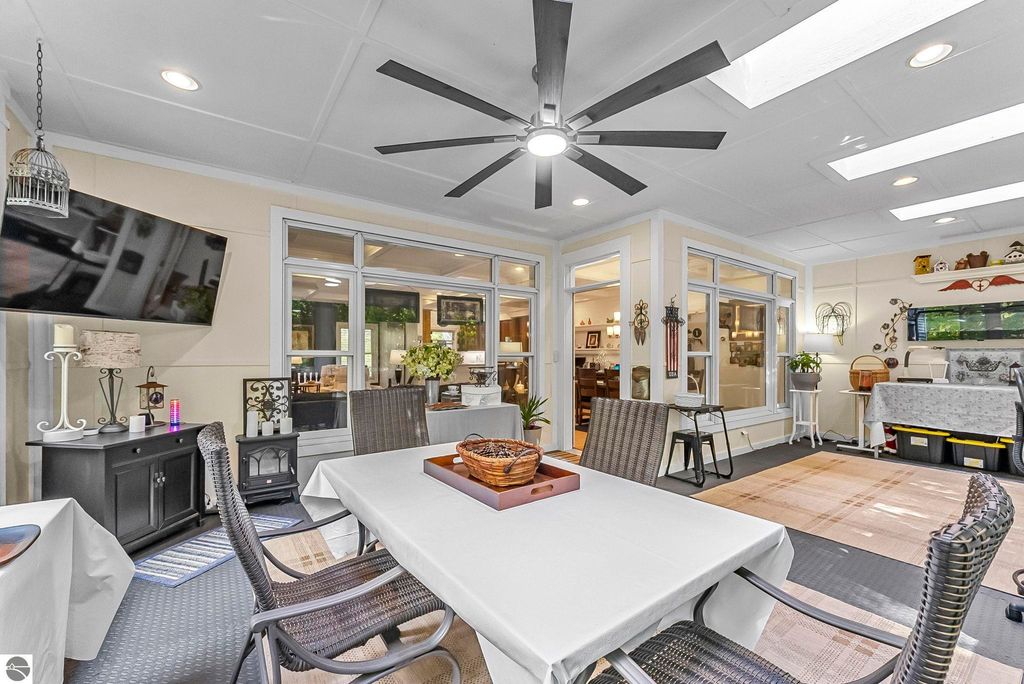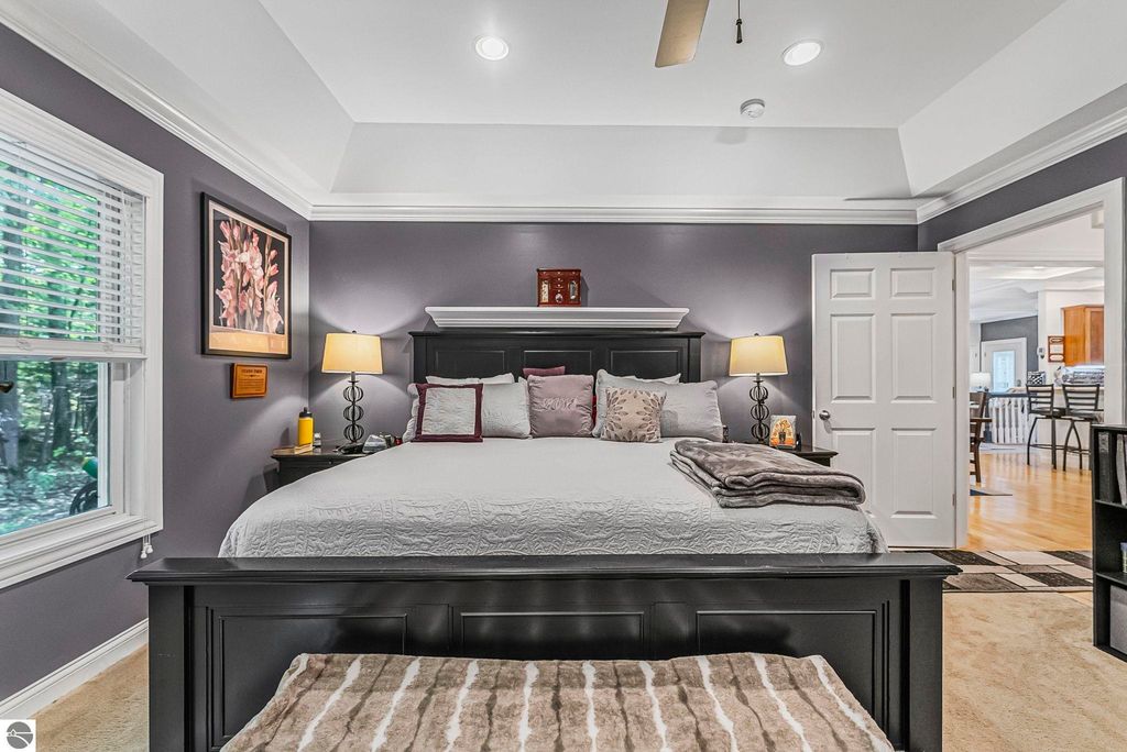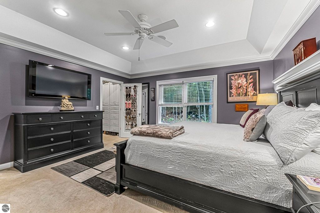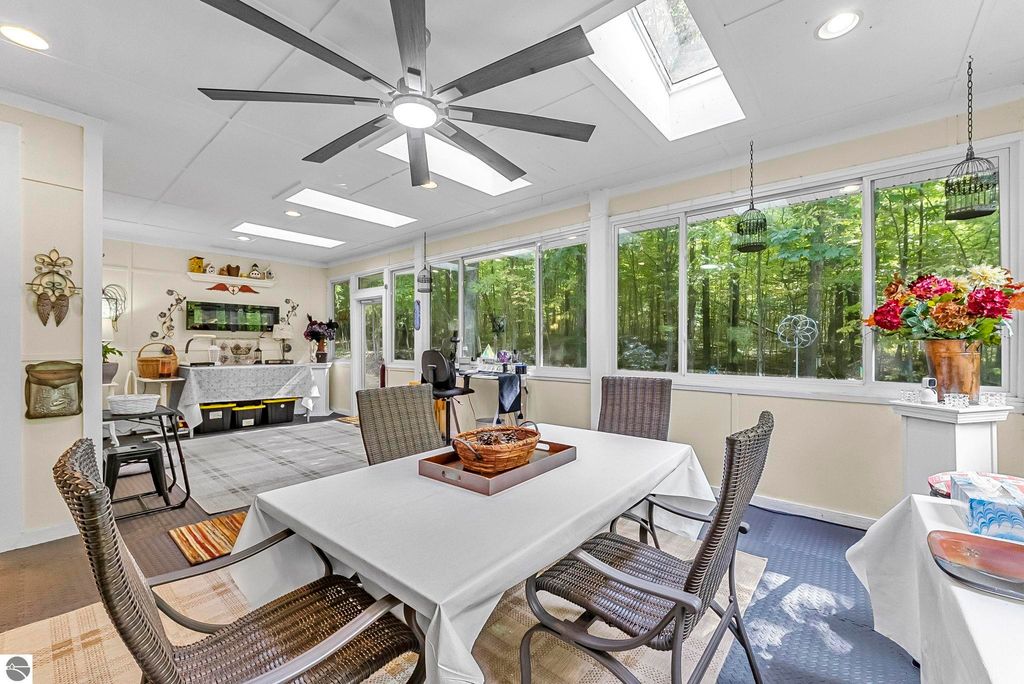 VA assumable mortgage - only assumable for a qualified VA eligible buyer in order to restore seller's VA entitlement. Step into elegance with this 4 bedroom, 3 bath home in Petoskey, set on 2.5 acres of natural beauty and surrounded by a private nature preserve on three sides. The open floor plan flows effortlessly beneath stunning coffered ceilings, while the gourmet kitchen boasts granite countertops and main-floor laundry for convenience. Retreat to the luxurious primary suite featuring a walk-in closet and a spa-like double shower. A bright 3 season room filled with natural light is the perfect spot to relax and take in the views. The finished walkout basement expands your living space, while the 3 car garage with epoxy floors and built-in storage keeps everything organized. A 12x24 shed offers even more space for tools, toys, or hobbies. With countless updates and serene surroundings, this property blends comfort, style, and nature into one perfect package.