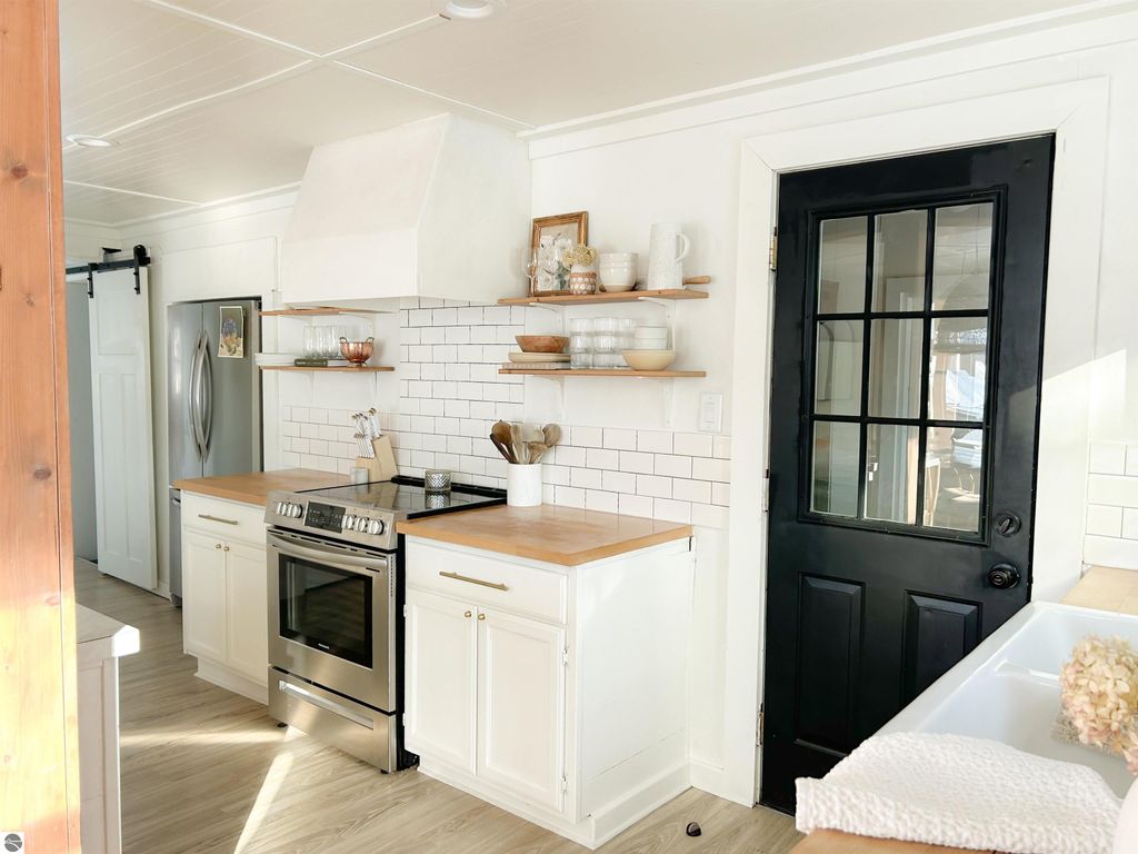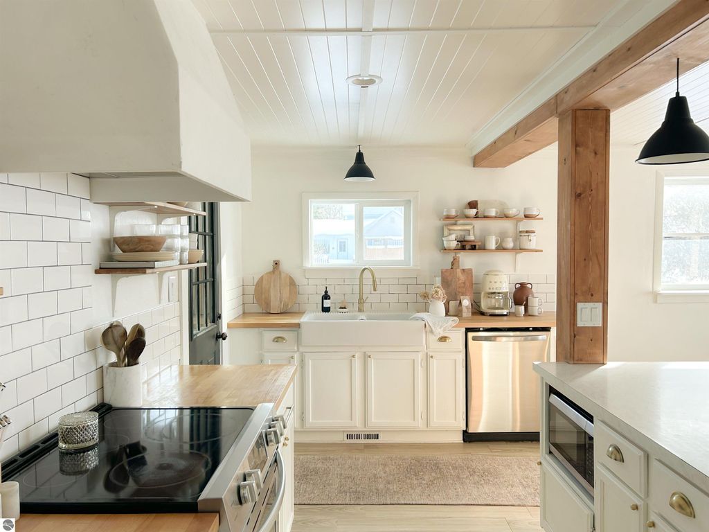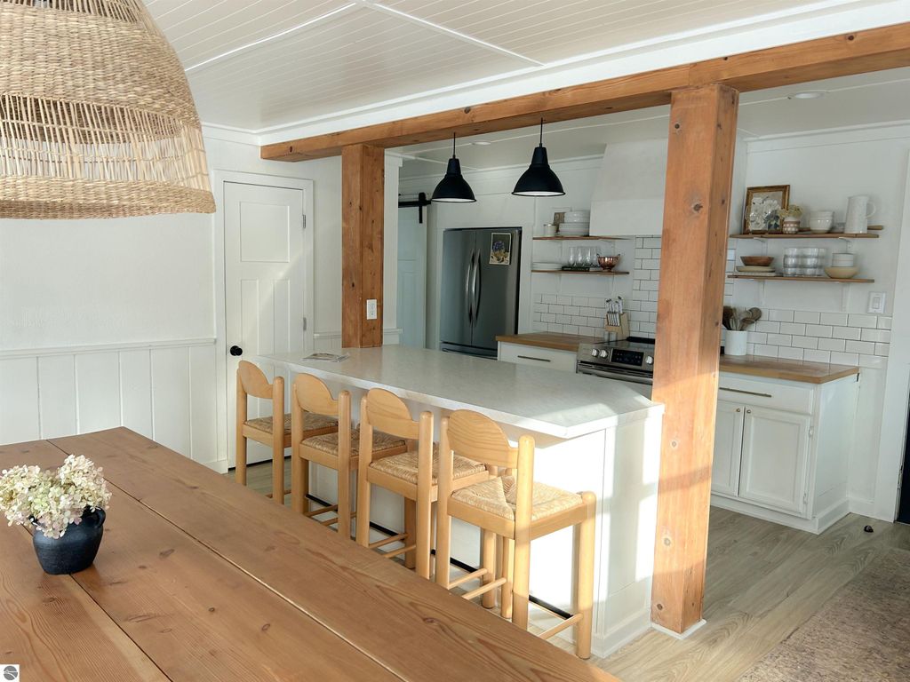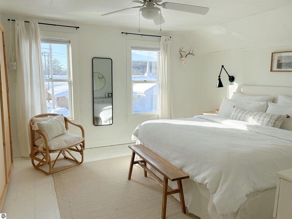 Welcome to your modern cottage inspired by the California rustic coast blended with Scandinavian design, located just one block off of the iconic Northern MI town of Bellaire, home of Shorts Brewery, Shanty Creek Resort, Torch Lake, Lake Bellaire, many golf courses, and Glacier Hills. The recent updates were done tastefully, with a fresh, modern open feel. The roof and vinyl siding are new. The main part of the home is shingled, and the porch is metal giving a unique blend of styles. The 3 spacious bedrooms, bright and spacious kitchen has an amazing island that doubles as a bar area. There is plenty of parking space for a small trailer, boat, and a few vehicles , you are only 20 min from Lake MI beaches & wineries! The home has convenient use of space with the laundry, a storage closet and powder bath right off the kitchen. In the Living room is a built in quaint window bench with storage cabinets and a sweet, cozy faux fire place to finish this space beautifully. This is the perfect home to entertain. The back patio door off the living room to the backyard extends the home to the outside for entertaining or relaxing. Looking for a full time home or an investment, look no further. Welcome to your new Scandinavian Cottage! This home has STR history. All dimensions and information are deemed accurate, but should be verified