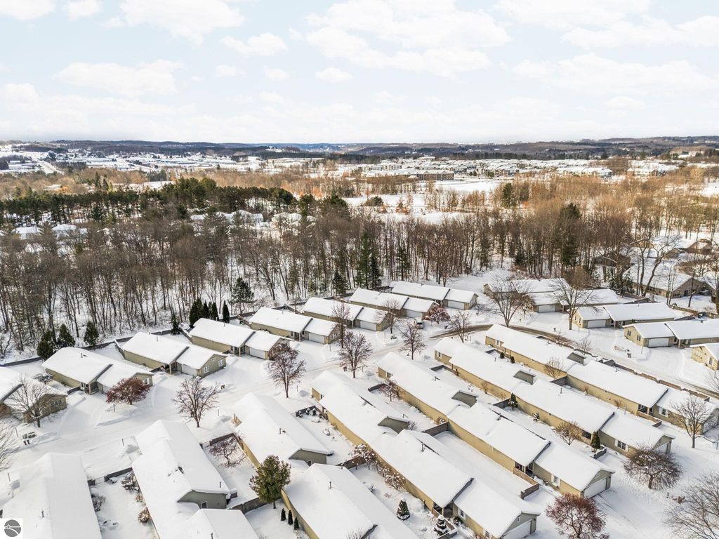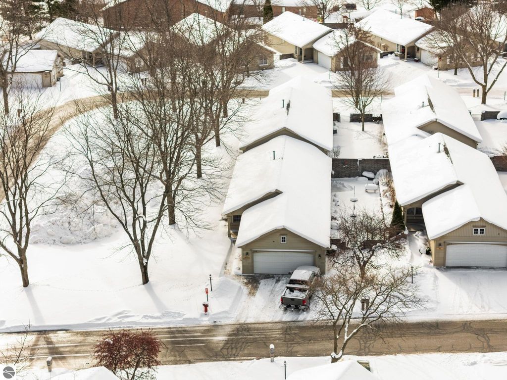 Welcome to easy, main-floor living at 1049 Hemingway Lane in Traverse City. This thoughtfully designed condo offers 2 bedrooms and 2 bathrooms, plus the flexibility of a potential third bedroom (currently used as a home office). The private primary suite features its own bathroom and generous closet space, creating a comfortable and functional retreat. Natural light fills the home, enhancing the open, inviting feel throughout. Step outside to a private, fenced-in, pet friendly courtyard, perfect for entertaining, relaxing, or enjoying a quiet morning coffee. A two-car garage with no-step entry provides added convenience and accessibility. Ideally located directly across the street from the community clubhouse, residents enjoy access to an indoor pool, meeting room, and full kitchen - an ideal setting for intimate gatherings and social events. Low-maintenance living in a well-appointed community in the heart of Traverse City.