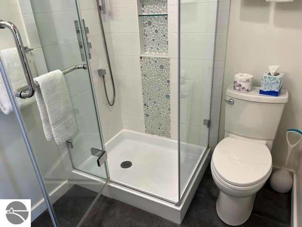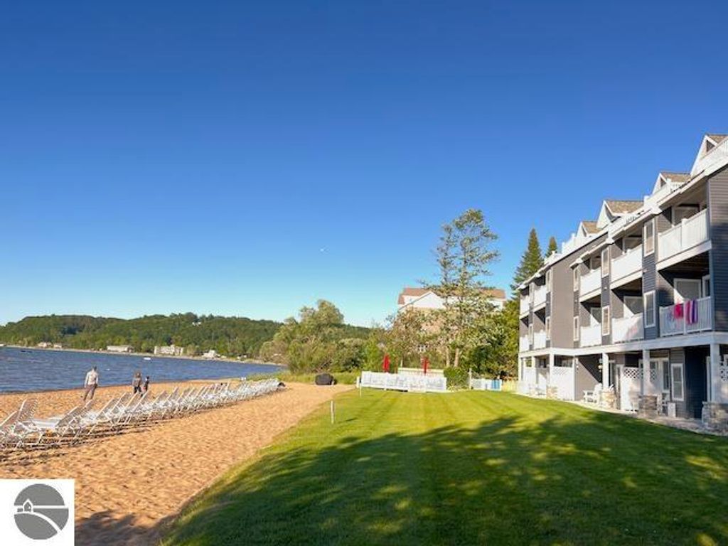 Begin your Up North adventures from this beautiful waterfront condo facing Grand Traverse Bay! This is a unique turn-key opportunity with all remodeling completed to the highest standards. Full kitchen with new cabinets, granite countertops and appliances. Bathroom boasts a rain shower and all new fixtures. Luxury vinyl flooring throughout, fireplace for chilly nights, and a balcony for relaxing with endless Bay views. The newly renovated building has an outdoor heated pool and a Bayfront sundeck on 200' of sugar sand beach. Sorry no pets or self-rentals such as Airbnb. 2025 Gross Income $54,000. Minutes to downtown Traverse City. Across the street from the trail system. On-site rental management company, elevator, laundry. HOA $460/mo. Make this your amazing second home! For more information visit Northshoreinntc.com