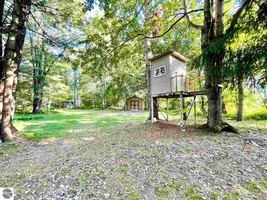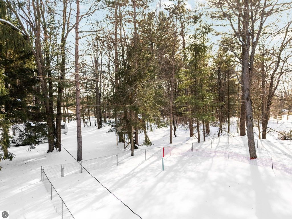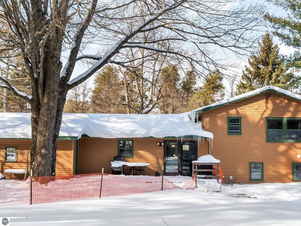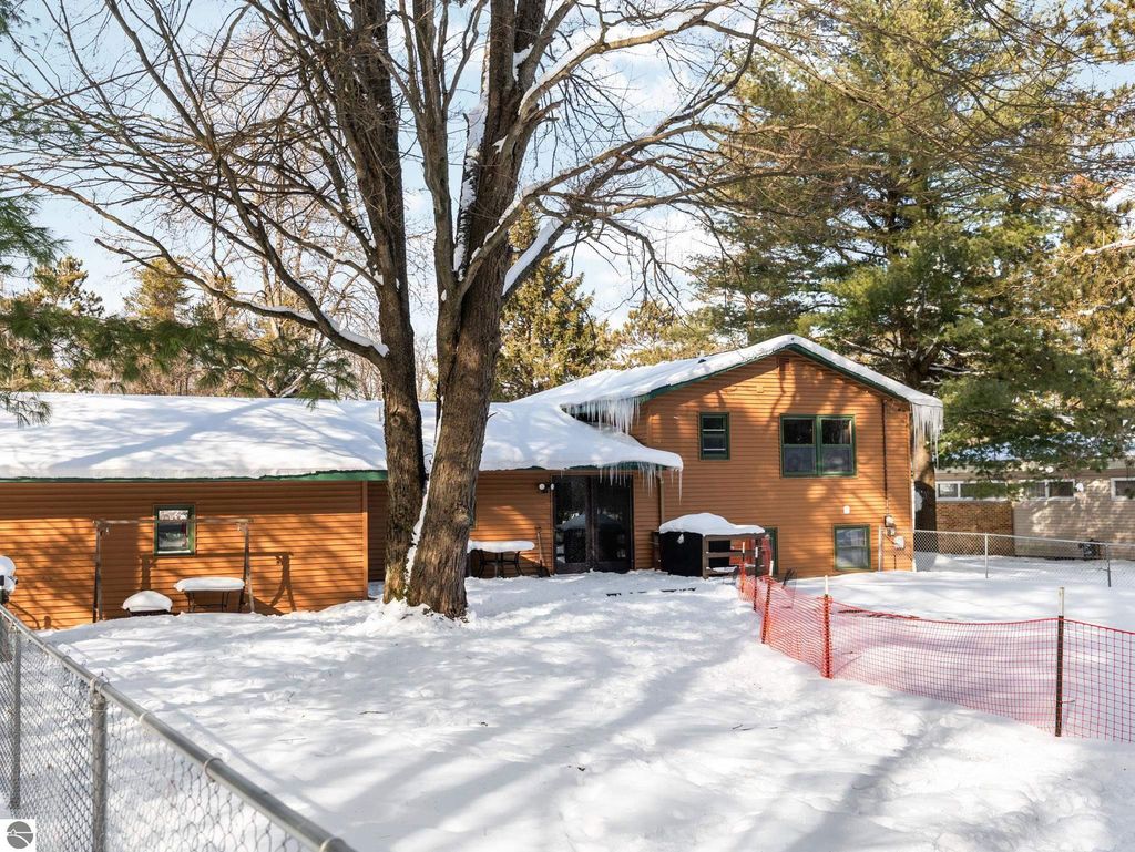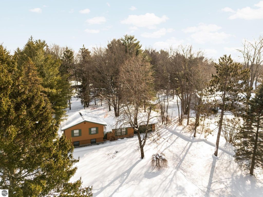 Nicely updated tri-level home in desirable Cadillac West, offering three bedrooms and two bathrooms on an oversized, just-under-an-acre parcel with an attached two-car garage and ample space for additional vehicles, toys, or recreational storage. Conveniently located near Caberfae Peaks, Lakewood on the Green Golf Course, Lake Cadillac, and Lake Mitchell, this property is ideally positioned to enjoy Northern Michigan recreation year-round. The home features a fenced yard that extends beyond the fence line, with a treehouse, storage shed, wild berry bushes, apple tree, grapevine, and clearly marked rear property boundaries. When trees are in full leaf, the backyard offers a private, peaceful setting, and the property is known for seasonal fireflies and naturally occurring morel mushrooms. A separate driveway entrance off Quarter Rd. provides easy access for RV, boat, or trailer parking. Exterior updates include siding and exterior doors (2020), a new roof (2019), an exterior generator hookup, and a natural gas hookup on the rear deck for a grill. Built with 2x6 walls, the home is well insulated, energy-efficient, and offers low heating costs. Interior features include hardwood and tile flooring, fresh paint throughout, and a large pantry with existing hookups that could be converted to main-floor laundry. The lower level offers a family room with new carpet, along with two non-conforming bedrooms and a second bathroom, added by the current owners. Recent improvements also include a new septic system and drainfield, a refinished rear deck, and main bathroom updates including vanity top, flooring, mirror, and lighting. Landscaping features beautiful flowering plants that enhance curb appeal. A solid, efficient home with space, privacy, and a great location. Well-insulated construction helps keep utility costs low year-round. Spacious rear deck offers great outdoor living space.