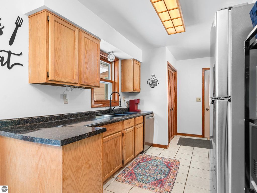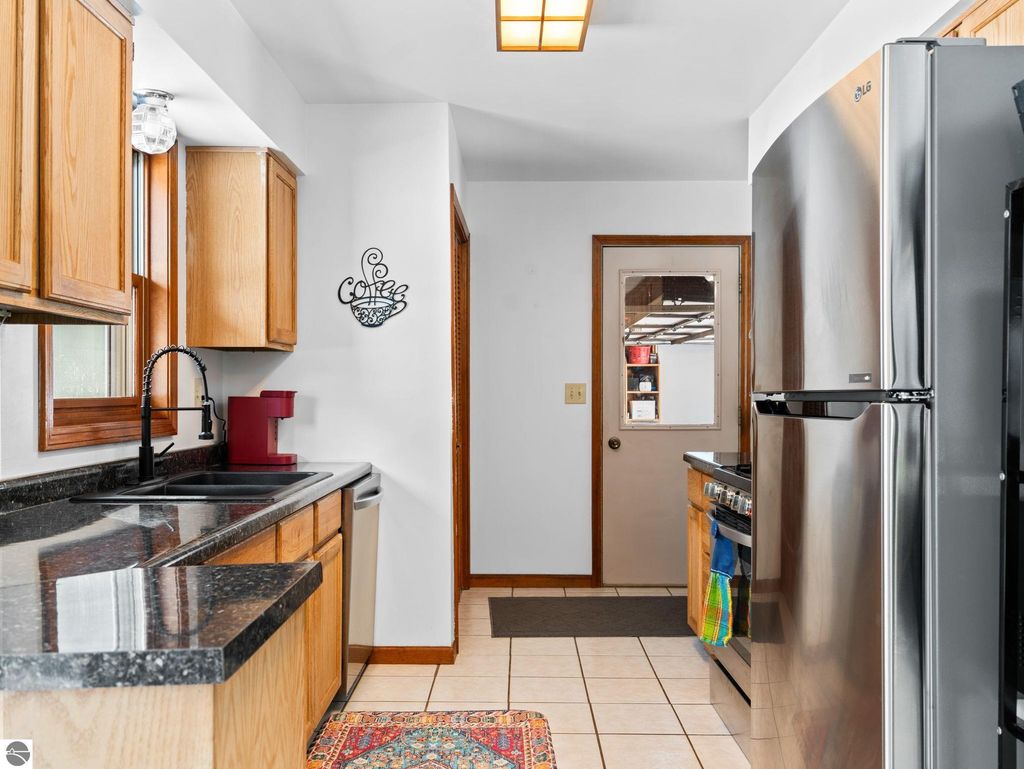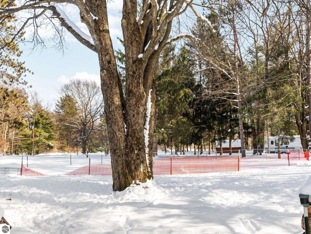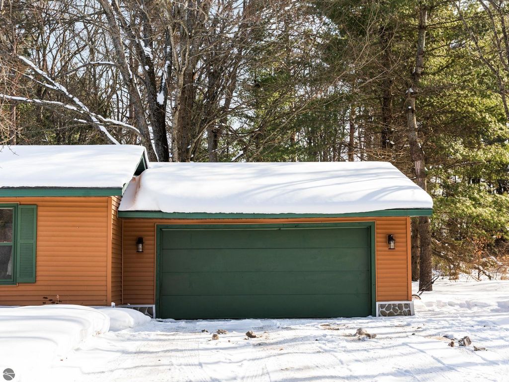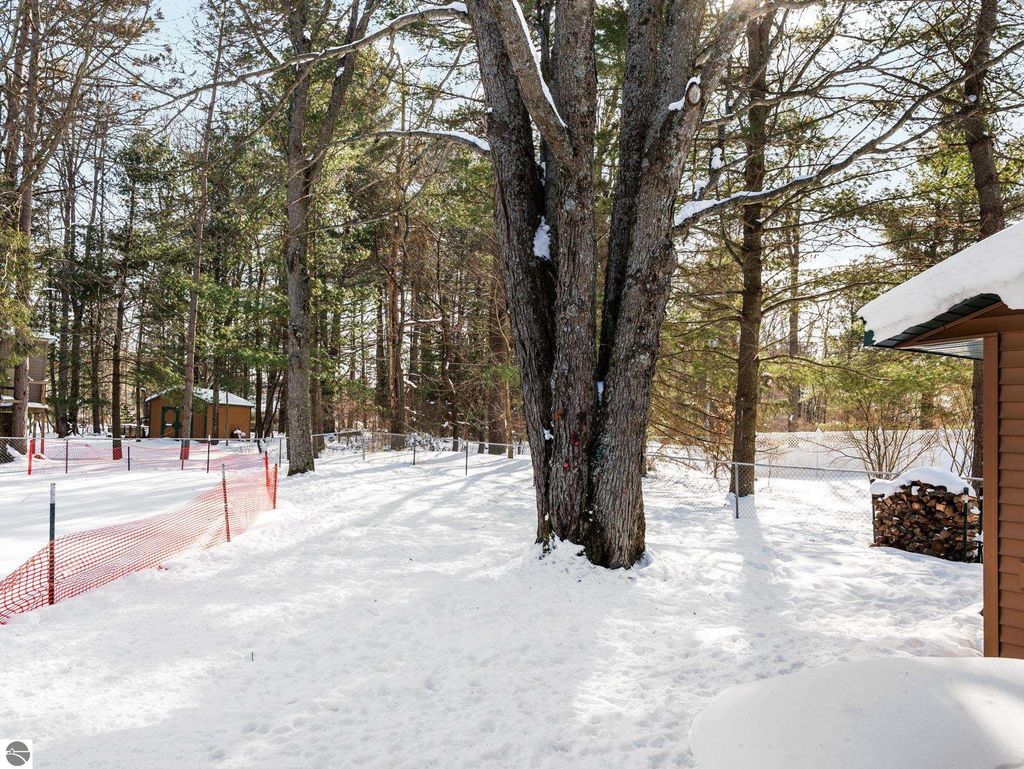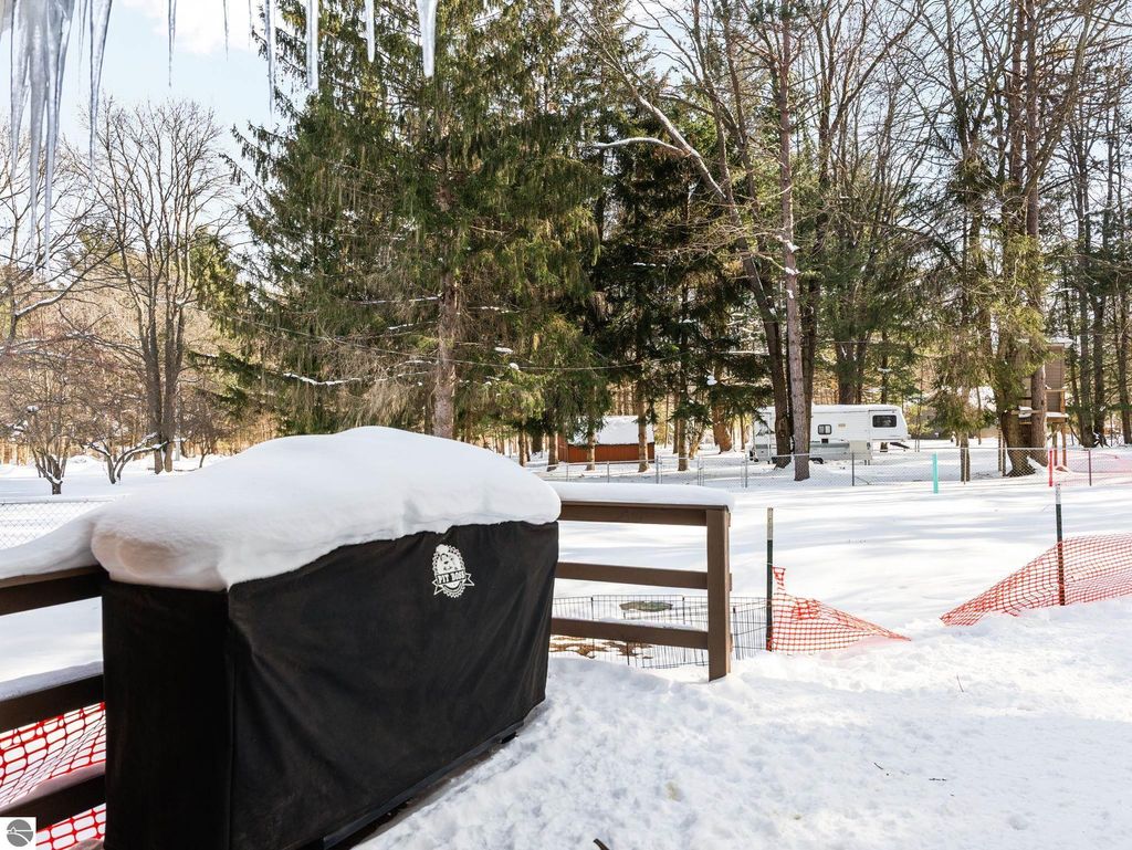 Nicely updated tri-level home in desirable Cadillac West, offering three bedrooms and two bathrooms on an oversized, just-under-an-acre parcel with an attached two-car garage and ample space for additional vehicles, toys, or recreational storage. Conveniently located near Caberfae Peaks, Lakewood on the Green Golf Course, Lake Cadillac, and Lake Mitchell, this property is ideally positioned to enjoy Northern Michigan recreation year-round. The home features a fenced yard that extends beyond the fence line, with a treehouse, storage shed, wild berry bushes, apple tree, grapevine, and clearly marked rear property boundaries. When trees are in full leaf, the backyard offers a private, peaceful setting, and the property is known for seasonal fireflies and naturally occurring morel mushrooms. A separate driveway entrance off Quarter Rd. provides easy access for RV, boat, or trailer parking. Exterior updates include siding and exterior doors (2020), a new roof (2019), an exterior generator hookup, and a natural gas hookup on the rear deck for a grill. Built with 2x6 walls, the home is well insulated, energy-efficient, and offers low heating costs. Interior features include hardwood and tile flooring, fresh paint throughout, and a large pantry with existing hookups that could be converted to main-floor laundry. The lower level offers a family room with new carpet, along with two non-conforming bedrooms and a second bathroom, added by the current owners. Recent improvements also include a new septic system and drainfield, a refinished rear deck, and main bathroom updates including vanity top, flooring, mirror, and lighting. Landscaping features beautiful flowering plants that enhance curb appeal. A solid, efficient home with space, privacy, and a great location. Well-insulated construction helps keep utility costs low year-round. Spacious rear deck offers great outdoor living space.