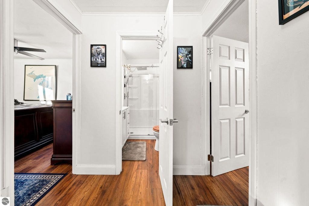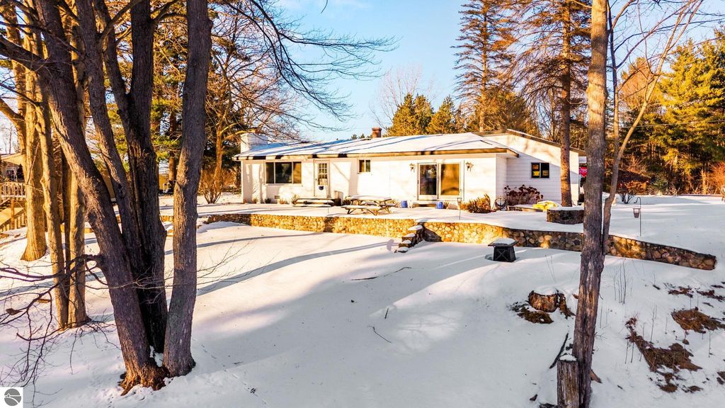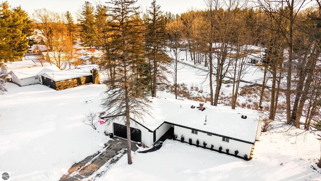 Escape to your own slice of Up North paradise with this beautifully updated ranch on Wixom Lake. Nestled on a rare double lot with 165 feet of shoreline and over half an acre to call your own, this property offers space to breathe, explore, and dream big with plenty of room to expand or add a pole barn. Step inside and feel instantly at home. The fully renovated kitchen shines with crisp white cabinetry, granite countertops, and newer appliances, while updated laminate flooring, crown molding, fresh paint, new windows, and stylish light fixtures create a warm, inviting atmosphere throughout. An updated bathroom, updated electrical and plumbing, tankless hot water heater, Spectrum internet/cable and countless thoughtful upgrades mean you can settle in with peace of mind. The large sliding door frames peaceful lake views and fills the home with natural light the perfect backdrop for morning coffee or cozy evenings inside. The bonus room overlooking the water offers a stunning option for a spacious primary suite retreat. Outside, two fire pits invite you to gather under the stars, swap stories, and soak in the quiet beauty of the shoreline as soon as the water has fully returned. The garage is prepped with a gas line for a future heated workspace, and the boat dock and hoist are included. With fishing, hunting, off-roading, and snowmobiling just minutes away, adventure truly begins at your doorstep. Wixom Lake, an estimated 2,000-acre all-sports lake, is projected to return August 27th (tbd) making this an exciting opportunity to secure your waterfront lifestyle now. Just 15 minutes to Midland, 30 minutes to the casino, and only two hours north of Detroit. Come see the view and imagine the memories waiting to be made.