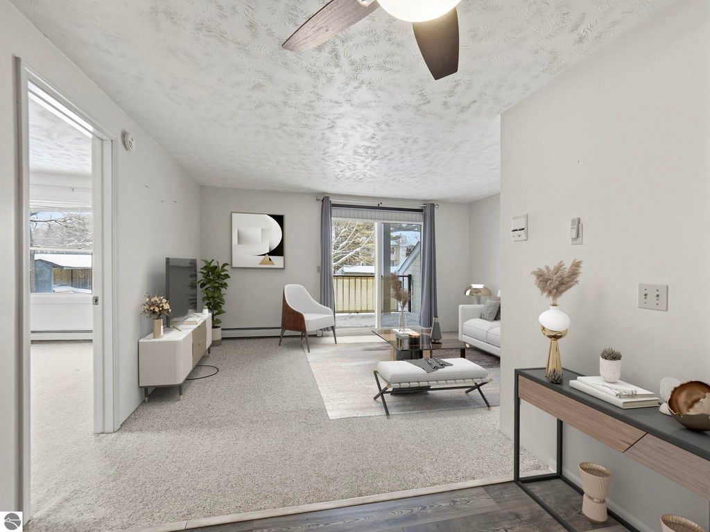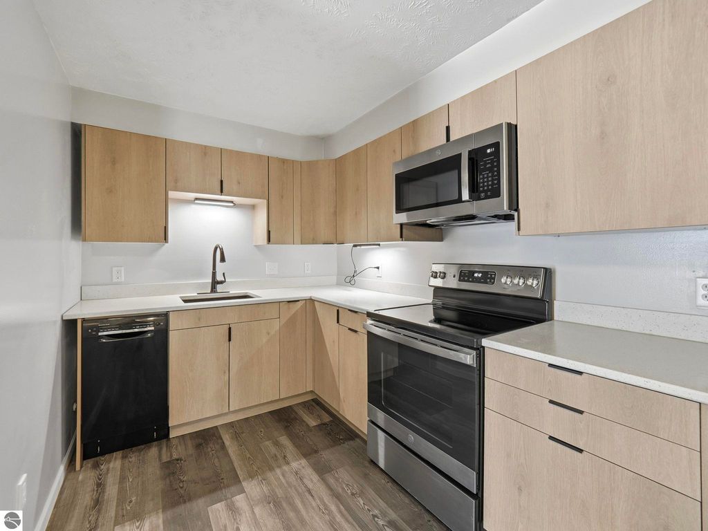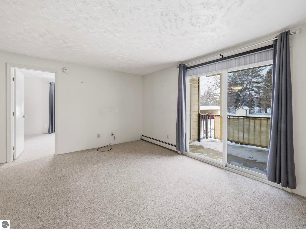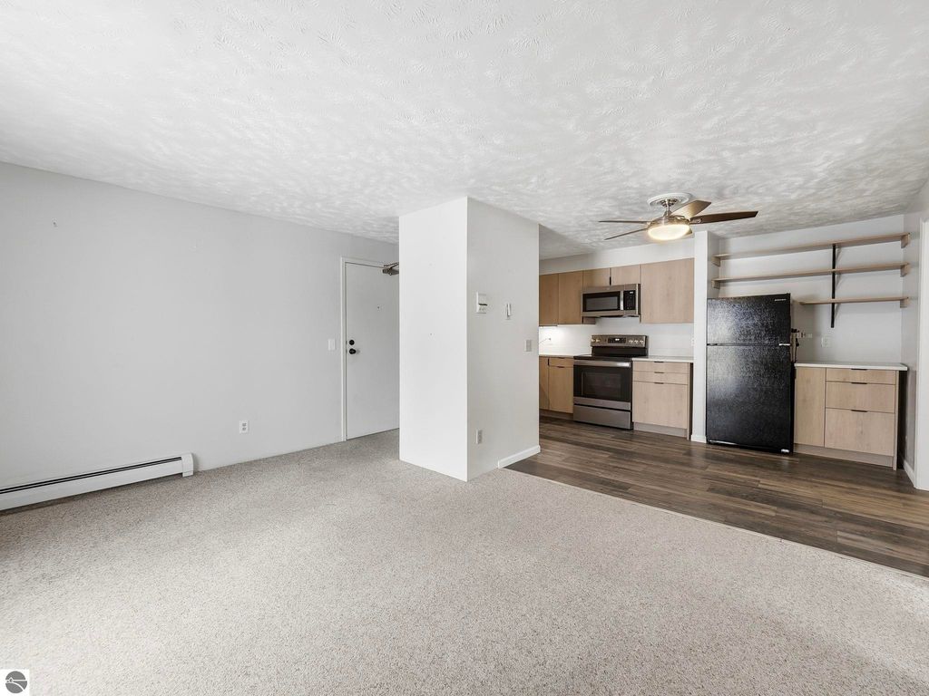 Discover the rare opportunity to own this charming one bedroom, one bath condo in the Mitchell Creek community. The interior features new flooring (2022), a brand new boiler (2025), and a new hot water heater (2024). The kitchen boasts all new appliances in 2023, and the convenience of an in-unit laundry in the bathroom area. This condo offers a covered deck off the main living area, perfect for enjoying the serene surroundings. Nature lovers will appreciate that the complex backs up to Mitchell Creek and offers direct access to the TART trail. Enjoy nearby East Bay park and beaches, and indulge in the many dining options close to downtown Traverse City. This condo combines tranquility and convenience in a desirable location"”don't miss out!