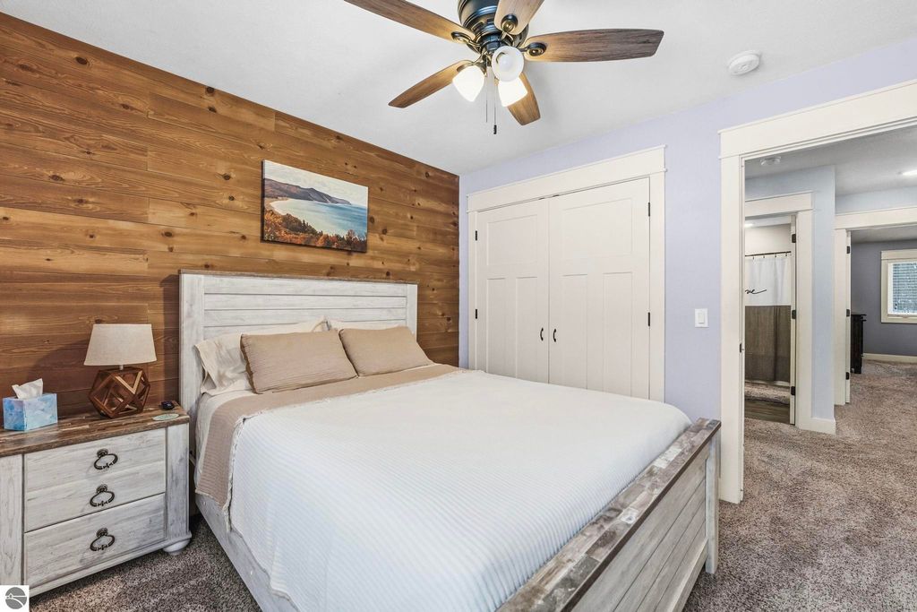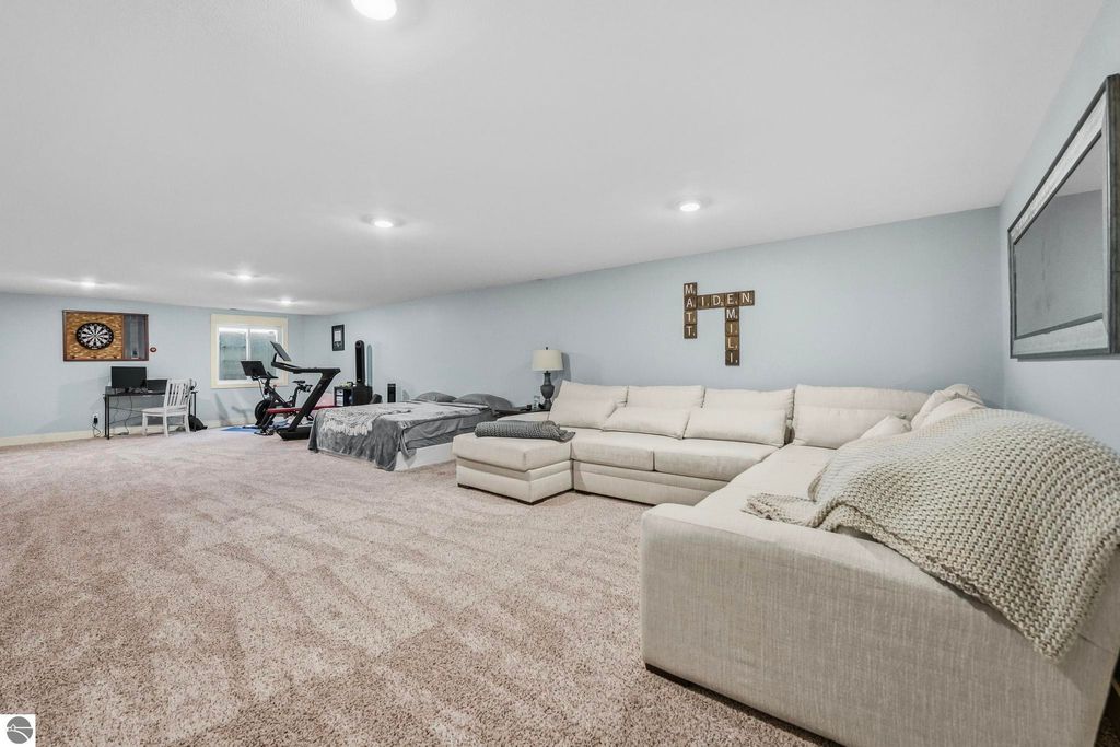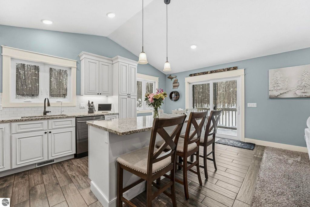 3-bedroom, 2-bath home offering comfort, privacy, and a desirable Northern Michigan location. The open-concept living, dining, and kitchen areas provide a bright and functional layout with ample cabinetry and counter space. The primary suite features a private full bath, while two additional bedrooms and a second full bathroom offer flexibility for guests, family, or a home office. Step outside and enjoy year-round relaxation in the private hot tub, perfectly positioned to take in the peaceful wooded surroundings. The spacious yard provides room for outdoor gatherings, recreation, or simply enjoying the Up North setting. Located just 5 minutes from Lake Ann Brewery and near Interlochen Center for the Arts, area lakes, and recreational trails. A short drive to Traverse City offers convenient access to dining, shopping, beaches, and year-round activities.