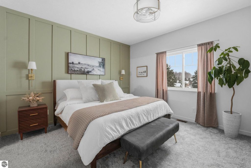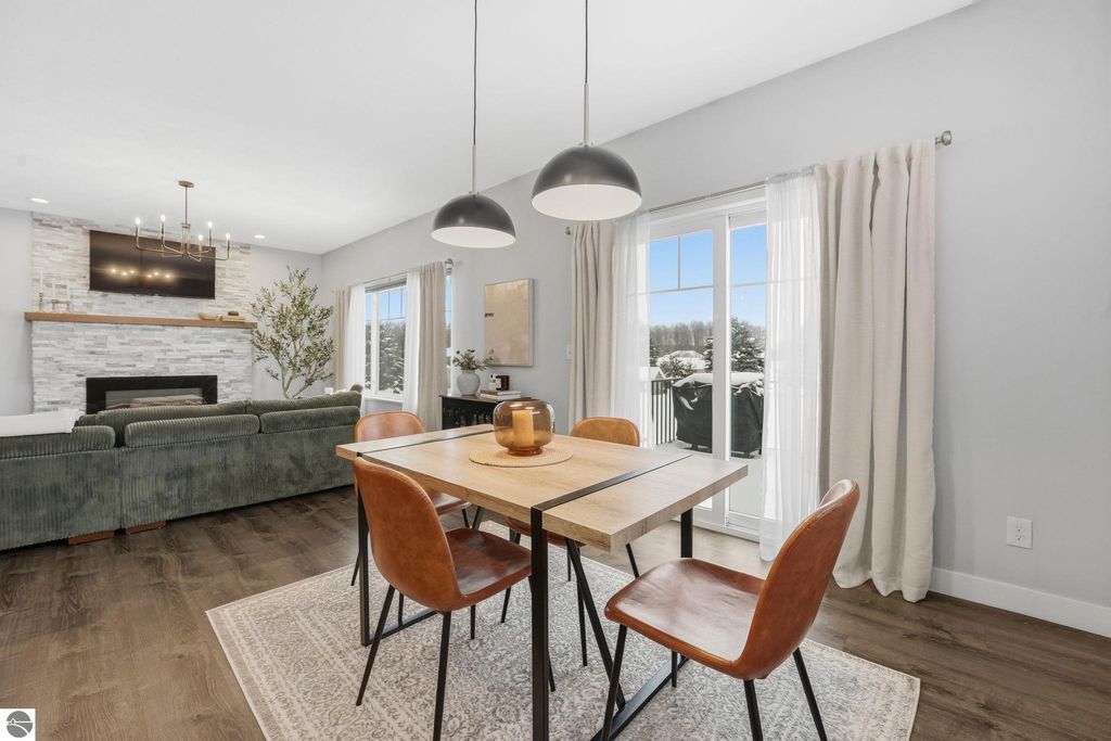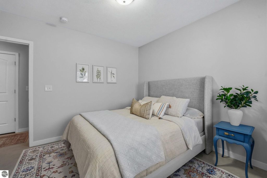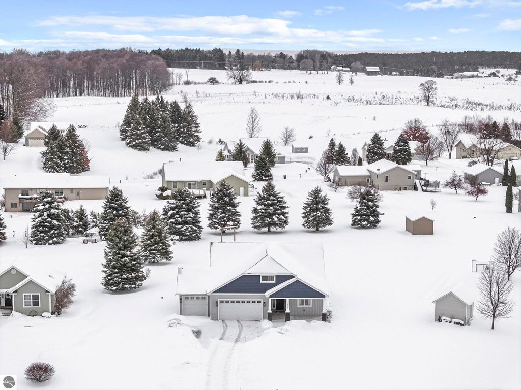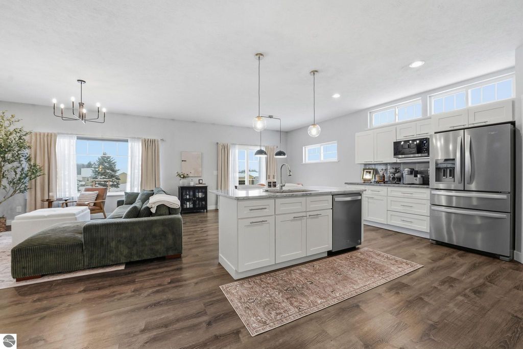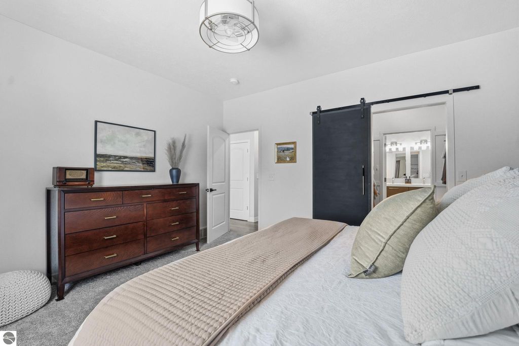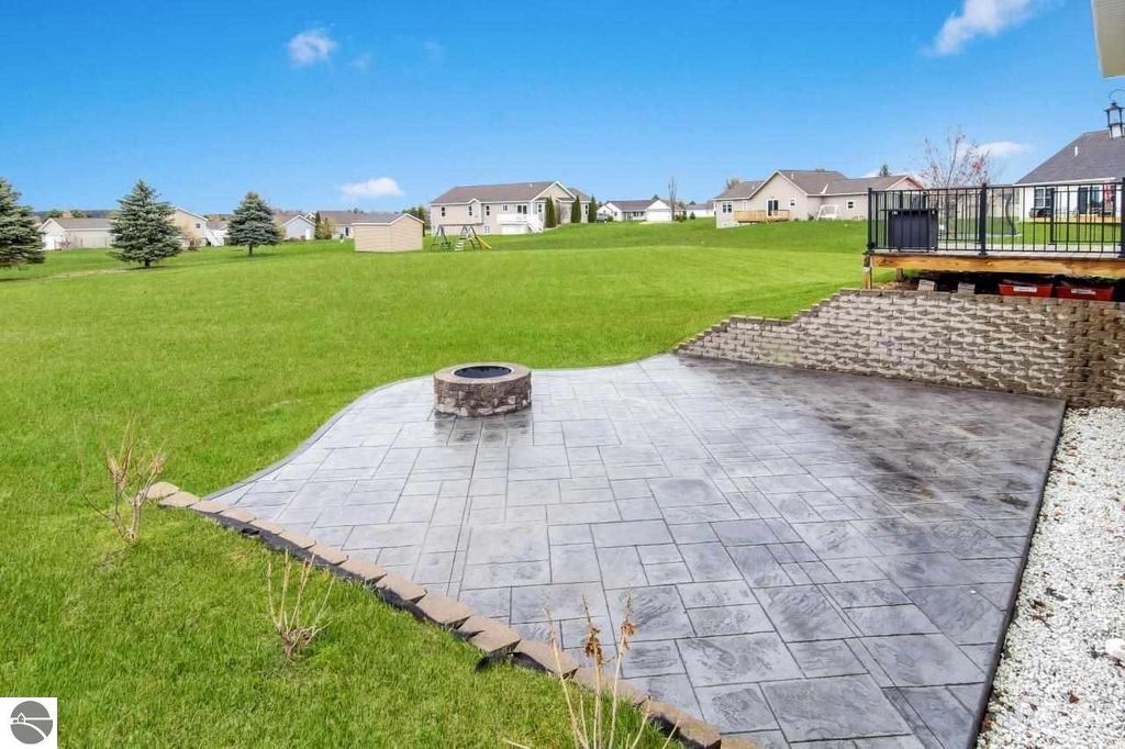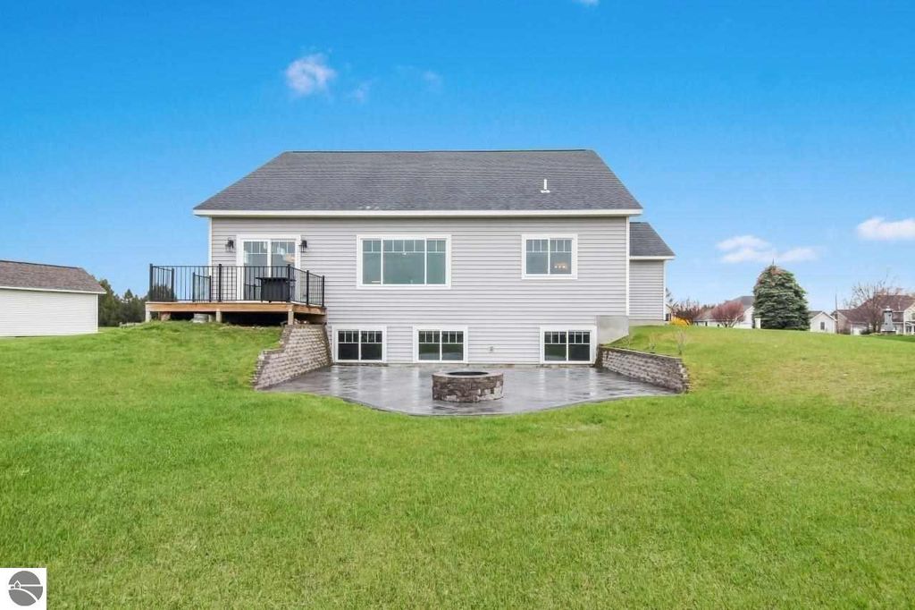 A stunning home in the South Creek neighborhood is ready for its next owner! This home has been well maintained since it was built in 2017 with many thoughtful design touches added throughout. You will love this spacious lot positioned towards the back of the neighborhood on a quiet cul-de-sac with a large backyard, including a deck and a stamped concrete patio with built-in fire pit perfect for summer evenings. Once inside, you'll find the main level to be comfortable and functional with an open-concept kitchen and living area, two bedrooms, and two bathrooms. The lower level features polished concrete floors for a stylish, modern touch and includes two additional bedrooms, one bathroom, a large bonus area, and plenty of storage. The finished garage provides excellent space for storage, and for golf enthusiasts, the golf simulator setup is available for purchase. This is a fantastic opportunity just minutes from all that Traverse City has to offer!