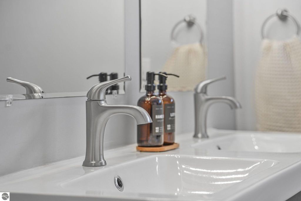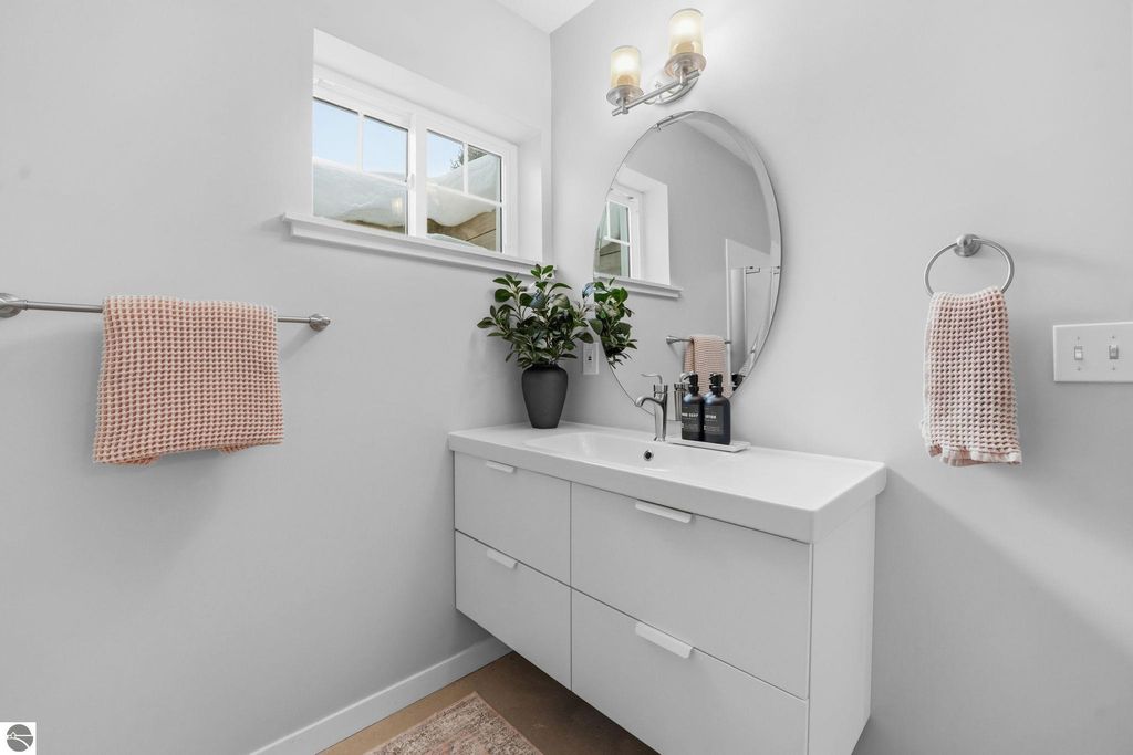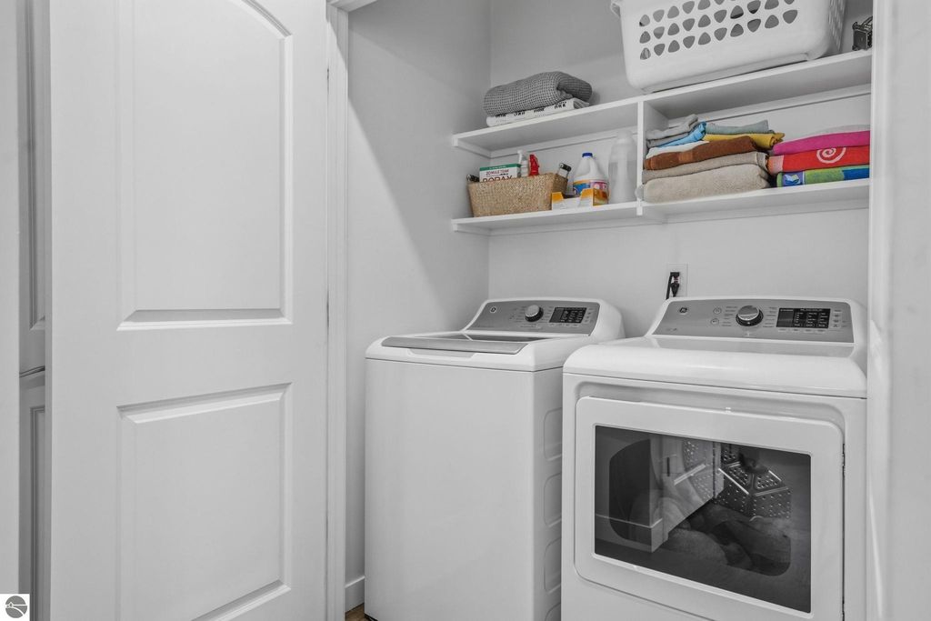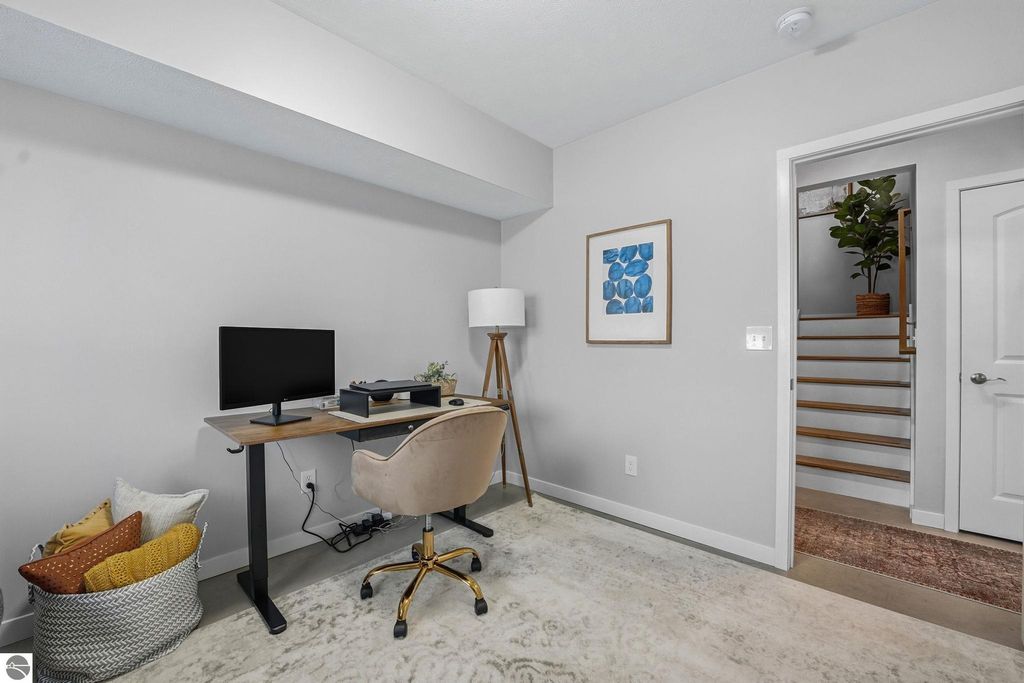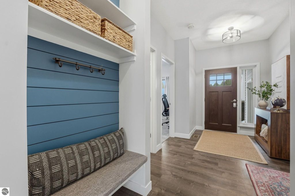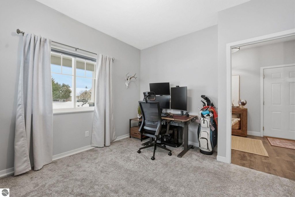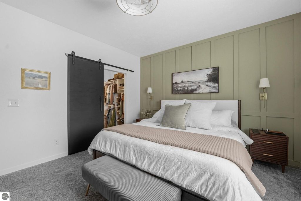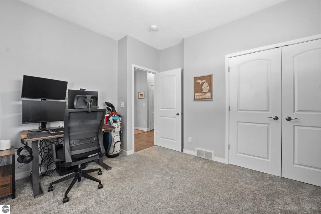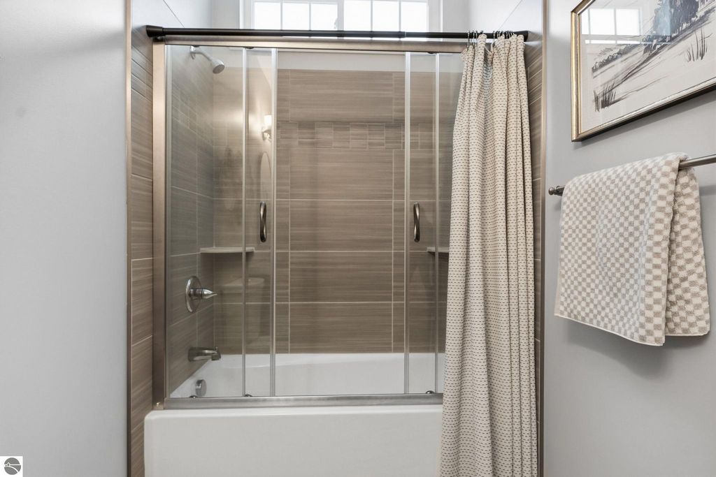 A stunning home in the South Creek neighborhood is ready for its next owner! This home has been well maintained since it was built in 2017 with many thoughtful design touches added throughout. You will love this spacious lot positioned towards the back of the neighborhood on a quiet cul-de-sac with a large backyard, including a deck and a stamped concrete patio with built-in fire pit perfect for summer evenings. Once inside, you'll find the main level to be comfortable and functional with an open-concept kitchen and living area, two bedrooms, and two bathrooms. The lower level features polished concrete floors for a stylish, modern touch and includes two additional bedrooms, one bathroom, a large bonus area, and plenty of storage. The finished garage provides excellent space for storage, and for golf enthusiasts, the golf simulator setup is available for purchase. This is a fantastic opportunity just minutes from all that Traverse City has to offer!