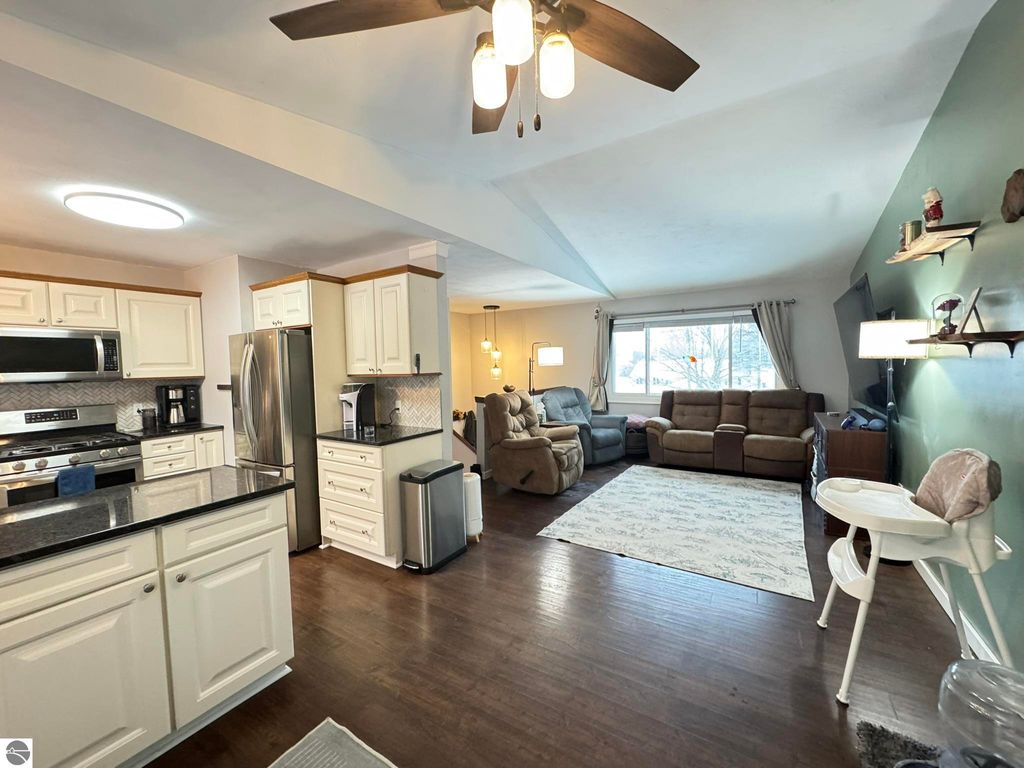 This delightful stick built 4 BR, 2 BA home offers the ideal mix of convenience, comfort, and year-round recreation options at your finger tips. Start your mornings on the back deck, inside the fenced yard, the perfect spot to enjoy sunrise coffee, with plenty of space to let pets and kids play freely. Inside, a modern feel with new kitchen backsplash, dining room slider door to back deck, updated flooring, and new lighting throughout. Main floor offers 3 bedrooms and a full bath. The lower level creates a nice separate space from the main floor. Inviting great west views for sunset watching from the fourth bedroom window. There is an attached bathroom with shower and a large walk in closet. An attached two-car garage makes everyday routines convenient, especially during Northern Michigan seasons. With easy access to the two garden beds next to the garage for home grown veggies and fruit. Located just minutes from the VASA Trail, and the local snowmobile trailhead, you'll have easy access to some of the area's popular spots for hiking, skiing, and snowmobiling. Spider Lake area offers multiple swimming, boating and other water options. This home is move in ready and offers immediate occupancy.