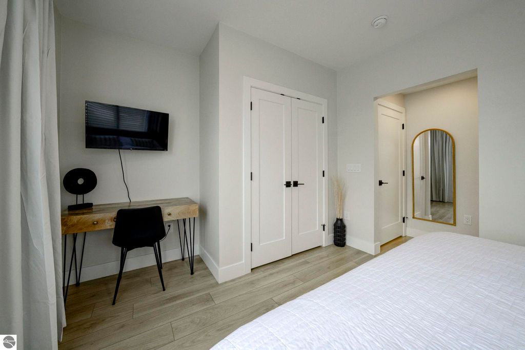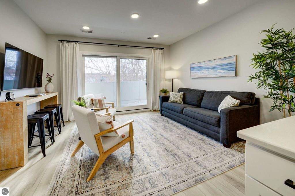 Ideally positioned in the heart of Traverse City's vibrant west side, this beautifully appointed 2-bedroom, 2-bath condo offers the perfect blend of convenience, comfort, and modern design. Located just two blocks from West End Beach and Grand Traverse Bay, the residence places you moments from the TART Trail, steps from pickleball and tennis courts, the dog park, just moments from Traverse City's acclaimed dining and boutique shopping scene. Inside, the open living space flows effortlessly to a private outdoor nook, creating a light-filled setting for relaxing or entertaining. The thoughtfully designed kitchen features quality finishes, generous prep space, and seamless connection to the main living area. Additional highlights include an in-unit washer and dryer, ample storage closets, and elevator access along with secure keyless building access, enhancing both ease and privacy. The property offers added versatility "” ideal as a private getaway, full-time residence, or future investment. Being sold fully furnished, it's ready to enjoy from day one. A designated parking space in the private lot adds convenience in this highly sought-after downtown location.