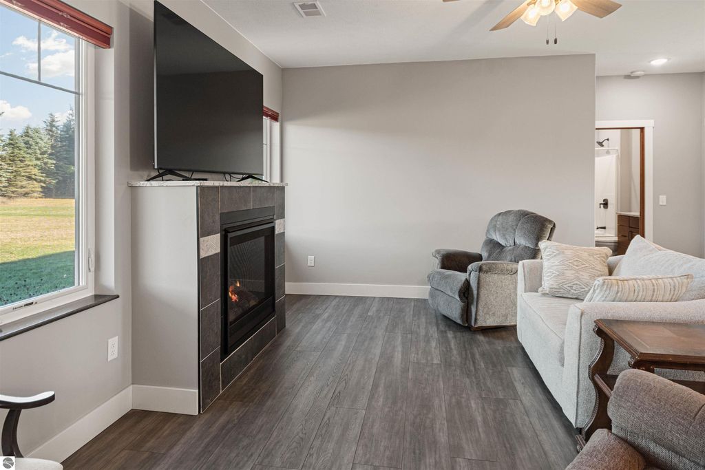 Discover comfortable single-level living in this inviting 3-bedroom, 2-bath home set on 2.5 peaceful acres just outside the Village of Kingsley. Step inside to a bright, open living area featuring 9-foot ceilings and a cozy gas fireplace, creating a warm and welcoming atmosphere. The spacious island kitchen is designed for everyday convenience and entertaining, complete with an oversized granite island with pull-outs, pantry, and ample cabinetry. The split-bedroom layout offers added privacy, with a generous primary suite that includes two walk-in closets and a private ensuite bath. A convenient mudroom/laundry room off the main living area adds to the home's functionality. Outdoor and practical features add even more appeal, including a covered back patio, heated attached 3-car garage and an underground sprinkler system that keeps the property looking its best. Enjoy the quiet, rural setting while still being minutes from schools, amenities, and everything Kingsley has to offer. Whether you're gathering indoors or taking in the surrounding natural beauty, this property delivers a perfect balance of comfort, space, and Northern Michigan living.