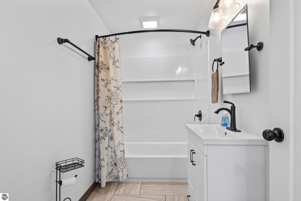 This extensively remodeled and updated three-bedroom one bath ranch home is move-in ready and conveniently located within walking distance of downtown Bellaire. Updates include flooring, drywall, plumbing, lighting, heating, air-conditioning, water heater, bathroom, kitchen, appliances, windows, garage floor, Afton stone driveway, and front deck. The renovation also added a main-floor mudroom and a lower-level family room featuring an electric fireplace and egress window. Located on a modest village parcel, the property offers a tranquil back yard shaded by mature trees. Sidewalks make it an easy to walk to town for dining and entertainment, while the proximity to the Intermediate River offers access to the chain-of-lakes. This home will be ideal as a northern getaway, starter home, or a vacation rental. Make this yours and enjoying a fresh start in a newly updated home.