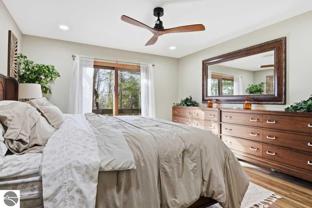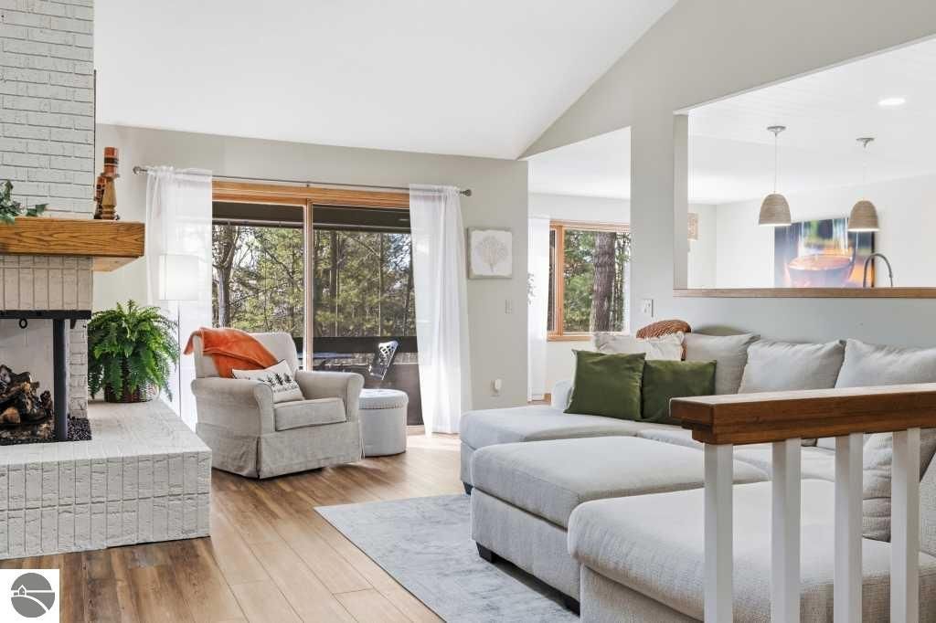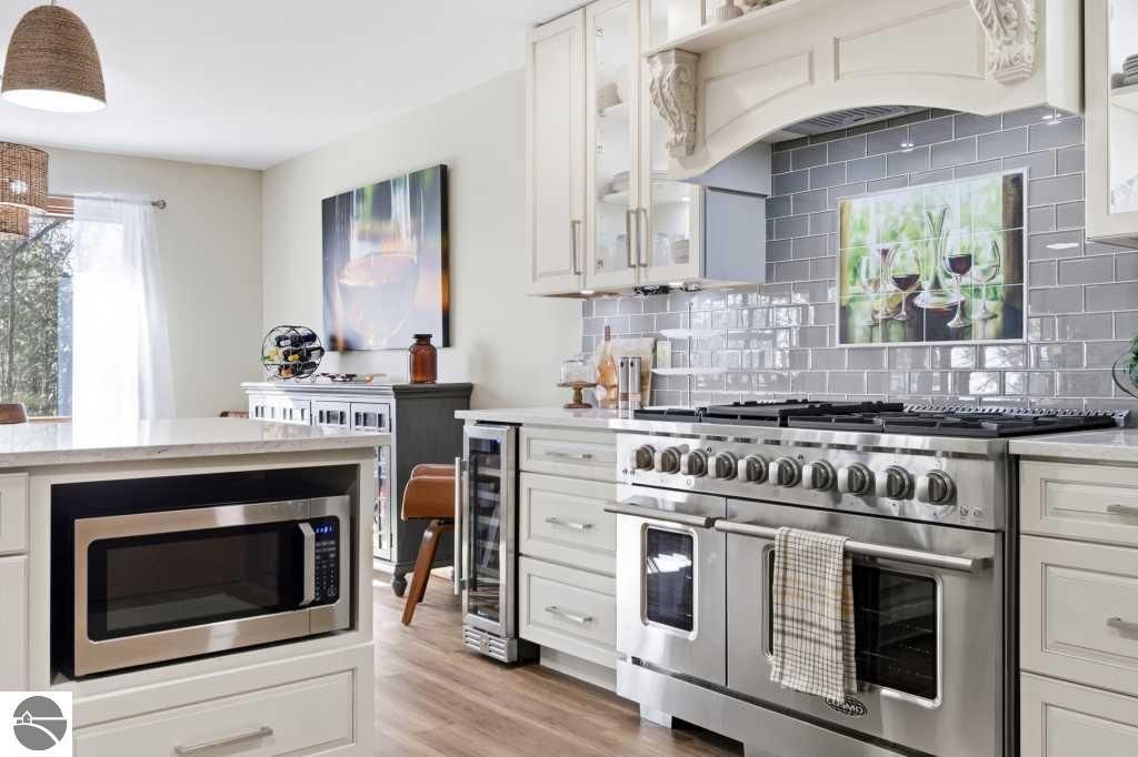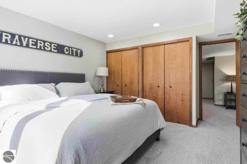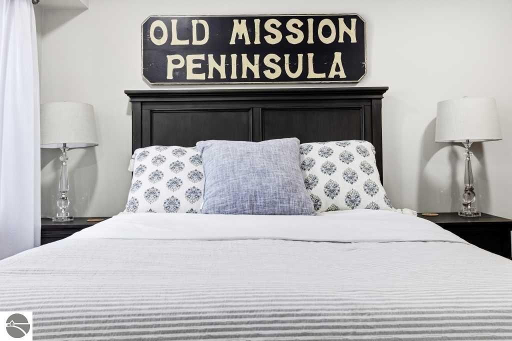 Discover effortless luxury on the coveted Old Mission Peninsula"”just 5 minutes from vibrant downtown Traverse City, yet just outside city limits for significantly lower taxes. This stunning 3-bedroom, 2.5-bath, 2-car garage home has been completely remodeled with premium, high-end finishes, leaving nothing to do but move in and start enjoying the good life. Nestled against a private wooded backdrop, the home offers serene privacy with extensive outdoor living spaces and your own backyard trails for peaceful walks and nature escapes. Main-floor primary suite plus a guest bedroom on the same level for ultimate convenience. The walk-out lower level is perfectly designed for guests with a large bedroom, spacious family room, full bathroom, dedicated exercise room & an inviting wet bar complete with refrigerator and coffee station. Every detail has been elevated with a brand-new gourmet kitchen with all new appliances, a 48" gas range w/ double ovens, 6-burner cooktop plus griddle, custom vent hood, farm sink, wine fridge, and sleek quartz countertops, luxurious quartz in all bathrooms, gorgeous luxury vinyl plank flooring throughout the main level & plush brand new high-end carpet below, fresh crisp paint on walls and ceilings throughout, a striking corner gas-log fireplace as the warm focal point of the living area, ceiling fans and recessed can lighting in upper bedrooms, and a tankless hot water heater for endless hot showers. Oversized attached 2-car garage is a dream"”equipped with custom cabinets, workbench, bright LED lighting, epoxy flooring, plus ample additional parking. Also a large additional 300 sf(not included in living sf) climate controlled storage area too. Pets allowed. HOA handles all exterior maintenance, landscaping, snow plowing,ext window cleaning, etc. Fully renovated homes like this don't stay on the market long. Come experience the perfect blend of modern luxury, natural beauty, and prime location today!