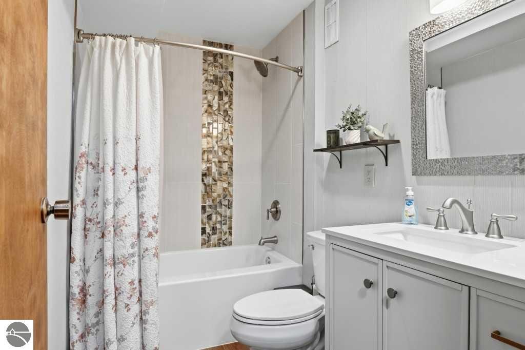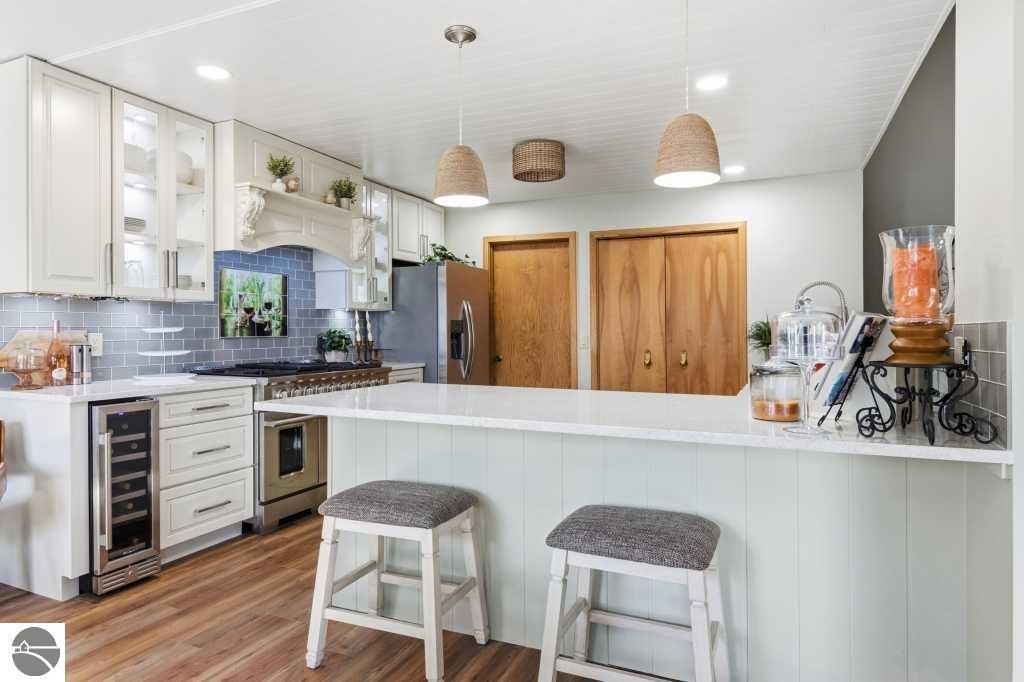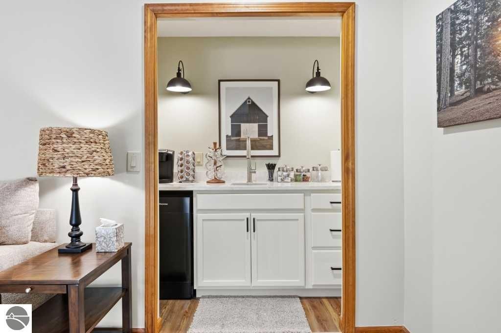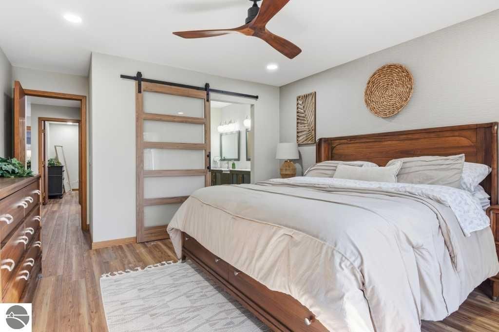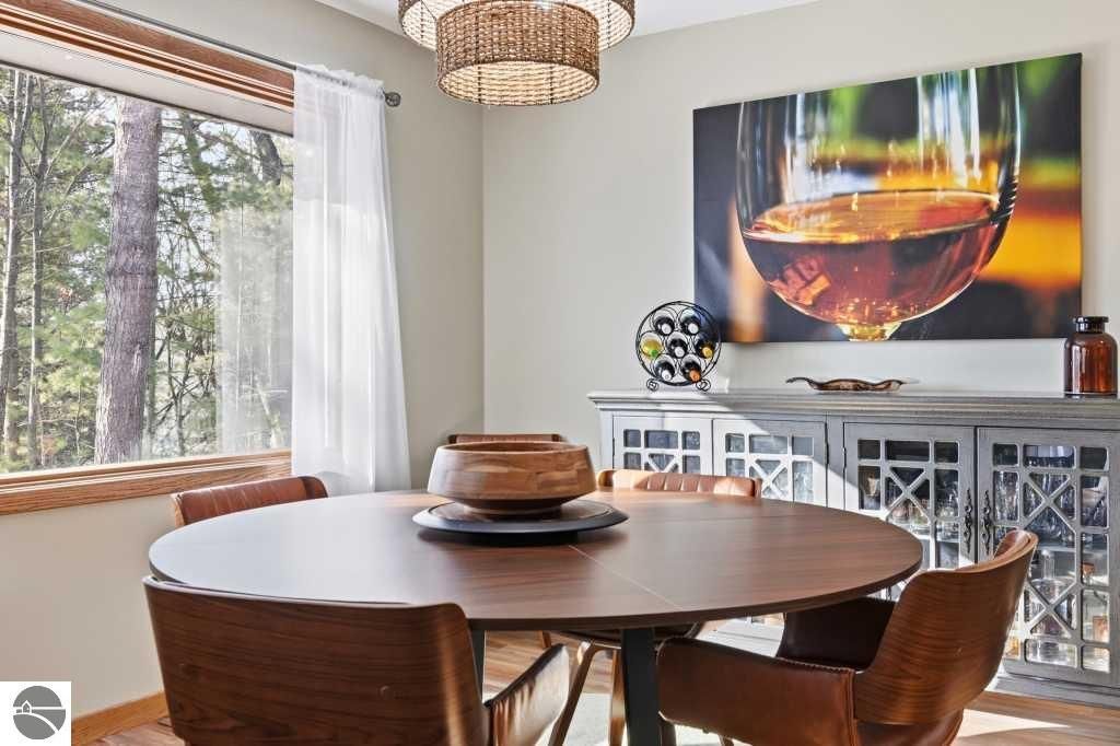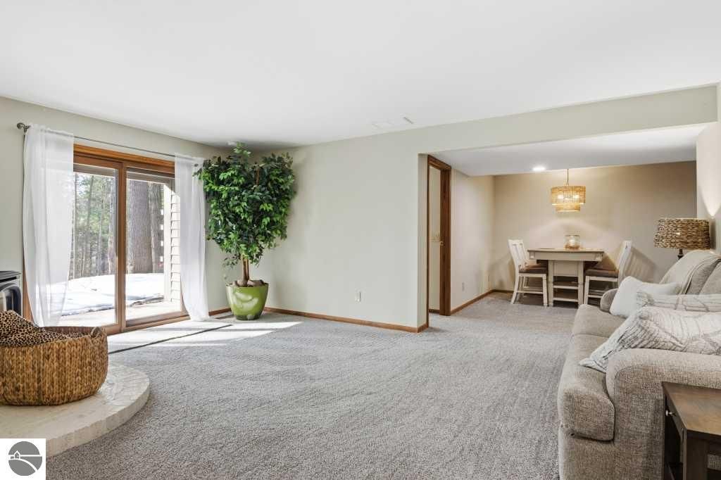 Discover effortless luxury on the coveted Old Mission Peninsula"”just 5 minutes from vibrant downtown Traverse City, yet just outside city limits for significantly lower taxes. This stunning 3-bedroom, 2.5-bath, 2-car garage home has been completely remodeled with premium, high-end finishes, leaving nothing to do but move in and start enjoying the good life. Nestled against a private wooded backdrop, the home offers serene privacy with extensive outdoor living spaces and your own backyard trails for peaceful walks and nature escapes. Main-floor primary suite plus a guest bedroom on the same level for ultimate convenience. The walk-out lower level is perfectly designed for guests with a large bedroom, spacious family room, full bathroom, dedicated exercise room & an inviting wet bar complete with refrigerator and coffee station. Every detail has been elevated with a brand-new gourmet kitchen with all new appliances, a 48" gas range w/ double ovens, 6-burner cooktop plus griddle, custom vent hood, farm sink, wine fridge, and sleek quartz countertops, luxurious quartz in all bathrooms, gorgeous luxury vinyl plank flooring throughout the main level & plush brand new high-end carpet below, fresh crisp paint on walls and ceilings throughout, a striking corner gas-log fireplace as the warm focal point of the living area, ceiling fans and recessed can lighting in upper bedrooms, and a tankless hot water heater for endless hot showers. Oversized attached 2-car garage is a dream"”equipped with custom cabinets, workbench, bright LED lighting, epoxy flooring, plus ample additional parking. Also a large additional 300 sf(not included in living sf) climate controlled storage area too. Pets allowed. HOA handles all exterior maintenance, landscaping, snow plowing,ext window cleaning, etc. Fully renovated homes like this don't stay on the market long. Come experience the perfect blend of modern luxury, natural beauty, and prime location today!