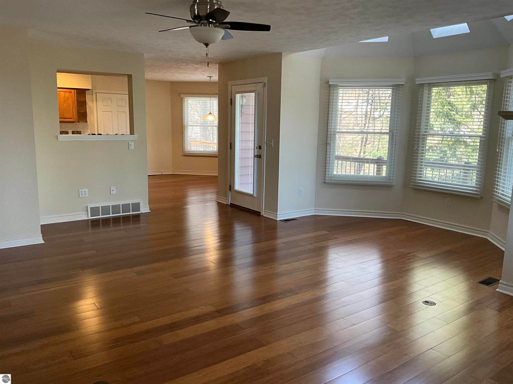 Perched above the shimmering waters of West Bay, showcasing its gorgeous shared frontage views, is this meticulously updated home which offers a rare blend of privacy, flexibility and refined comfort on over 5 acres, with the option to split the parcel. Bamboo floors, granite countertops and cherry cabinetry highlight a beautifully appointed interior, while 4 fireplaces-including one in the primary suite-create warm and inviting living spaces. The walk-out lower level features an additional kitchen ideal for guests or multi-generational living. Outdoors enjoy lovely landscaping and expansive spaces to soak in the stunning West Bay setting-about 3.5 miles from downtown TC.