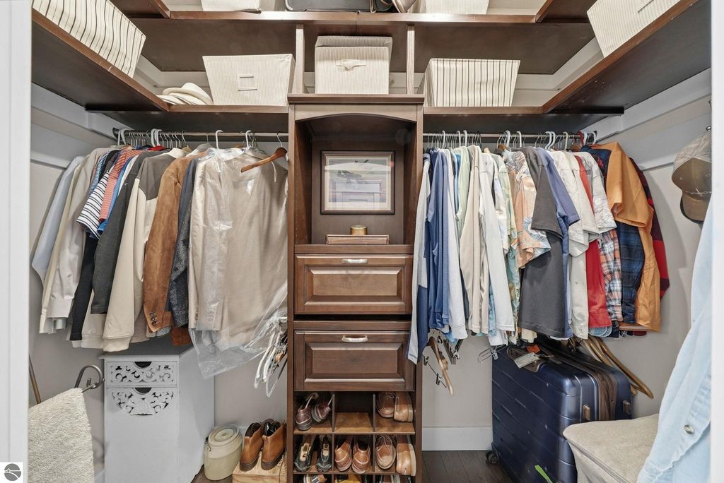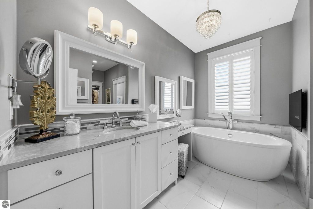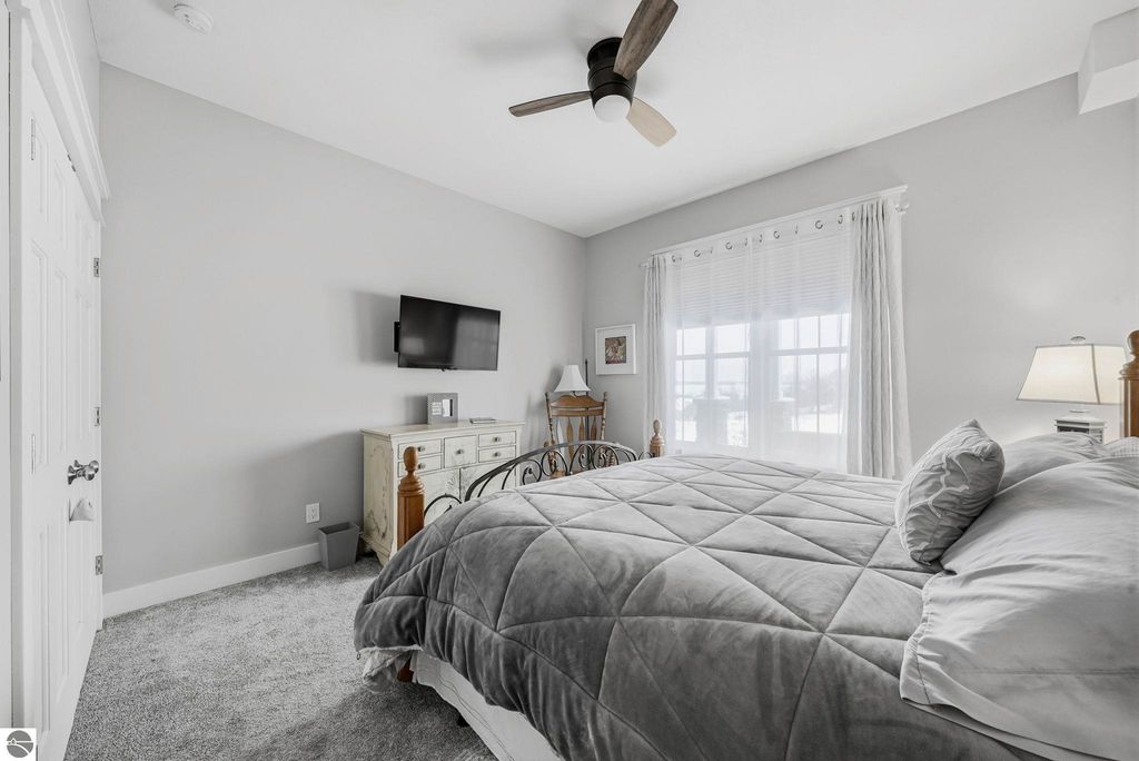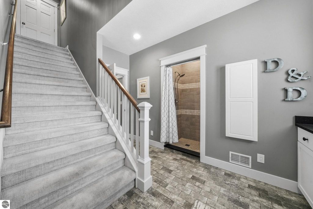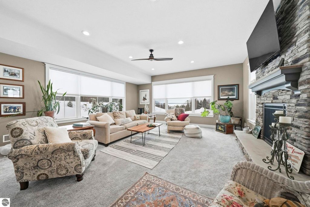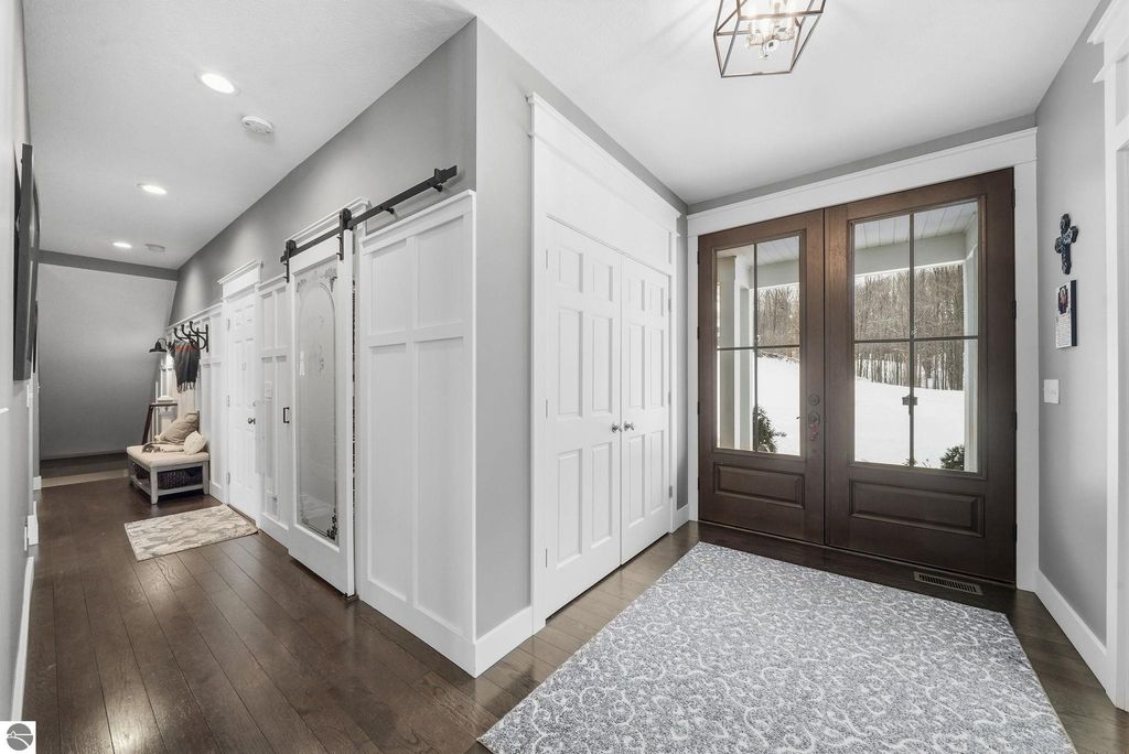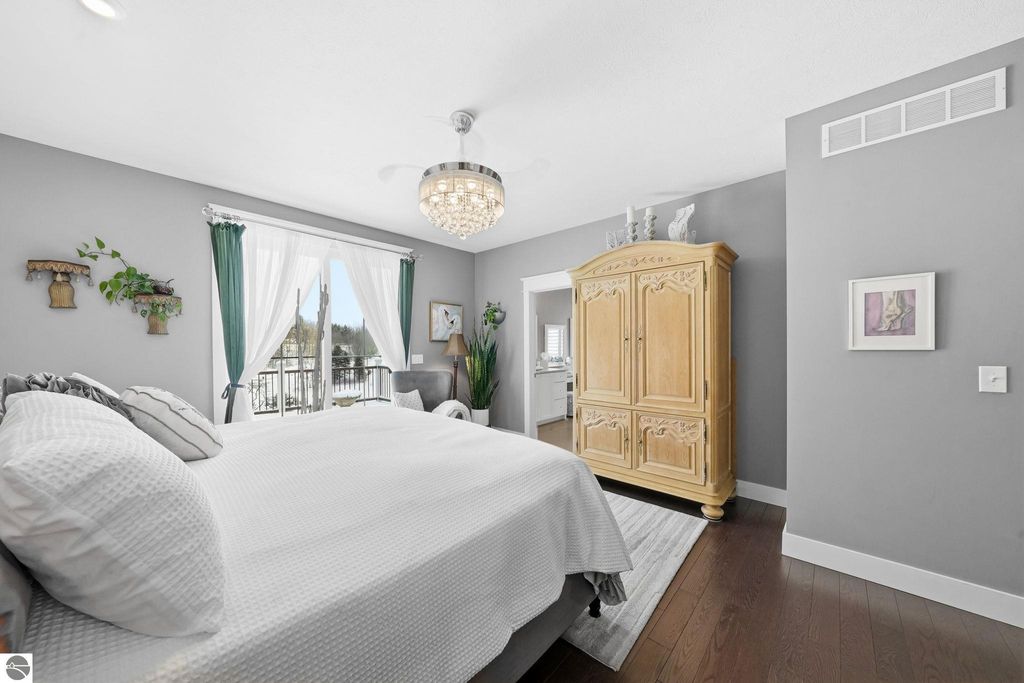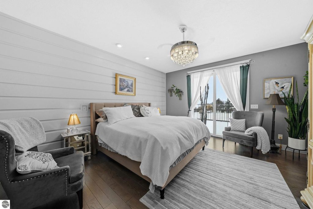 Enjoy peaceful living in beautiful Leelanau County with this thoughtfully designed home overlooking West Bay. Large windows throughout the home bring in tons of natural light and capture the stunning water views, while hardwood floors and granite countertops add quality and style. The main living area offers an open, comfortable layout perfect for everyday living or entertaining. A charming cupola adds character and enhances the bright, airy feel of the home. The finished lower level includes a second living area and full kitchen, making it ideal for guests, extended family, or multi-generational living. You'll also appreciate the dog wash station, two laundry rooms (one on each level), art room (accessory room) and plenty of storage throughout. Upstairs, a versatile bonus room provides the perfect space for a home office, gym, studio, or media room. Don't miss the beach access on the other side of M22! If you're looking for a Leelanau County home with West Bay views, flexible living space, and Northern Michigan charm, this property offers a rare opportunity in an incredible setting.