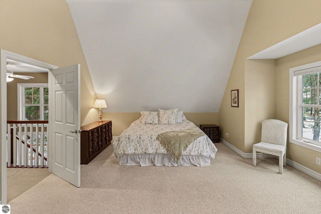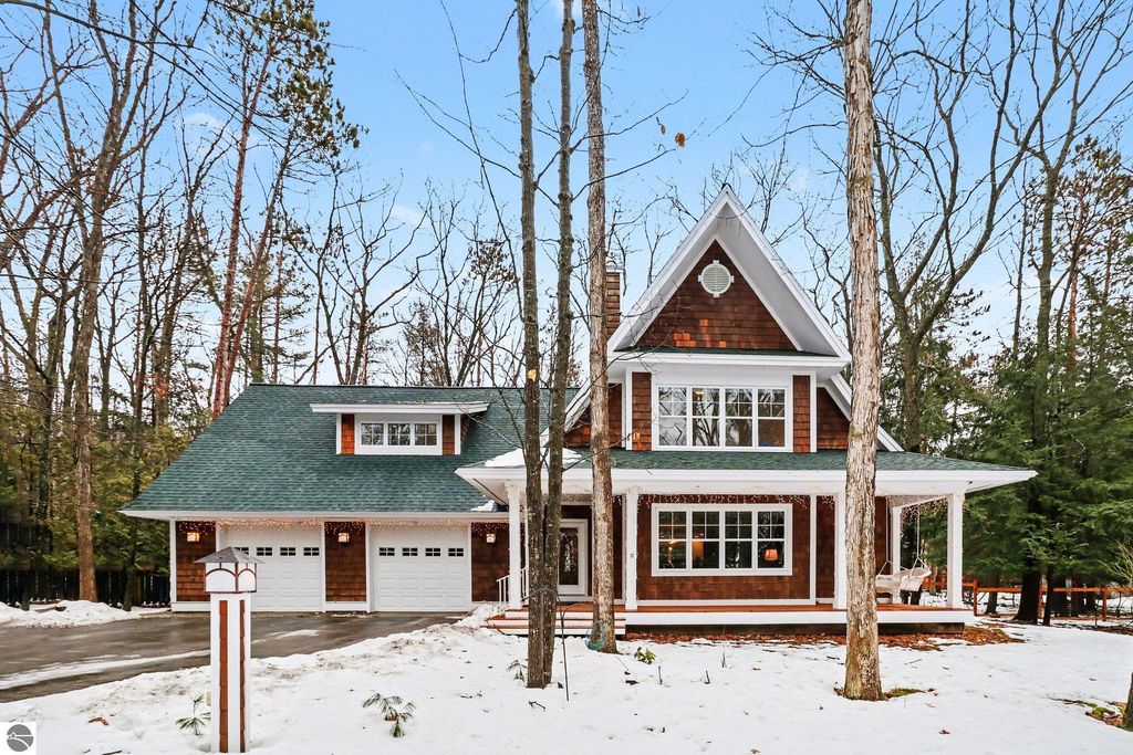 Sitting, well appointed, on Deepwater Point Road, this designer home, inspired by Dennis Wedlick's Life Designer Magazine Dream House combines craftsmanship and comfort together. This prime location is just steps from The East arm of Grand Traverse Bay. The floating staircase and elevated interiors feature custom finishes, using upscale materials, and a thoughtfully designed floor plan ideal for entertaining or relaxing in style. Set among mature trees, in a serene, wooded environment, this property offers both exclusivity and natural beauty. This is an extraordinary opportunity for refined living near the water. Take a short stroll down the road and enjoy a day at the beach and all the beauty that Lake Michigan has to offer. Flint Fields Horse Park Equestrian Venue is only a short drive away. Showcased in Builder Magazine, this property is a must see for all that love Northern Michigan and all it has to offer.