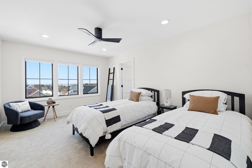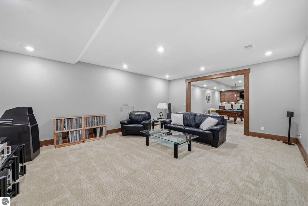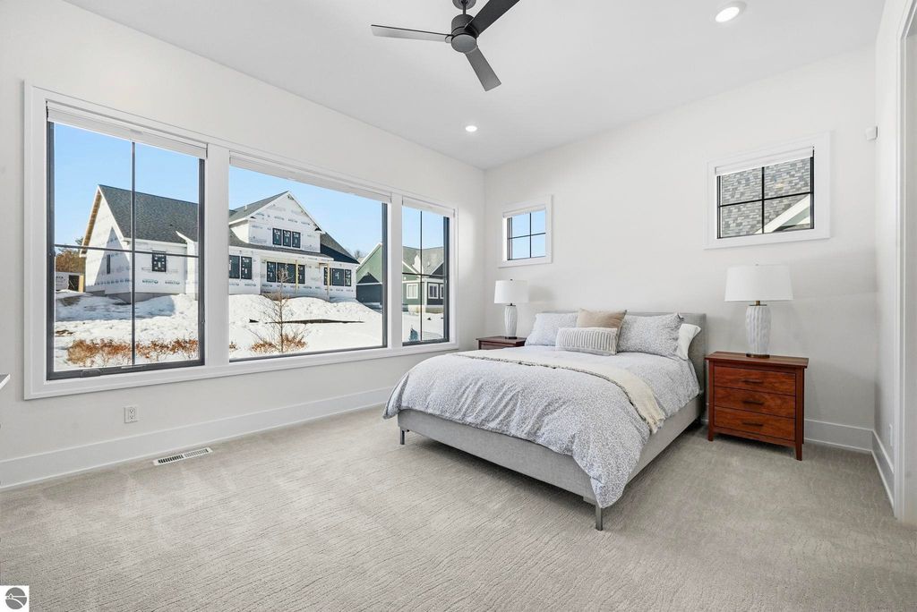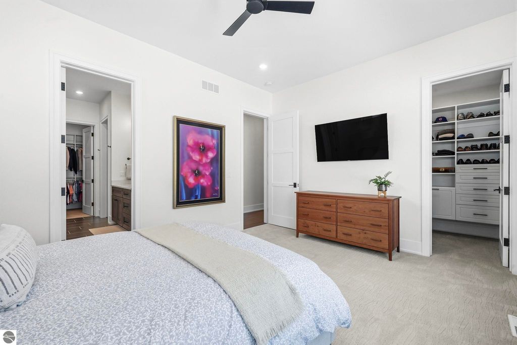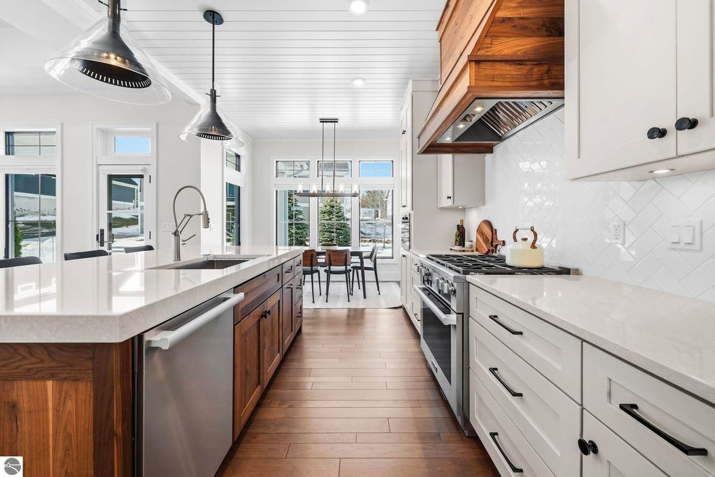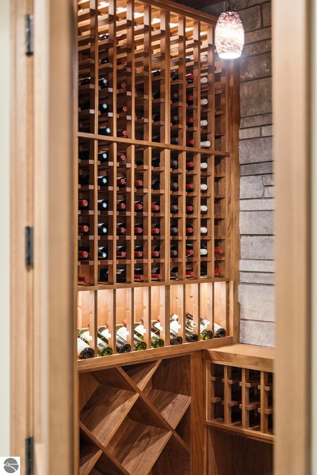 This exceptional custom-built luxury residence was designed for those who appreciate master craftsmanship, elevated finishes, and effortless comfort. From the moment you enter, the scale and detail are undeniable. Generous room sizes, 10 ft ceilings, custom 8 ft tall solid wood doors, designer fixtures, and a rich blend of woods including walnut, mahogany, white oak, and curly maple"”creating warmth & architectural depth. Premium Cambria quartz surfaces are integrated throughout, complementing the home's custom cabinetry & millwork. The chef's kitchen is a true showpiece"”anchored by a dramatic double-thick statement island, walnut hood vent and professional-grade appliances. Designed to keep entertaining seamless, the open-concept flow invites connection and transitions effortlessly to outdoor enjoyment under the vaulted cathedral porch with retractable sun/privacy shades, stunning bluestone patio, and custom upgraded landscaping that frames the home in natural elegance. The lower level features a media room, a full wet bar and game room. Wine enthusiasts will appreciate the climate-controlled walk-in wine cellar, accommodating up to 500 bottles"”a true collector's showcase within the home. The luxurious primary suite serves as a private retreat, complete with spa-inspired finishes and double closets. Both upper level bedrooms feature their own full en-suite bathrooms, creating ideal accommodations for family or guests. A Generac whole-home backup generator ensures uninterrupted comfort year-round. Enjoy low-maintenance living in a thoughtfully planned neighborhood where lawn care & snow removal extend right to your front door. Positioned adjacent to the community pool, this home enjoys immediate access to resort-style amenities including pool, hot tub, fire pit and pavilion for gatherings. Vineyard ridge opens direct access to Old Mission Peninsula living including the 62-acre Pelizzari nature preserve, 10+ wineries and several public beaches.