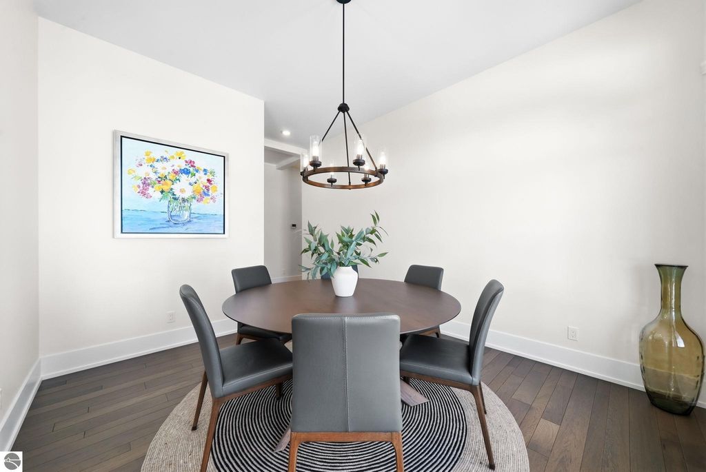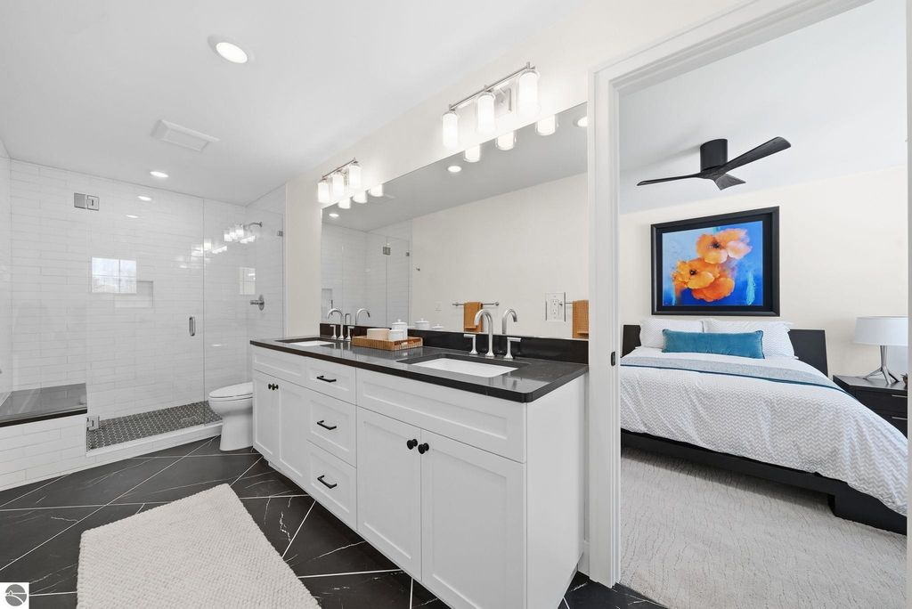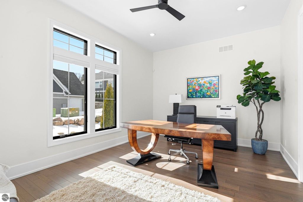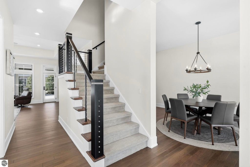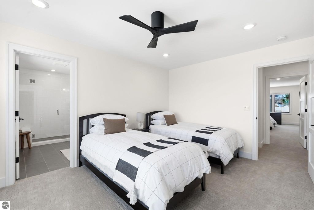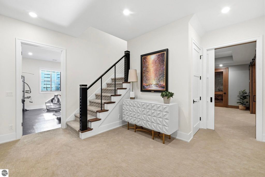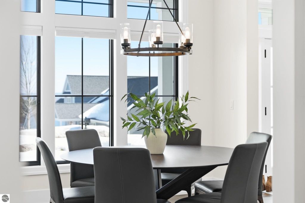 This exceptional custom-built luxury residence was designed for those who appreciate master craftsmanship, elevated finishes, and effortless comfort. From the moment you enter, the scale and detail are undeniable. Generous room sizes, 10 ft ceilings, custom 8 ft tall solid wood doors, designer fixtures, and a rich blend of woods including walnut, mahogany, white oak, and curly maple"”creating warmth & architectural depth. Premium Cambria quartz surfaces are integrated throughout, complementing the home's custom cabinetry & millwork. The chef's kitchen is a true showpiece"”anchored by a dramatic double-thick statement island, walnut hood vent and professional-grade appliances. Designed to keep entertaining seamless, the open-concept flow invites connection and transitions effortlessly to outdoor enjoyment under the vaulted cathedral porch with retractable sun/privacy shades, stunning bluestone patio, and custom upgraded landscaping that frames the home in natural elegance. The lower level features a media room, a full wet bar and game room. Wine enthusiasts will appreciate the climate-controlled walk-in wine cellar, accommodating up to 500 bottles"”a true collector's showcase within the home. The luxurious primary suite serves as a private retreat, complete with spa-inspired finishes and double closets. Both upper level bedrooms feature their own full en-suite bathrooms, creating ideal accommodations for family or guests. A Generac whole-home backup generator ensures uninterrupted comfort year-round. Enjoy low-maintenance living in a thoughtfully planned neighborhood where lawn care & snow removal extend right to your front door. Positioned adjacent to the community pool, this home enjoys immediate access to resort-style amenities including pool, hot tub, fire pit and pavilion for gatherings. Vineyard ridge opens direct access to Old Mission Peninsula living including the 62-acre Pelizzari nature preserve, 10+ wineries and several public beaches.