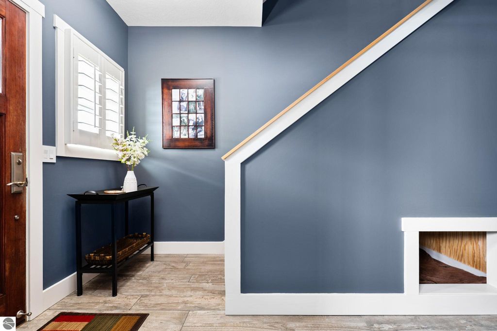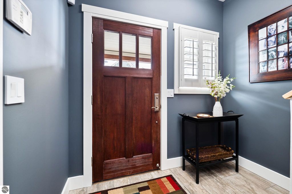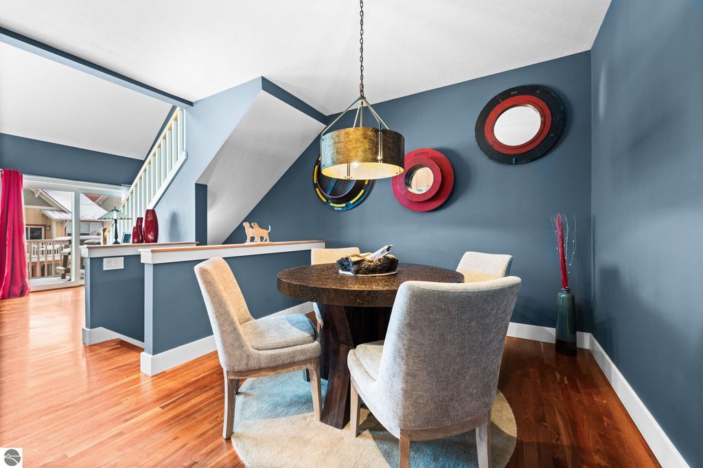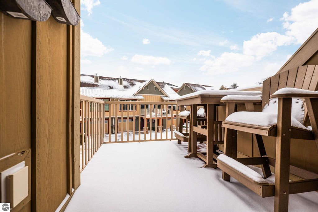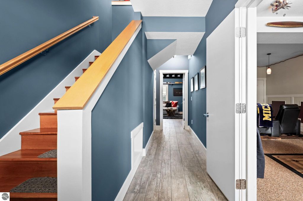Welcome to this beautifully appointed 3 bedroom, 3 full bath condo offering views of West Bay and an unbeatable location. Situated directly across from West Bay and just steps from the TART Trail behind the development, you can enjoy biking or walking to downtown Traverse City, Suttons Bay, and surrounding areas. Step inside to a freshly painted interior. The main level features a comfortable bedroom and full bath, perfect for guests or flexible living. The attached garage showcases epoxy floors and is currently set up as a stylish man cave, yet easily converts back to traditional garage space. Upstairs, the open concept living area is filled with natural light and features hardwood floors, a stunning floor to ceiling gas fireplace, and views of West Bay. The beautifully designed kitchen offers granite countertops, quality cabinetry, and an inviting layout ideal for entertaining. A sliding door leads to the balcony where you can relax and take in the bay views. This level also includes an additional spacious bedroom and full bath. The upper loft level provides versatile space for a home office or additional lounge area. The primary suite offers a walk in closet, spacious private bath, and a designated laundry room for added convenience. Shaker shutters in the primary bedroom and living room add a refined finishing touch. Enjoy low maintenance living in an exceptional location with water views, trail access, and proximity to everything Northern Michigan has to offer.